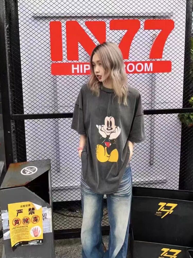 Vintage Mickey Graphic Women Retro Washed Short Sleeve Teestreet – Vacation Outfits