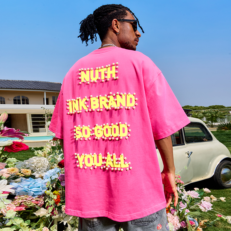 Vintage Pearl Letter Short Sleeve Men, Women Loose Fit, Ummer, Y2k Pire – Y2k Outfits