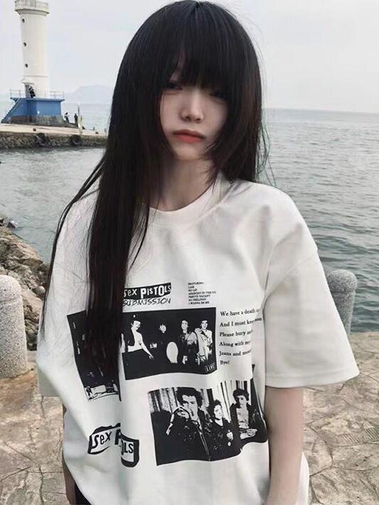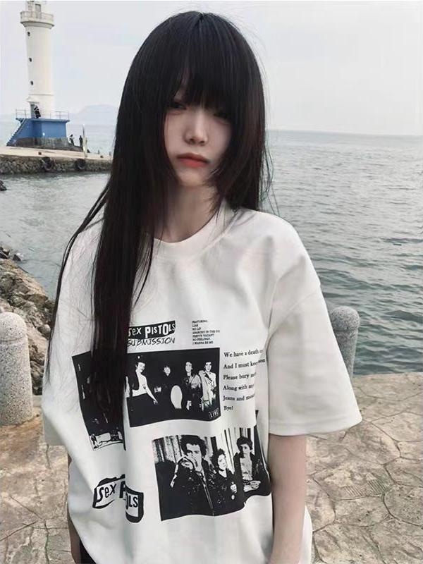 Elevate your summer wardrobe with our Vintage Rock Band Poster Printed Loose Oversized Short-Sleeve T-Shirt for Women, designed for the ultimate Y2K style. This relaxed-fit tee offers unmatched comfort while showcasing iconic rock band graphics, making it a perfect statement piece for music lovers and fashion enthusiasts alike. Pair it with your favorite jeans or shorts for an effortless, trendy look add to your cart and rock your style today!