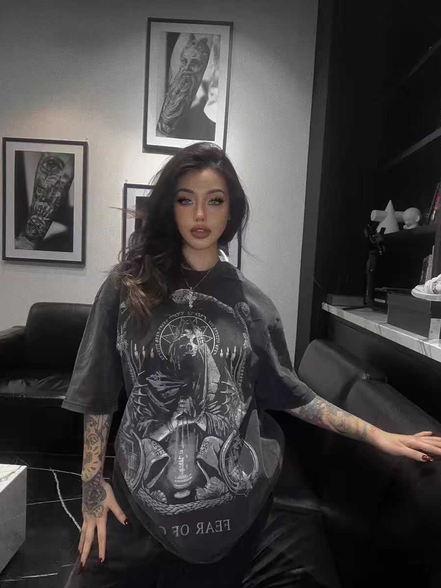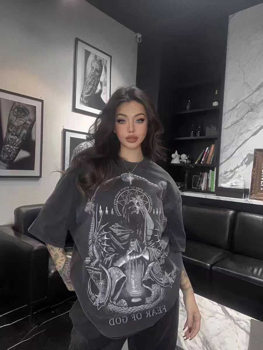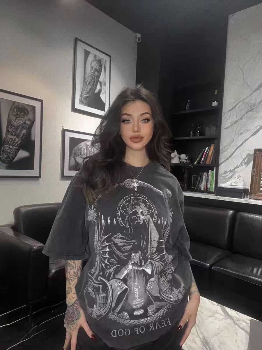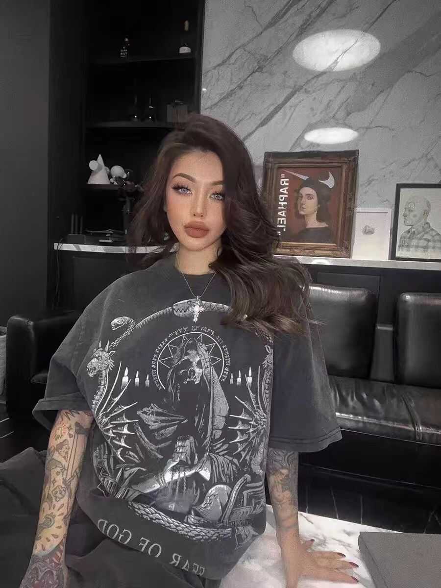 Elevate your couple’s wardrobe with our Vintage Skull Print Washed Distressed Short Sleeve T-Shirt, designed for those who embrace trendy American street style. This relaxed-fit tee features a striking skull graphic and a unique washed finish, providing a perfect blend of comfort and edgy fashion. Ideal for casual outings or cozy nights in, this t-shirt effortlessly showcases your style while ensuring a soft, breathable feel. Don’t miss out on this must-have addition add to your cart today!