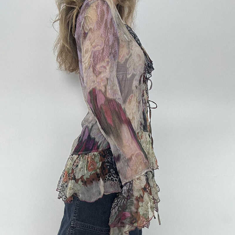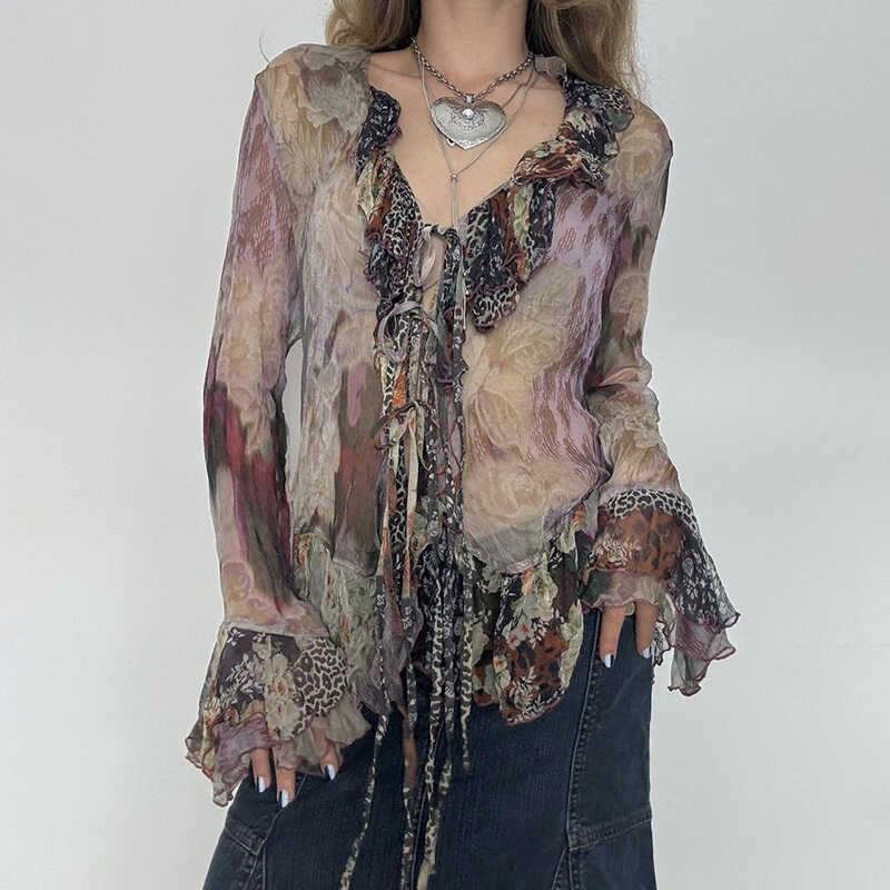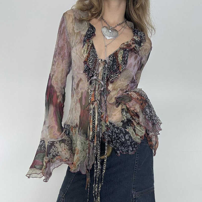 Vintage Star Lace Up Mesh Top Slim Fit Long Sleeve Chiffon Shirt Y2K, pired High-quality product featuring 90s fashion, fashion outfits, 2000s fashion and more. Modern design that fits the latest trends. Premium materials ensure durability and comfort. Order now for special offers! Product designed with attention to every detail. Suitable for all occasions and personal styles.