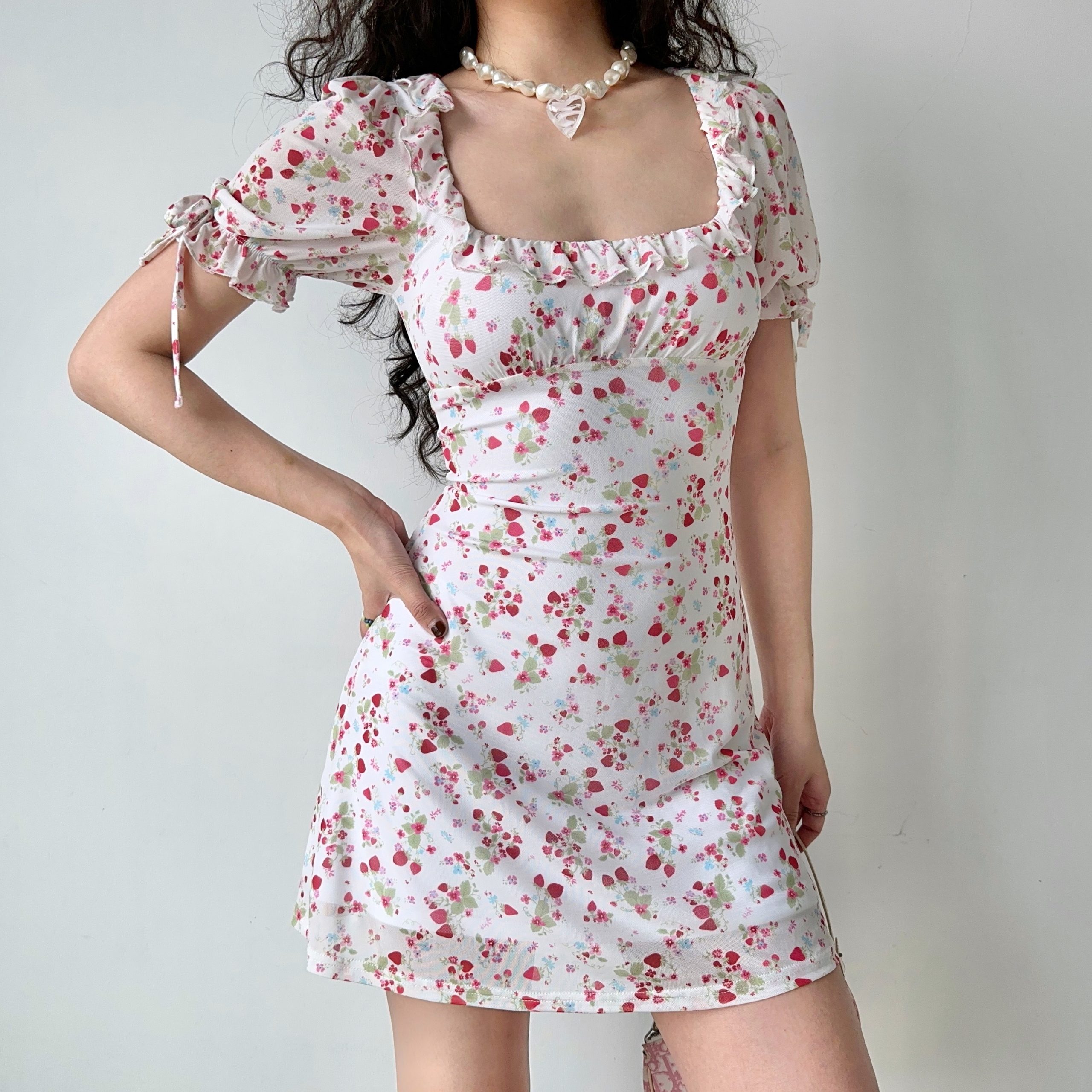 Vintage Strawberry Floral Square Neck Short Sleeve Dress Women Puff Sleeves, Slim Fit pired High-quality product featuring thanksgiving dress, hoco dresses, spring outfit and more. Modern design that fits the latest trends. Premium materials ensure durability and comfort. Order now for special offers! Product designed with attention to every detail. Suitable for all occasions and personal styles.