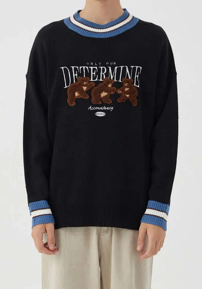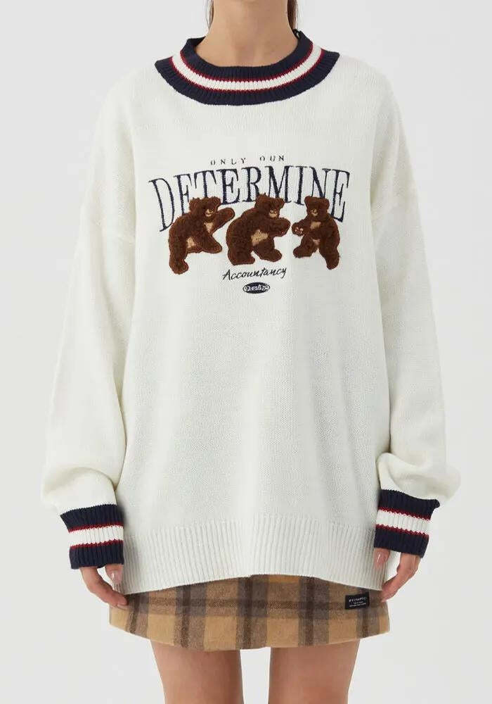 Vintage Teddy Embroidered Knitted Sweater – Sweater Dress with Boots