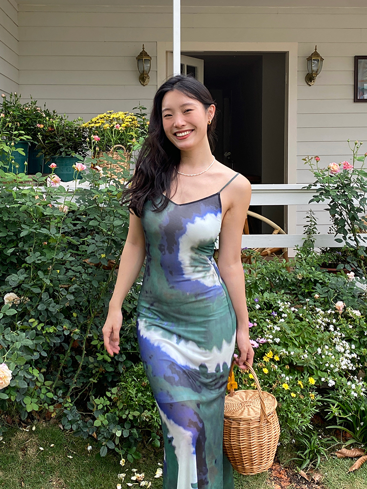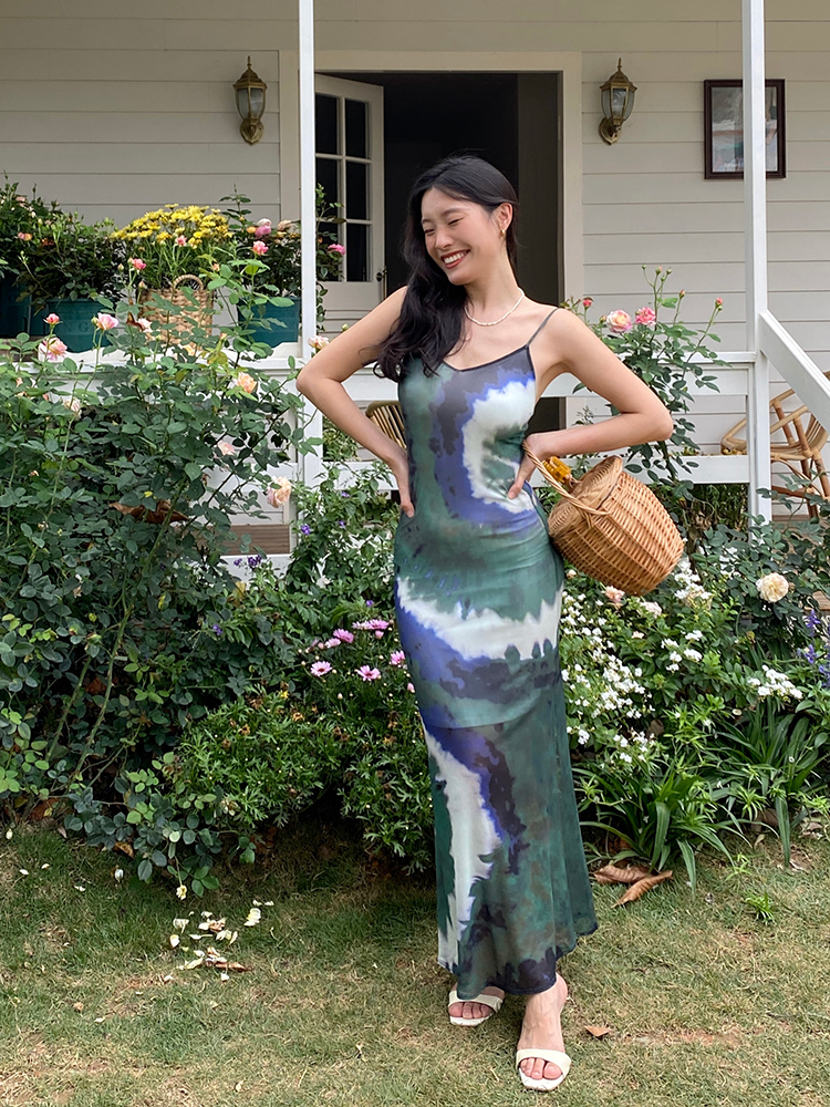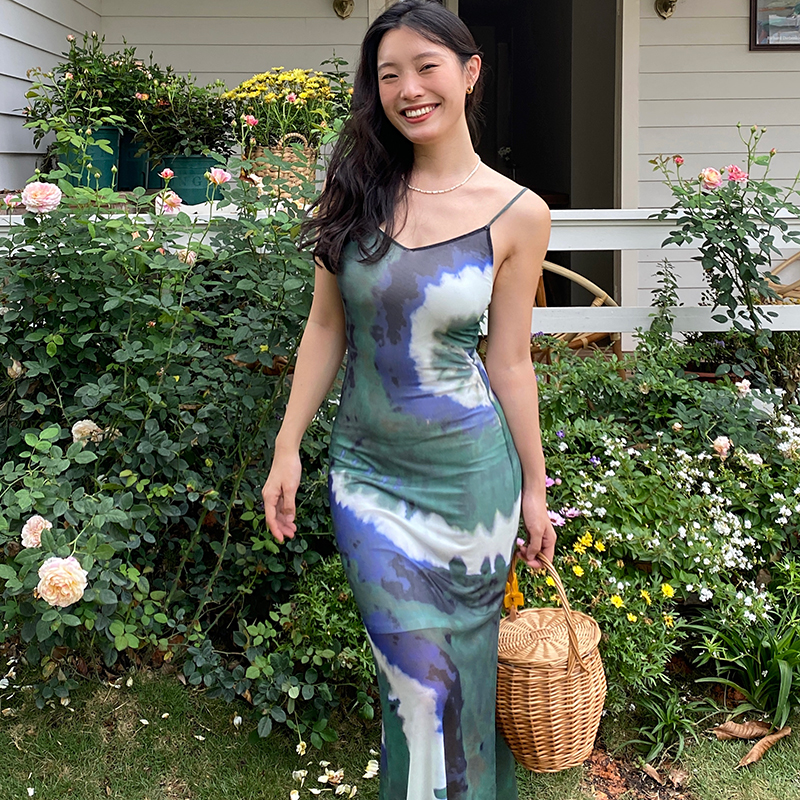Vintage Tie Dye Long Slim Split Dress Print Pired – Hoco Dresses