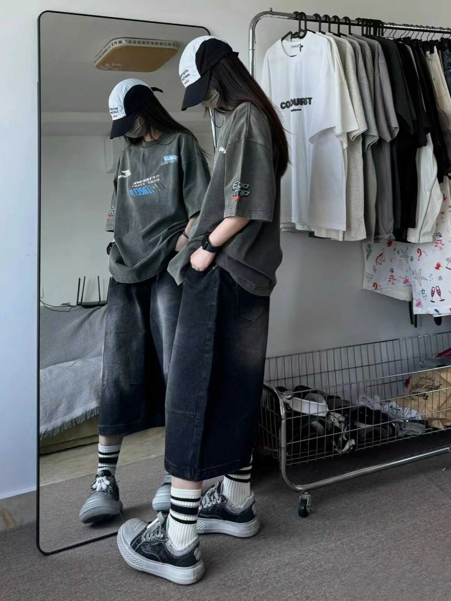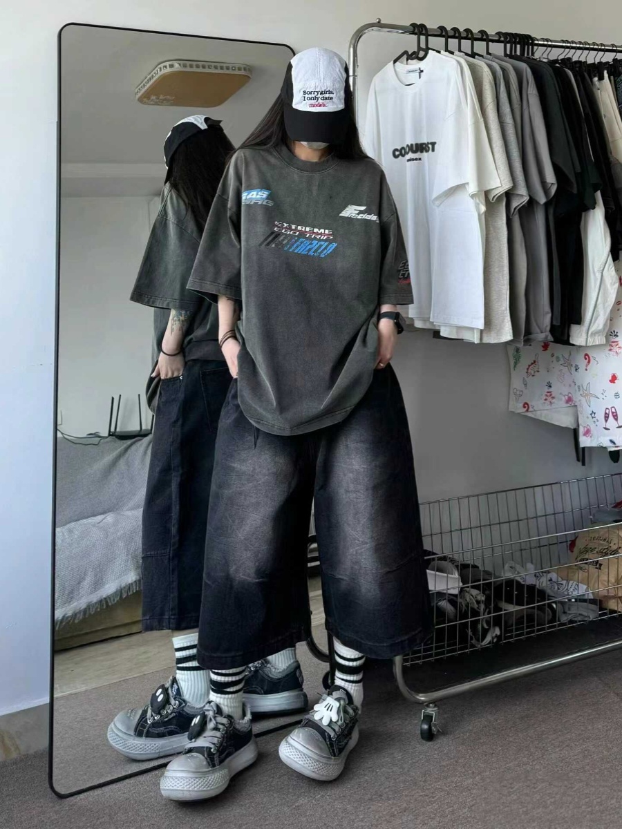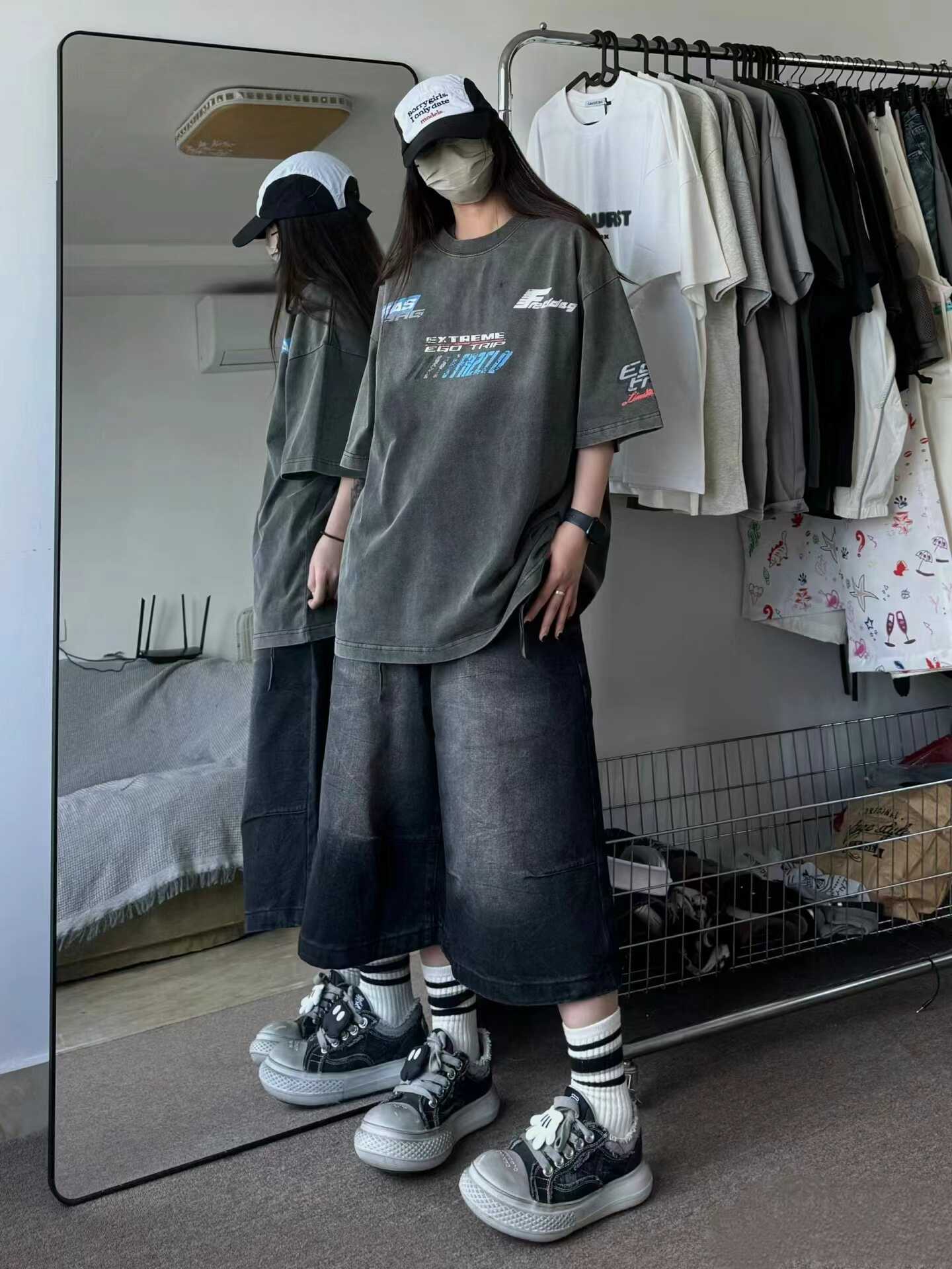Vintage Washed Racing Cracked Letter Print Loose Heavyweight Short Sleeve Men, Women High-quality product featuring casual outfits winter, fall fashion, fashion outfits and more. Modern design that fits the latest trends. Premium materials ensure durability and comfort. Order now for special offers! Product designed with attention to every detail. Suitable for all occasions and personal styles.