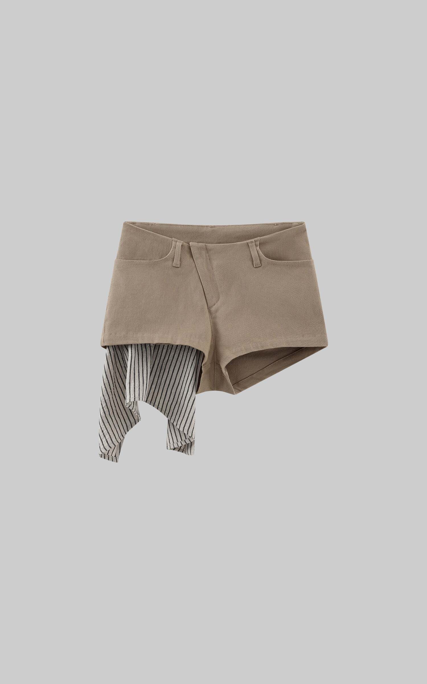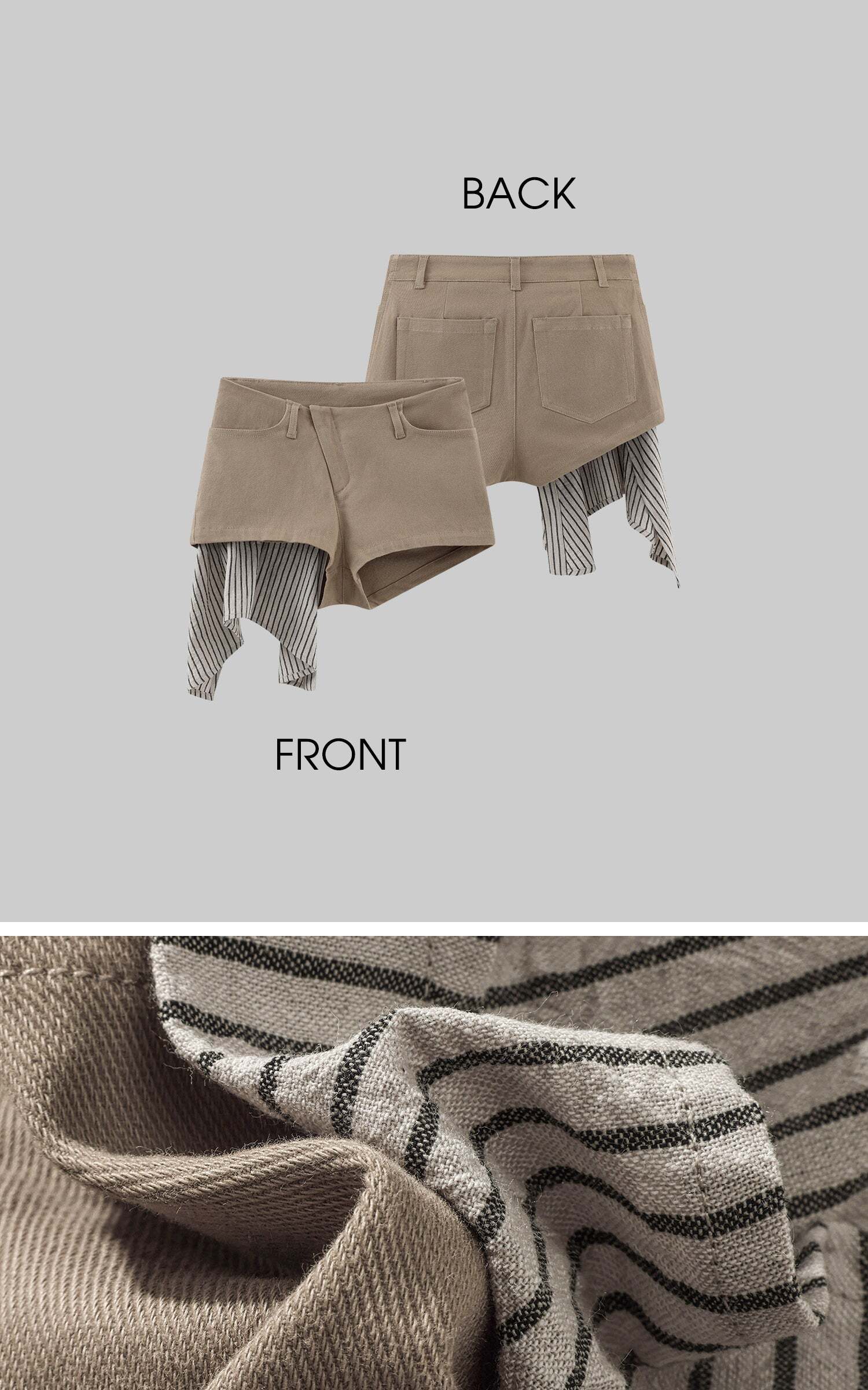 Asymmetric Layered Shorts with Striped Draped Panel High-quality product featuring outfit inspo fall, outfit ideas, vacation outfits and more. Modern design that fits the latest trends. Premium materials ensure durability and comfort. Order now for special offers! Product designed with attention to every detail. Suitable for all occasions and personal styles.