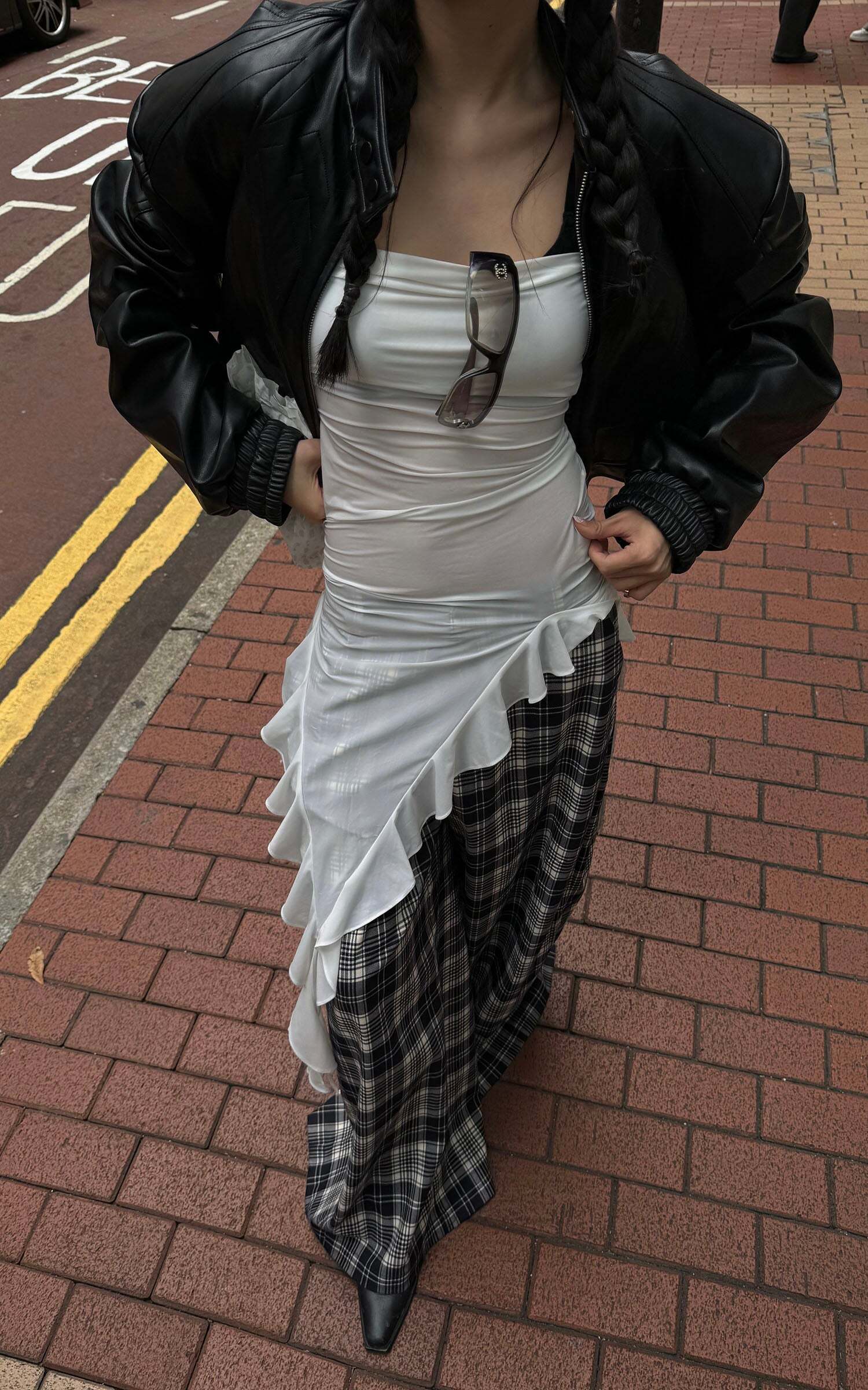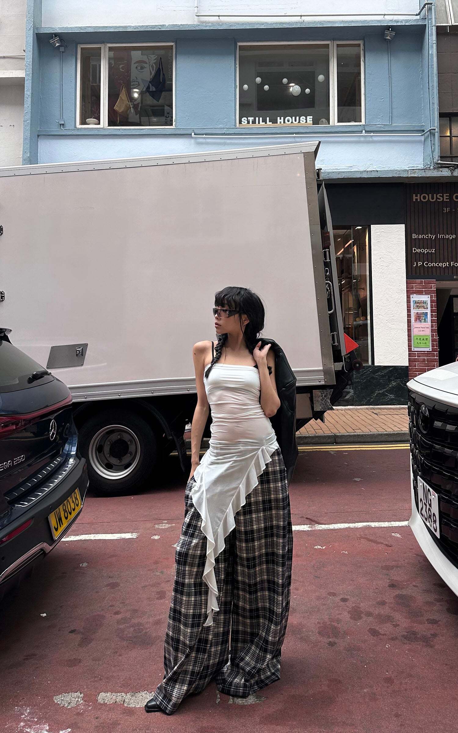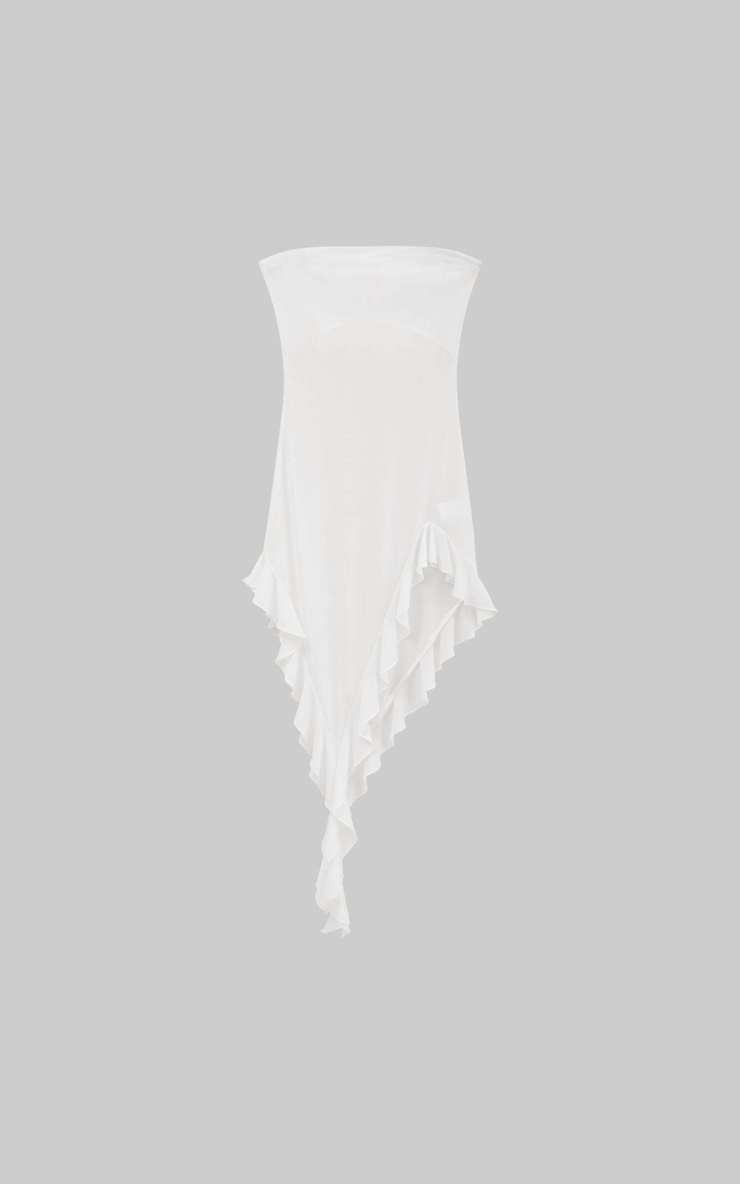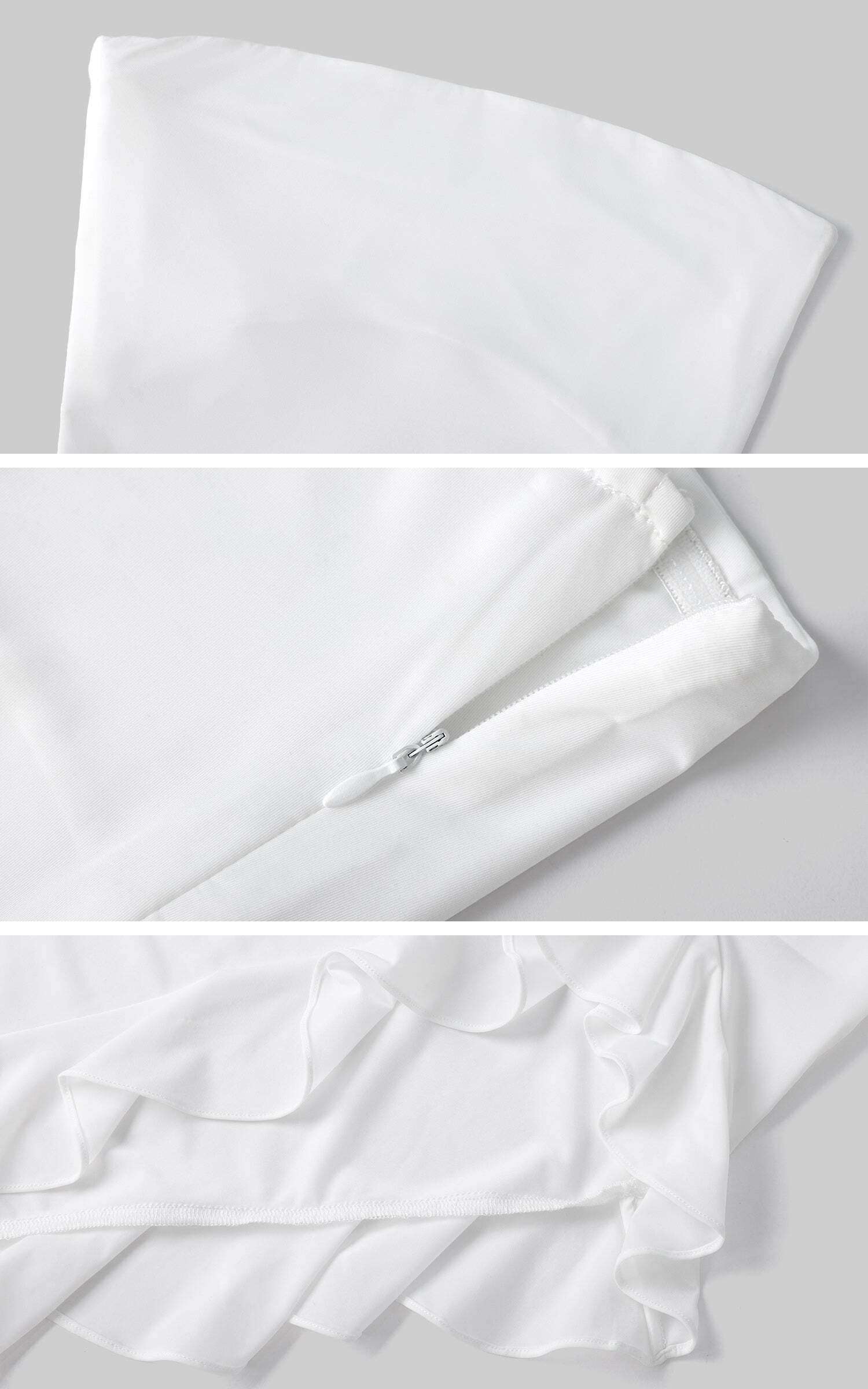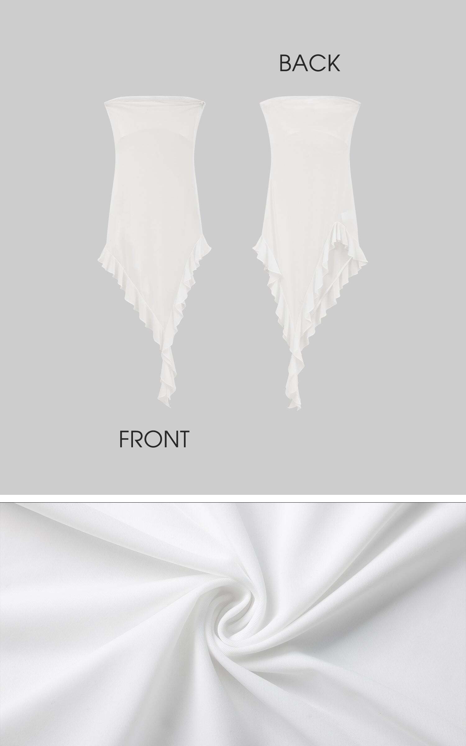 Step into avant-garde elegance with this asymmetric ruffle dress, a statement piece that blends fluid design with a bold silhouette. The cascading ruffles create dynamic movement, while the irregular hemline adds an edge of unpredictability. Designed with a strapless fit, it sculpts a clean yet dramatic look that can transition effortlessly from day to night. Pair it with oversized layers or keep it sleek for an elevated, versatile style.