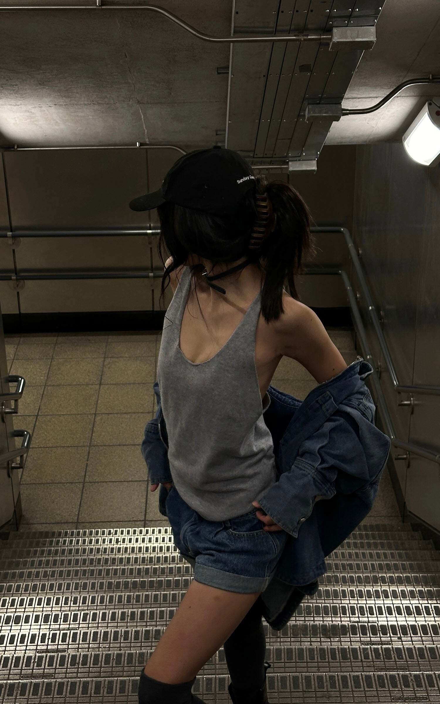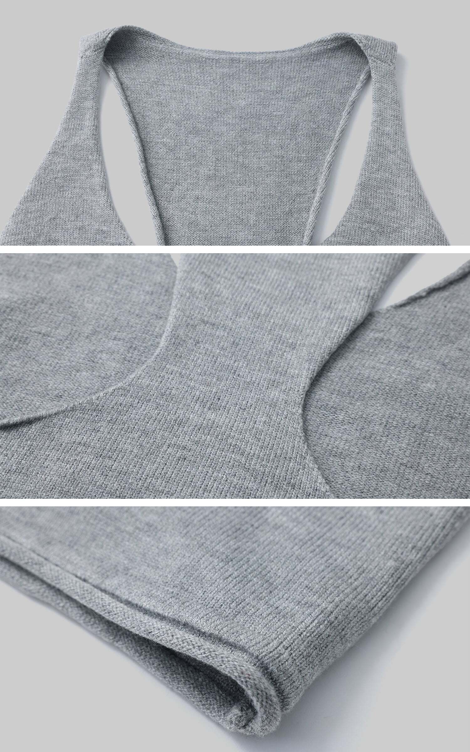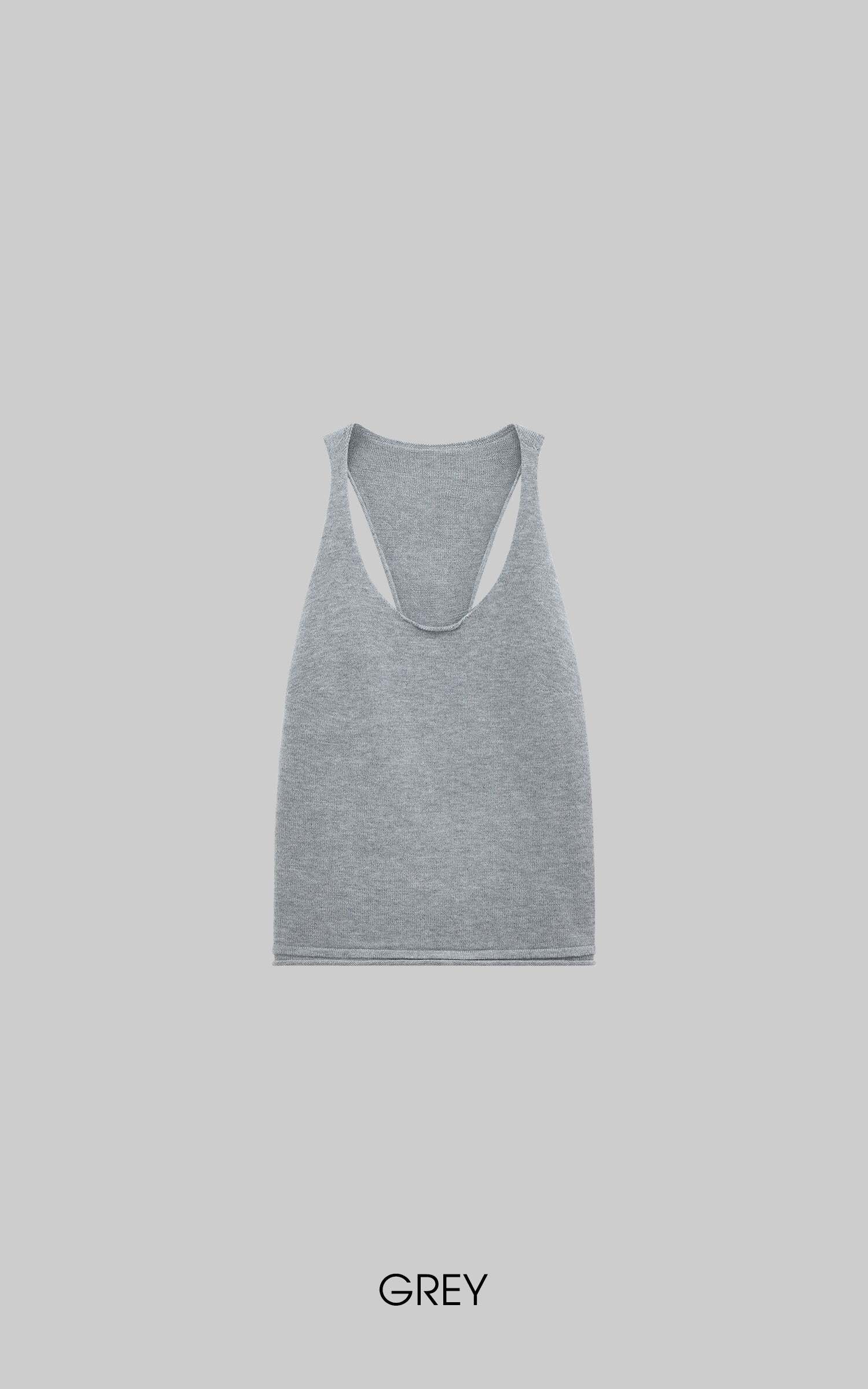 Elevate your wardrobe essentials with this backless knit tank top. Crafted with a focus on minimalism and texture, its racerback design and soft knit material redefine casual elegance. The lightweight fabric offers a relaxed fit, perfect for layering or wearing solo on warmer days. Pair it with wide-leg pants or a structured jacket for a seamless fusion of comfort and street style.