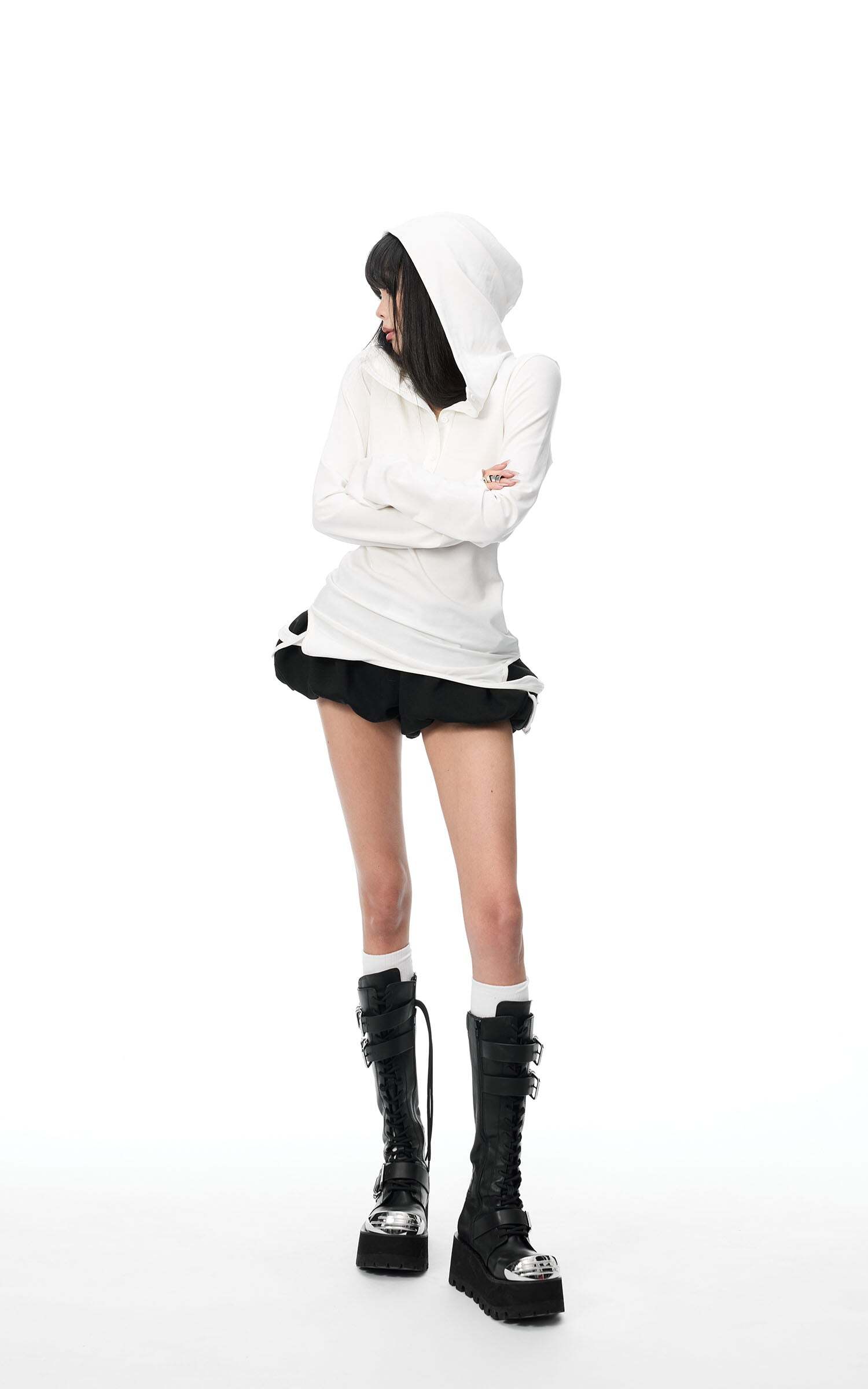 Merging voluminous structure with a streetwear aesthetic, these bubble bloom shorts defy traditional silhouettes with an avant-garde twist. Crafted from lightweight fabric with carefully gathered pleats, they create a sculptural shape while maintaining effortless wearability. The elasticated waistband ensures flexibility, accommodating a variety of body types. Designed with a bold curved structure, these shorts pair seamlessly with fitted tops for contrast or oversized pieces for a layered streetwear effect. Whether styled for everyday wear or editorial moments, this standout piece guarantees a striking visual impact.