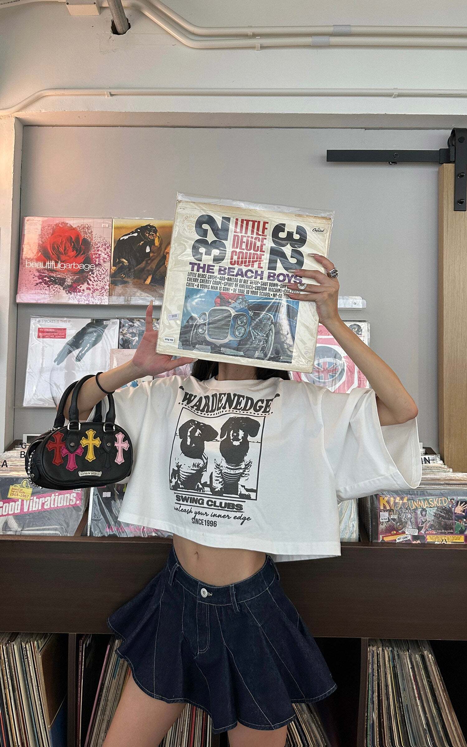 A cropped silhouette with oversized proportions and subtle attitude. This tee riffs on band merch iconography with a high-contrast dog duo printed front and center. The raw hemline and boxy fit evoke a bootleg energy—offbeat, lo-fi, and unapologetically direct. Meant to be worn loose, with denim or distortion.