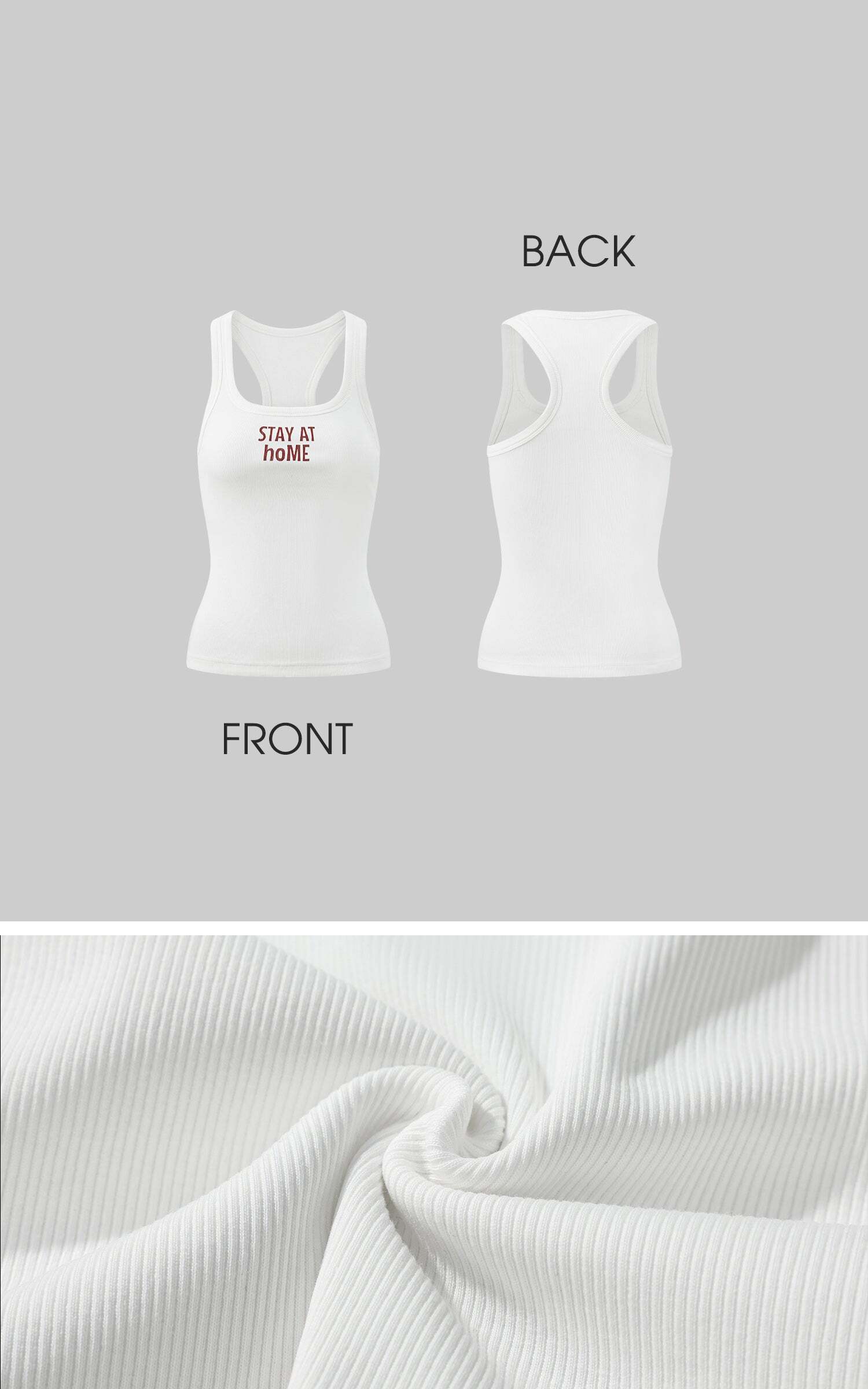 A laid-back essential with a rebellious twist. This cropped tank top features a sleek ribbed texture and a bold ‘STAY AT HOME’ print across the chest. Designed with a U-neckline and racerback cut, it offers a flattering, fitted silhouette that hugs the body in all the right places. Perfect for layering under oversized shirts or pairing with high-waisted denim for an effortless street-style look.