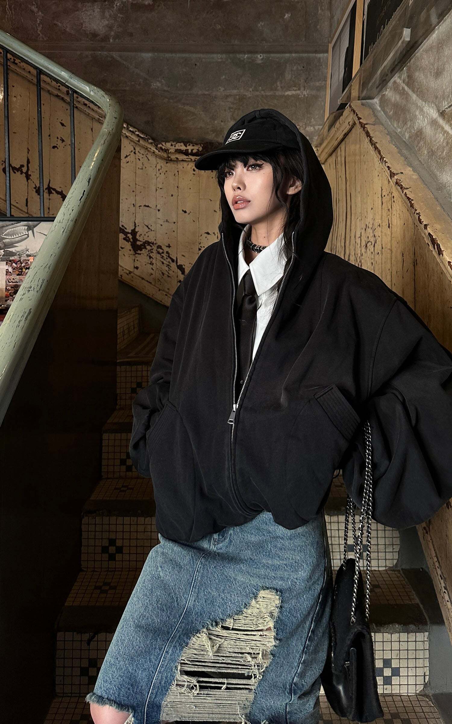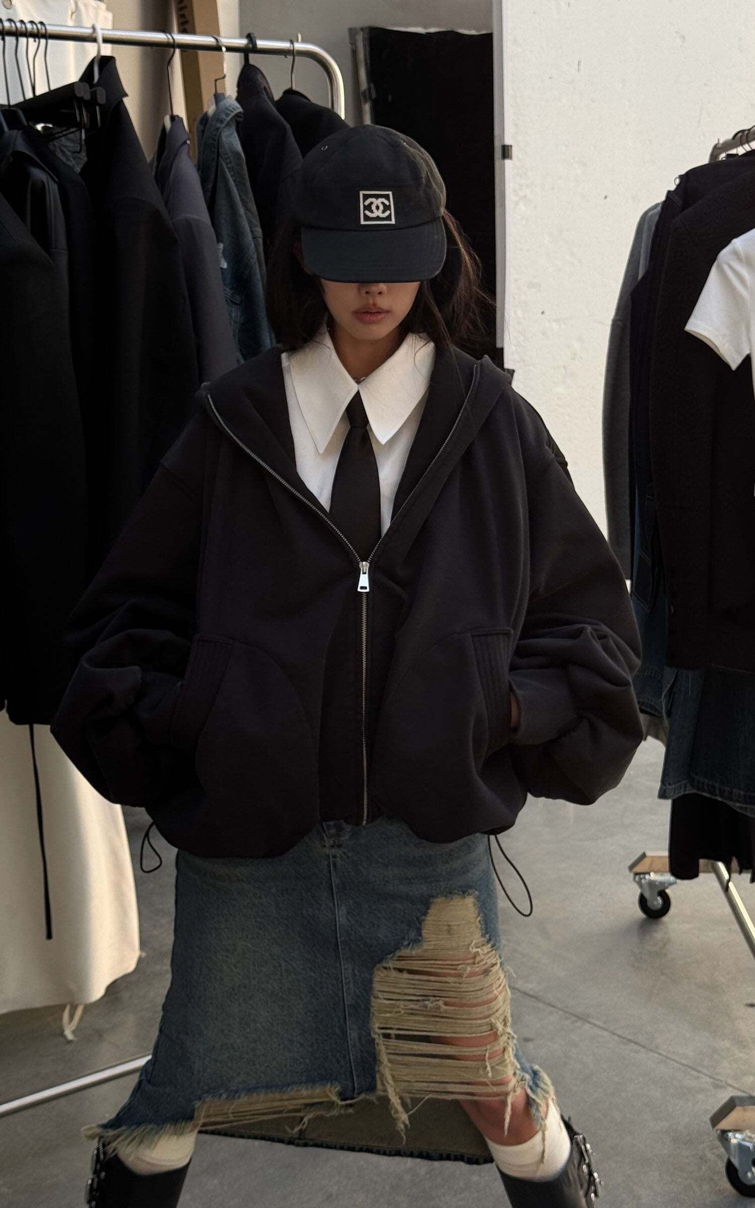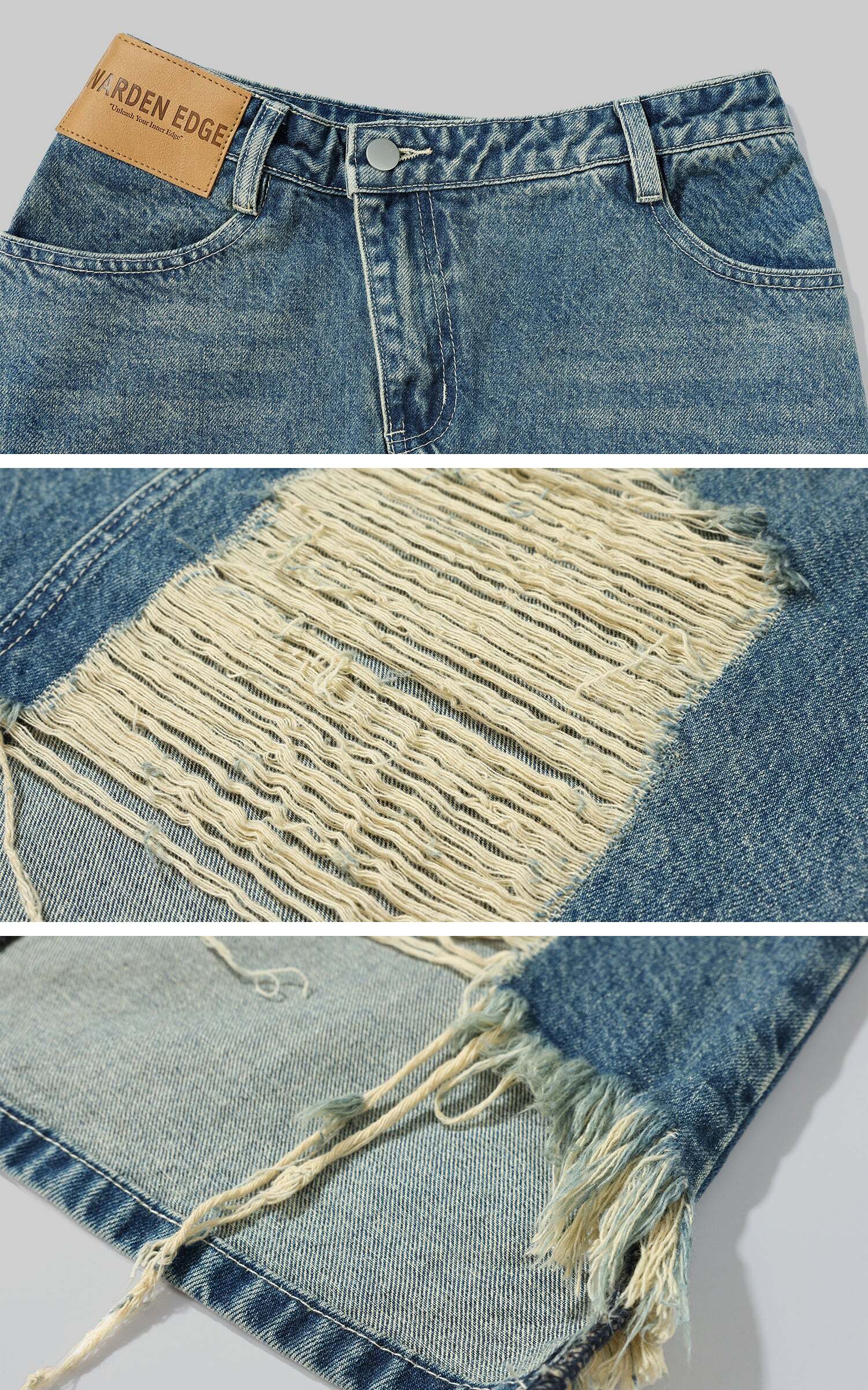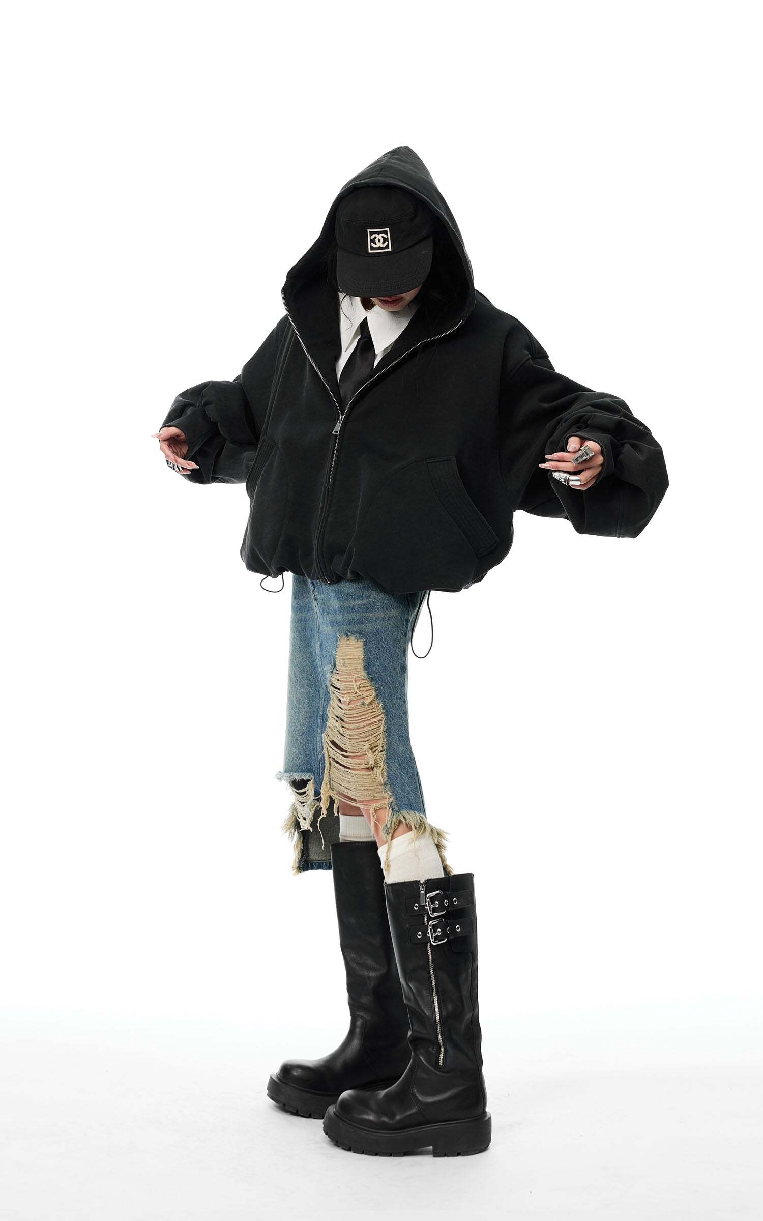 A bold reinterpretation of classic denim, this distressed midi skirt disrupts convention with raw-edge deconstruction and an asymmetrical hem. The frayed, ripped detailing adds an effortlessly rebellious streetwear vibe, while the structured washed denim fabric ensures durability and style. Its mid-length silhouette offers versatility—pair it with chunky boots for an edgy statement or sneakers for a laid-back urban look.