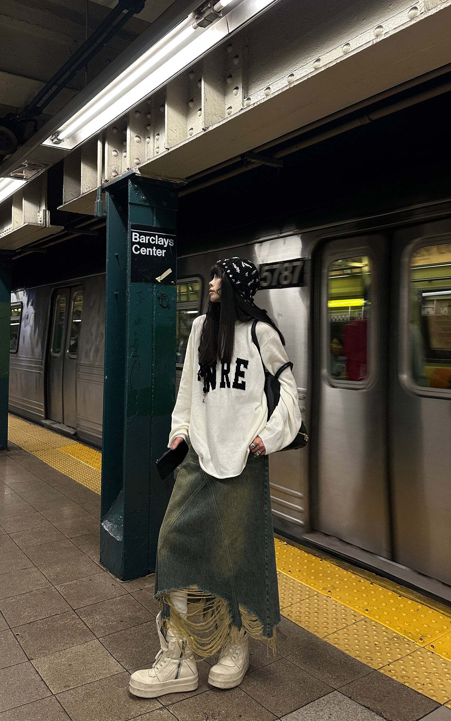 Distressed Denim Skirt with Deconstructed Hem: Trendy Skirt Outfits for You