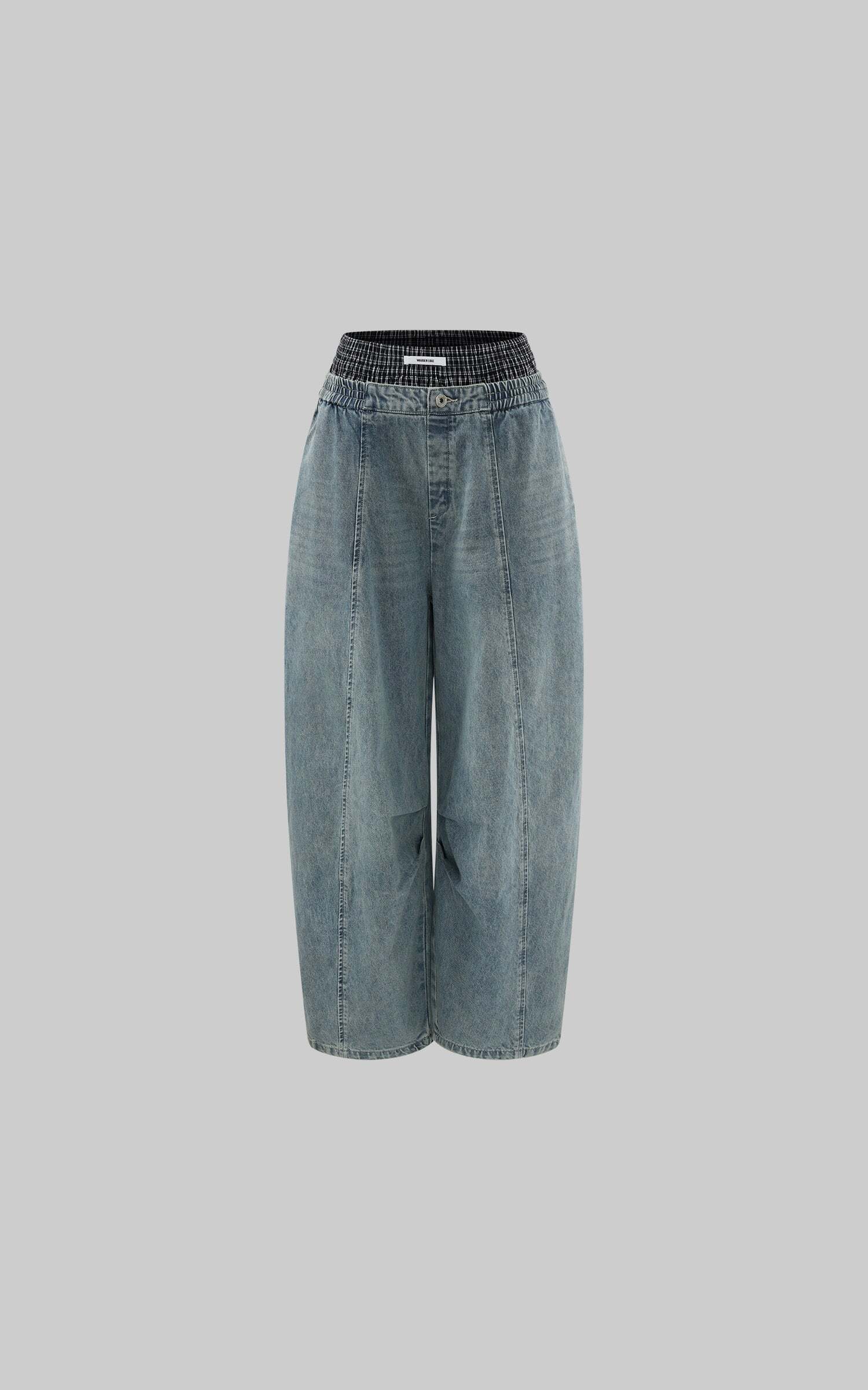 Elastic Waist Wide Leg Denim Pants – Leather Pants Outfit Winter