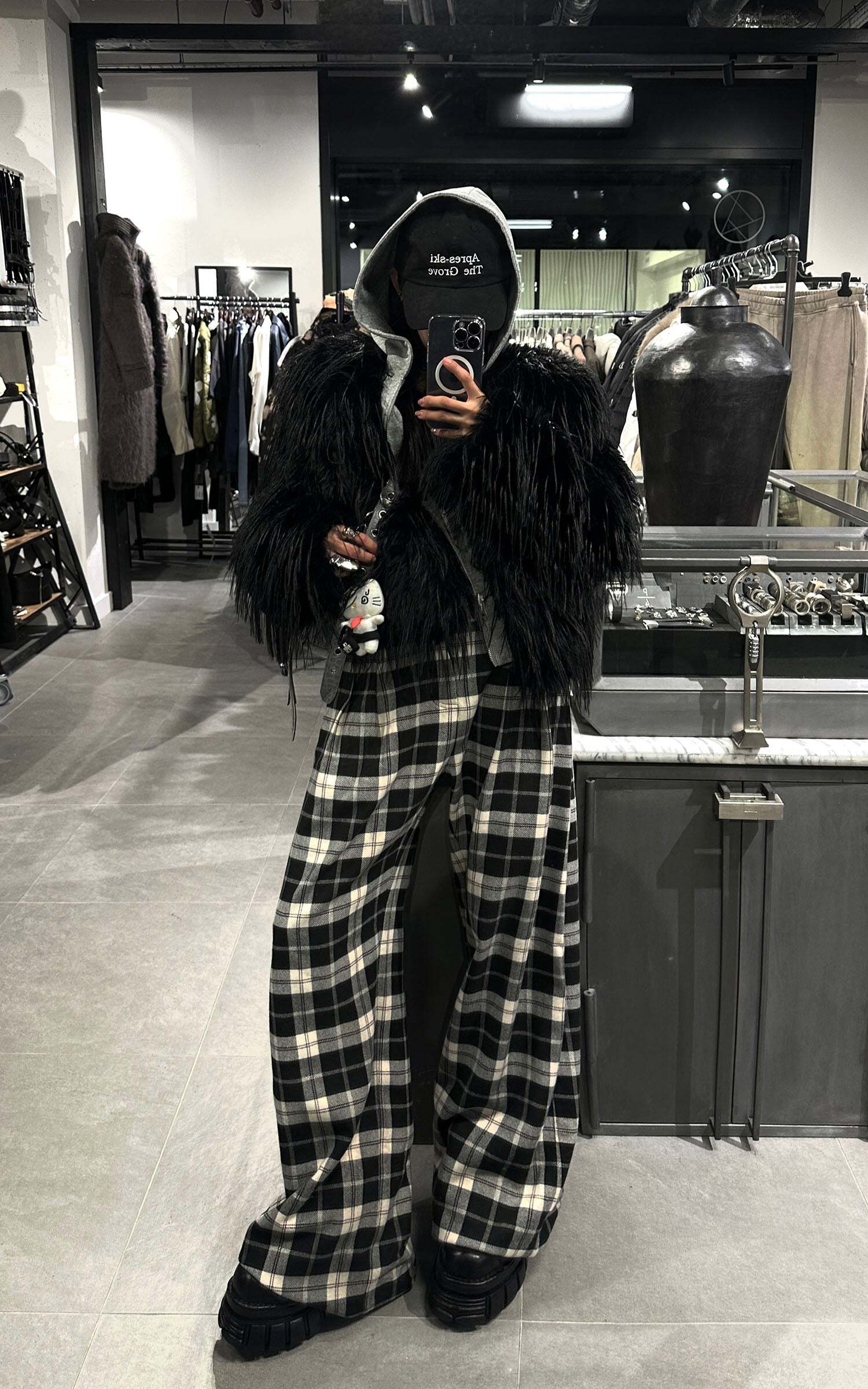 Faux Fur Contrast-layered Puffer Jacket Outfit for Stylish Winter Looks