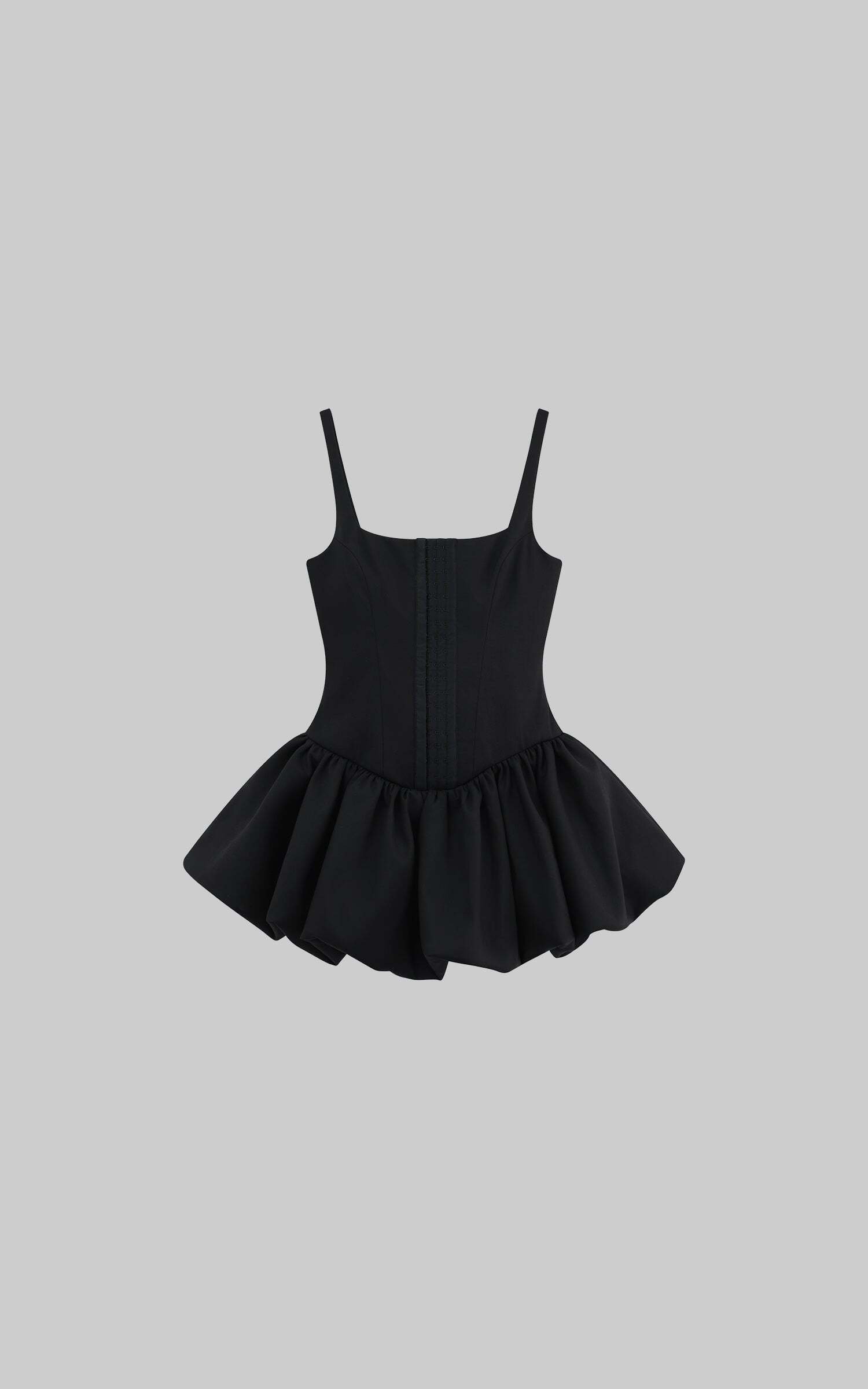 An interplay of romance and rebellion. Inspired by vintage corsetry, this puff dress marries historical elegance with a contemporary edge. The structured bodice enhances the waist, while the voluminous skirt creates a dramatic silhouette. Playful yet sophisticated, this piece transitions seamlessly from statement eveningwear to an avant-garde street style moment.