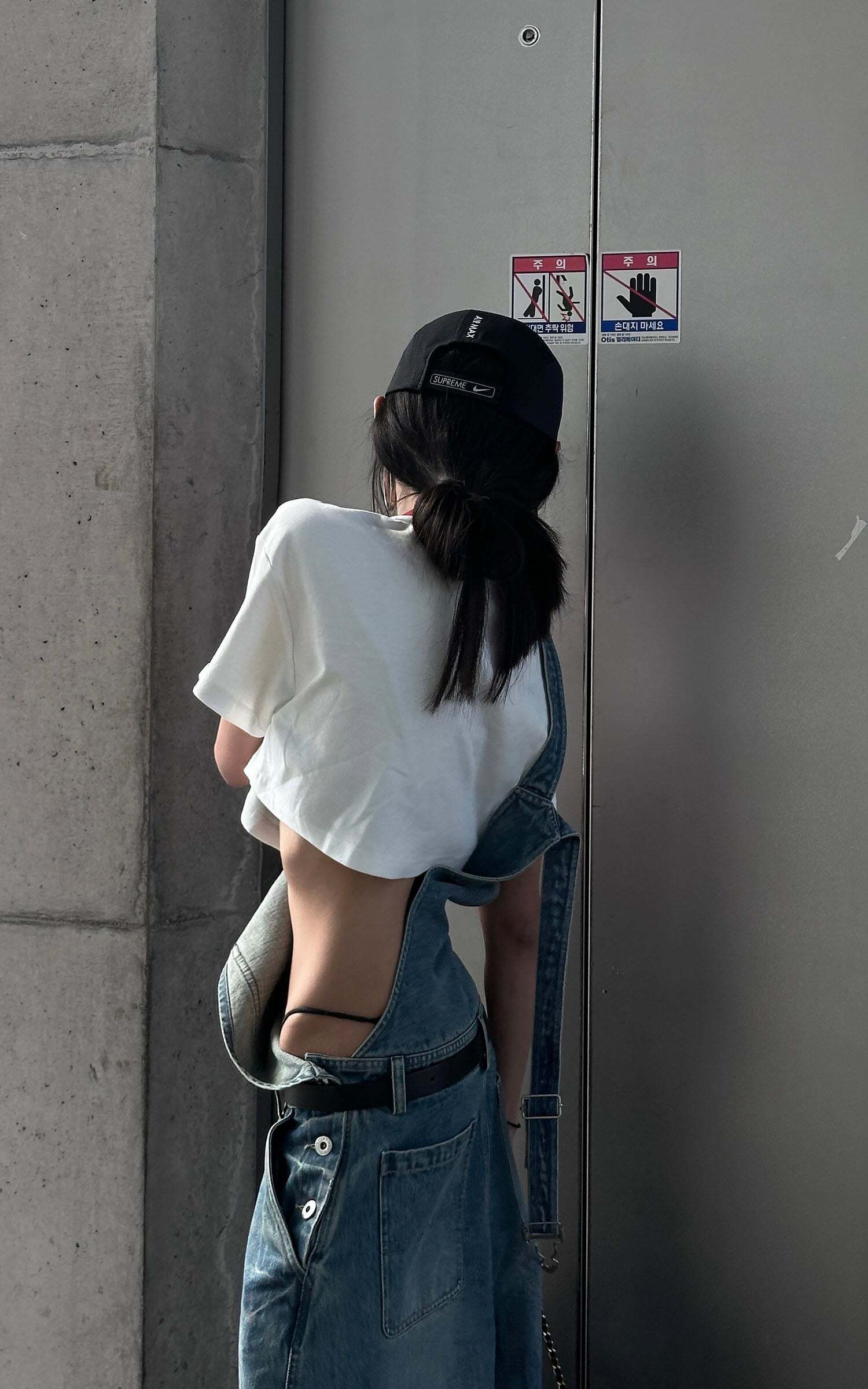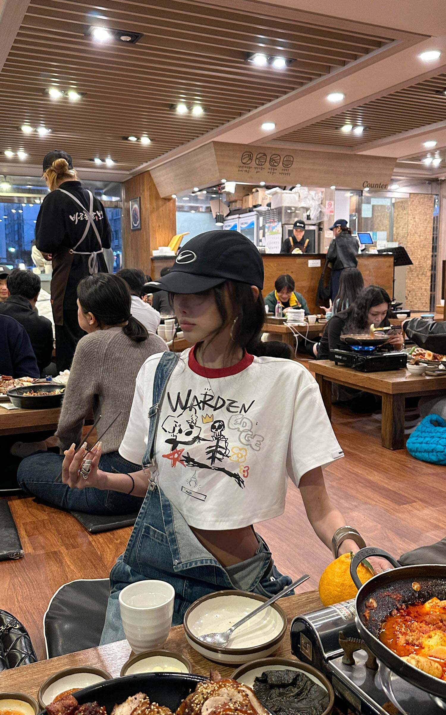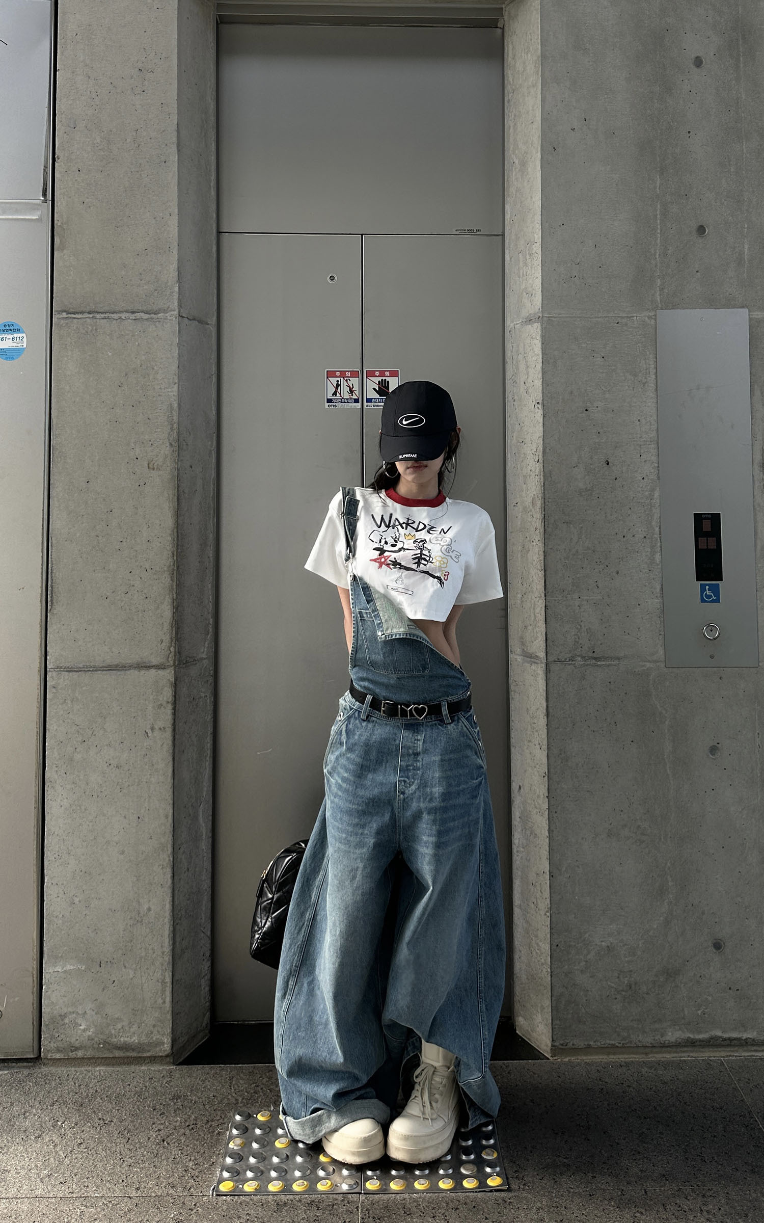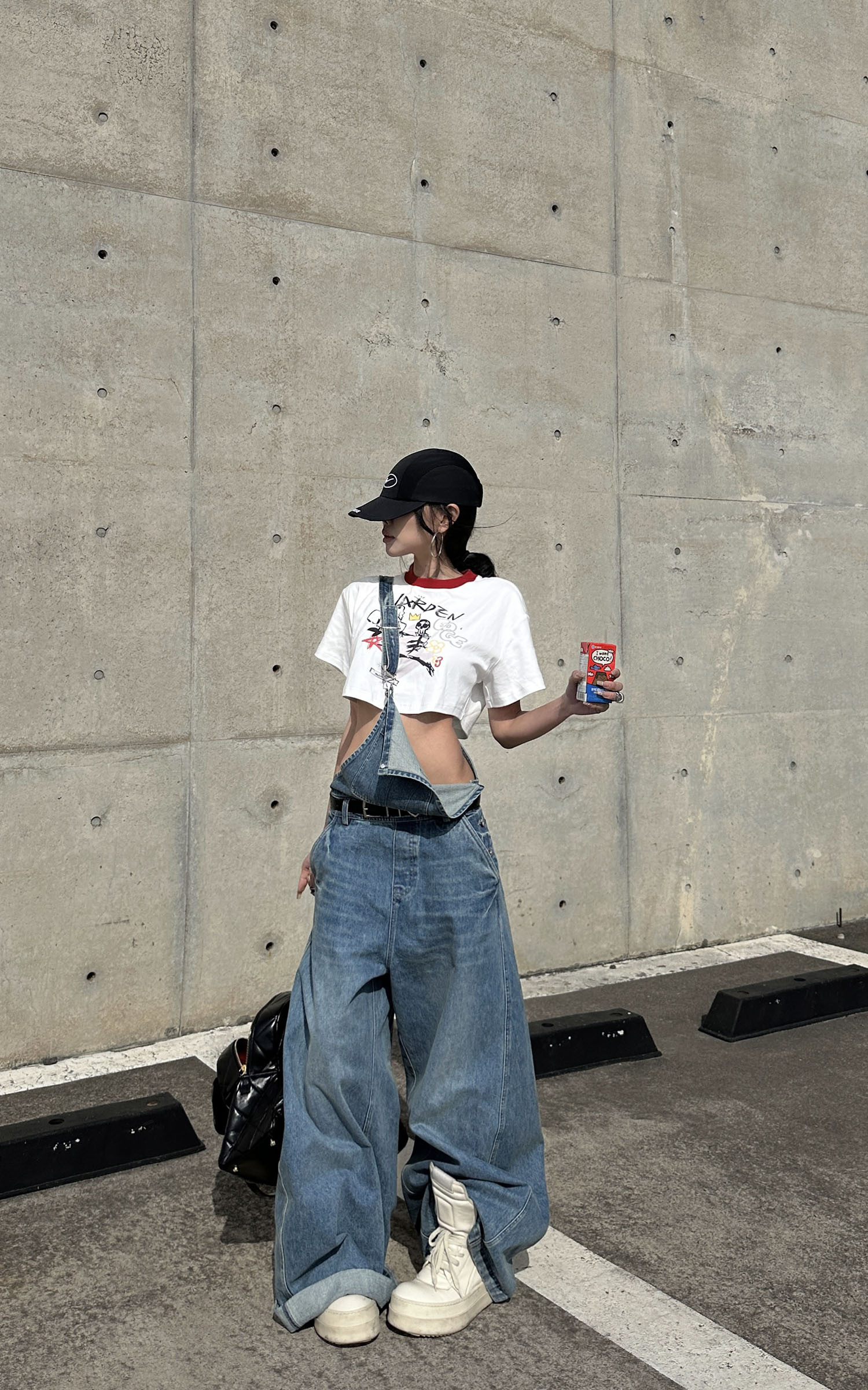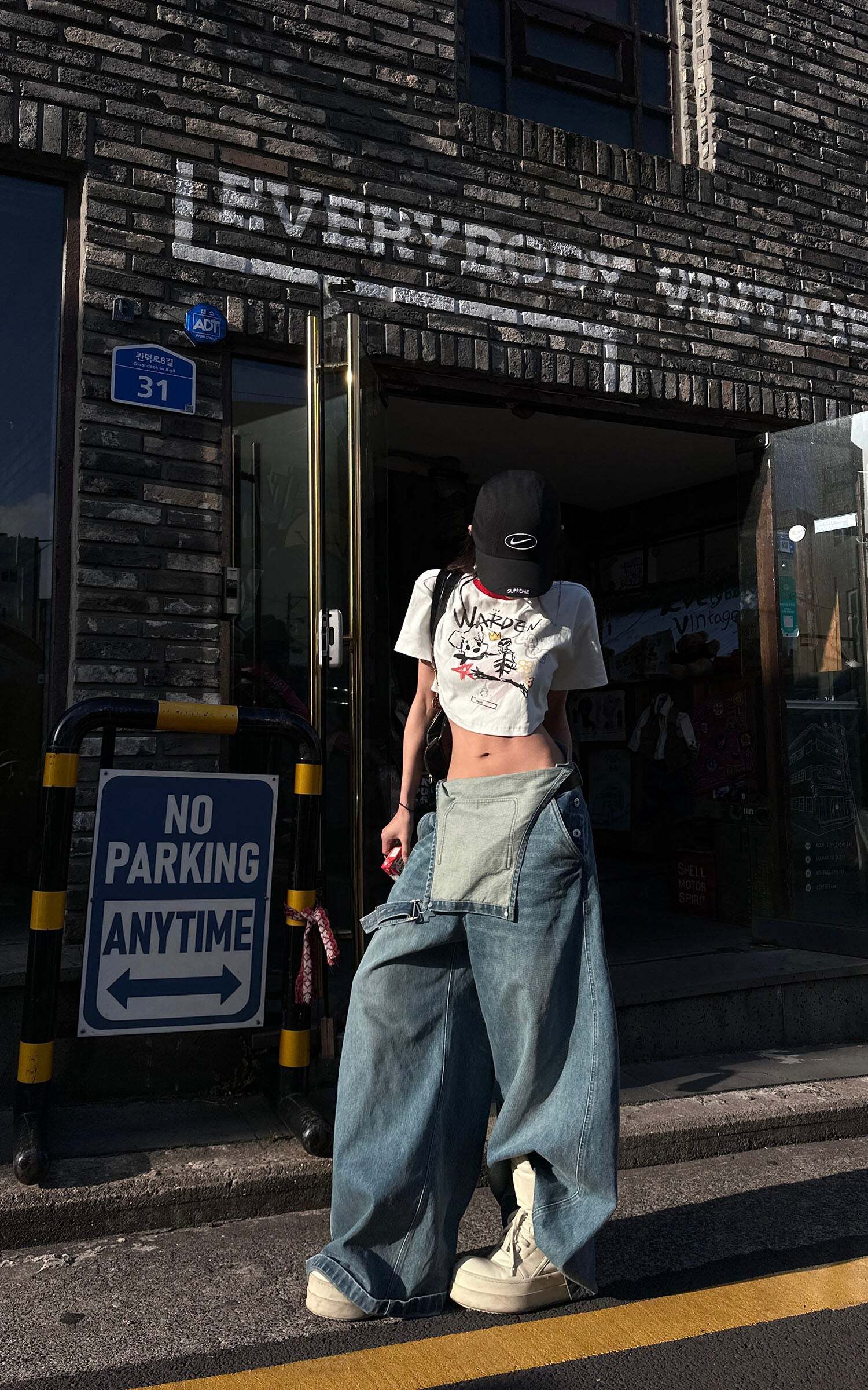 A bold cropped silhouette meets gritty street attitude. This boxy tee features a striking graffiti-inspired graphic with a mischievous puppy clutching a skeleton, layered with hand-drawn doodles, a crown, and a rebellious star. The deep burgundy ribbed neckline adds a punch of contrast against the crisp white base, while the cropped cut plays into early 2000s nostalgia and current underground codes. Crafted from soft yet structured cotton jersey, it hits just above the waist—made to pair with oversized denim, low-rise cuts, or layered beneath utility overalls. It’s more than just a tee—it’s a snapshot of chaos and charm.