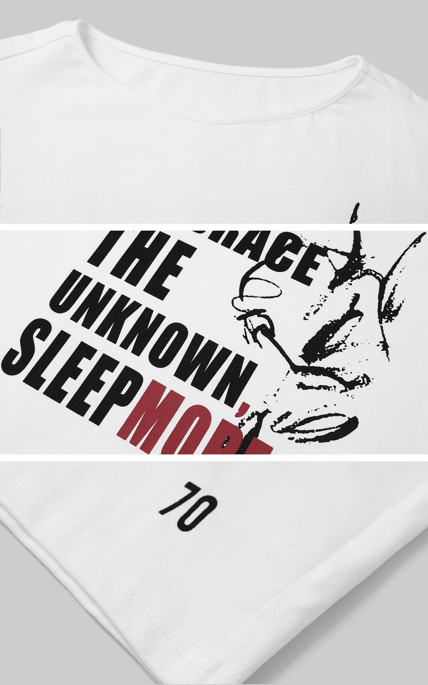 Step into bold simplicity with this oversized graphic T-shirt. Featuring striking typography and artistic hand-drawn graphics, this piece combines modern design with timeless streetwear aesthetics. The crew neckline and relaxed fit provide effortless comfort, while the breathable cotton blend ensures durability and all-day wearability. Pair it with tailored trousers or casual shorts for versatile styling.