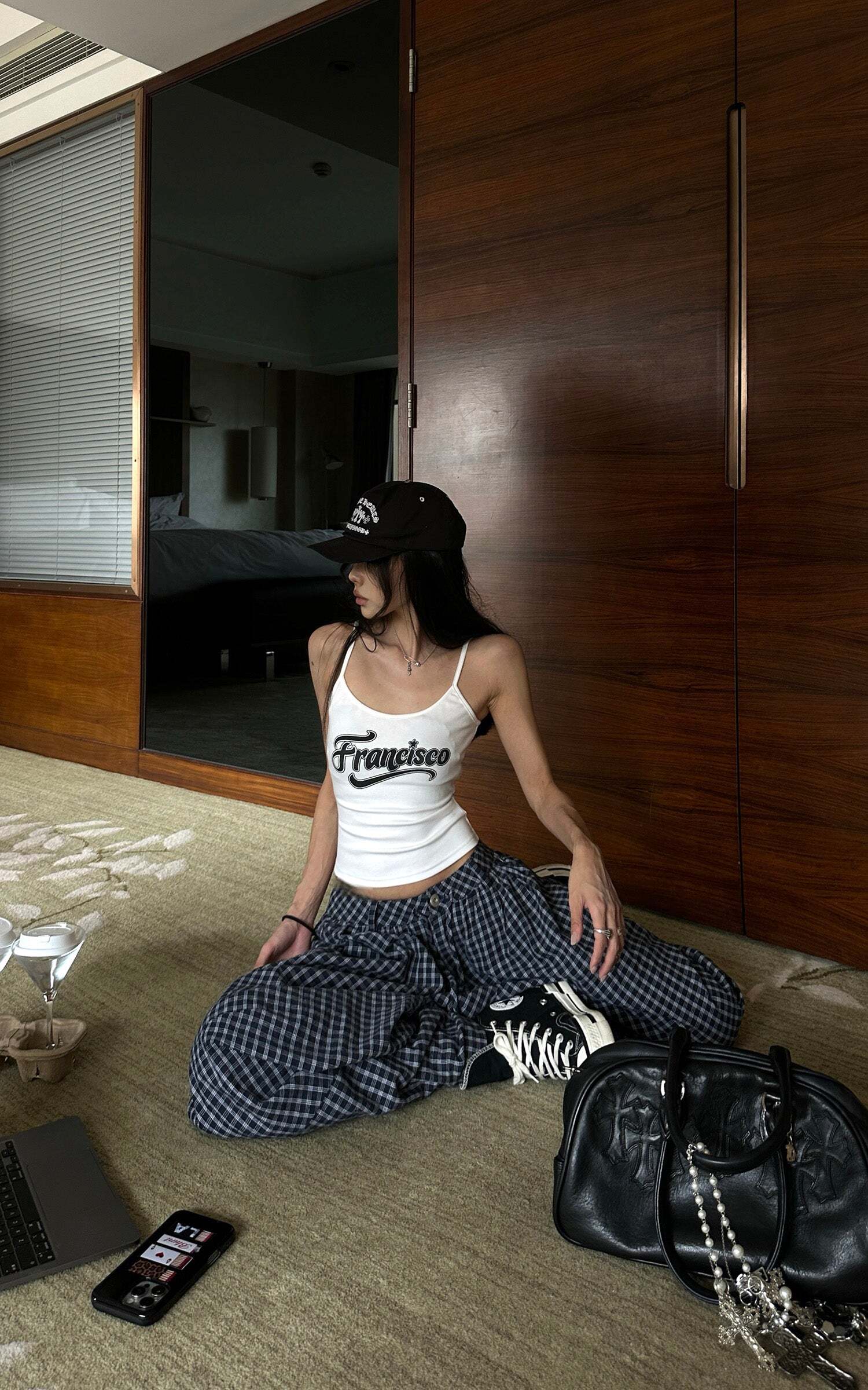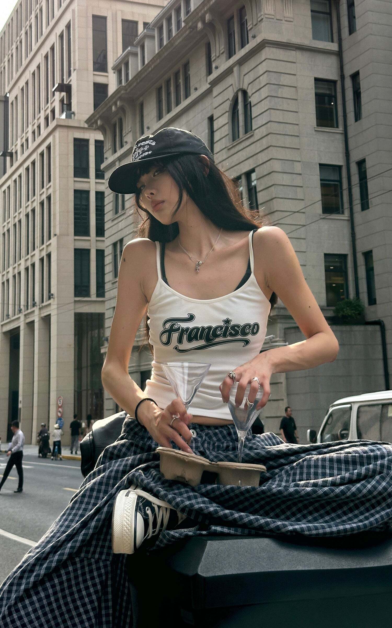 Graphic Strap Tank Top with Urban Street Style – Outfit Inspo