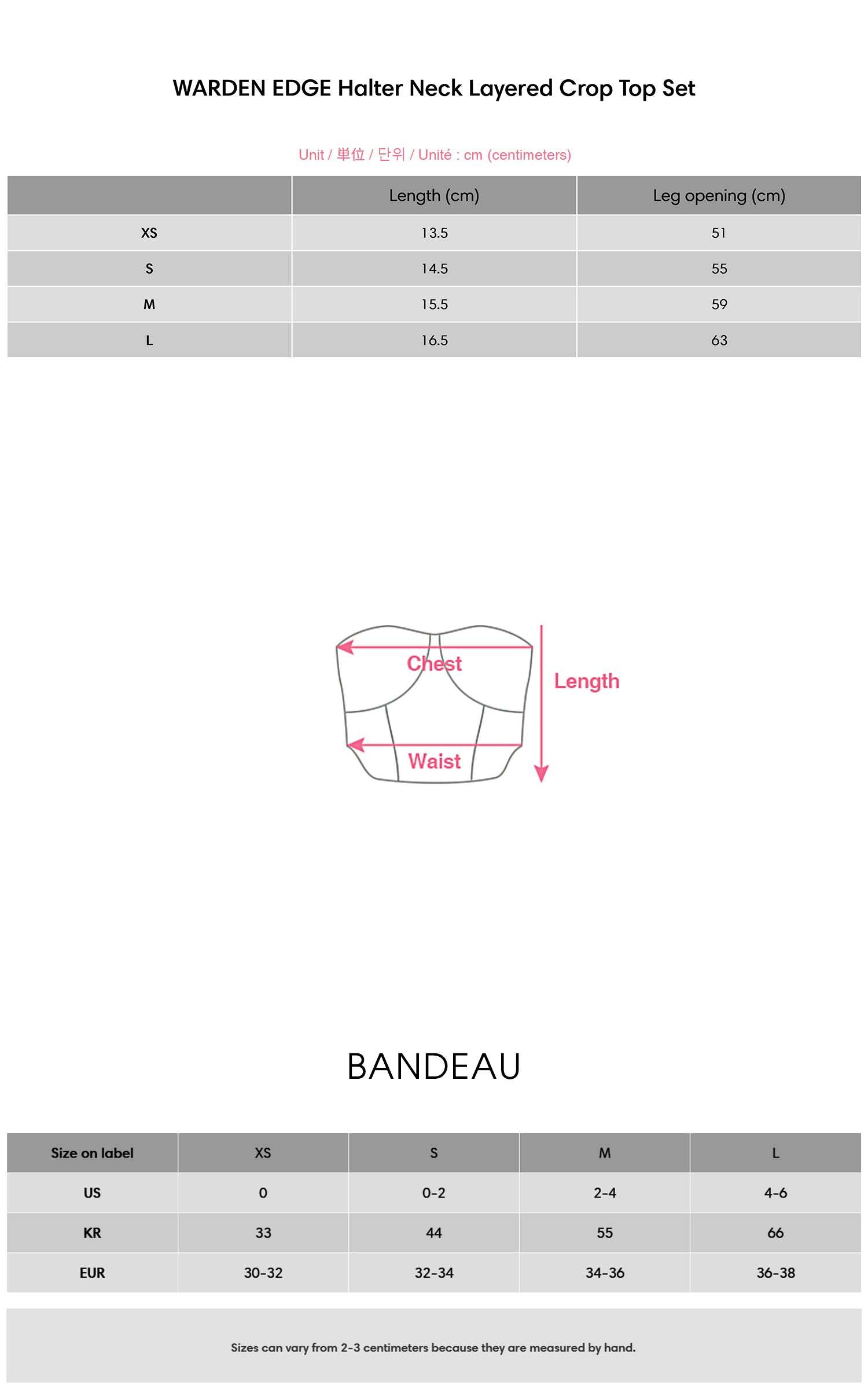 - Model is wearing size S for the Halter top and size S for the Bandeau.