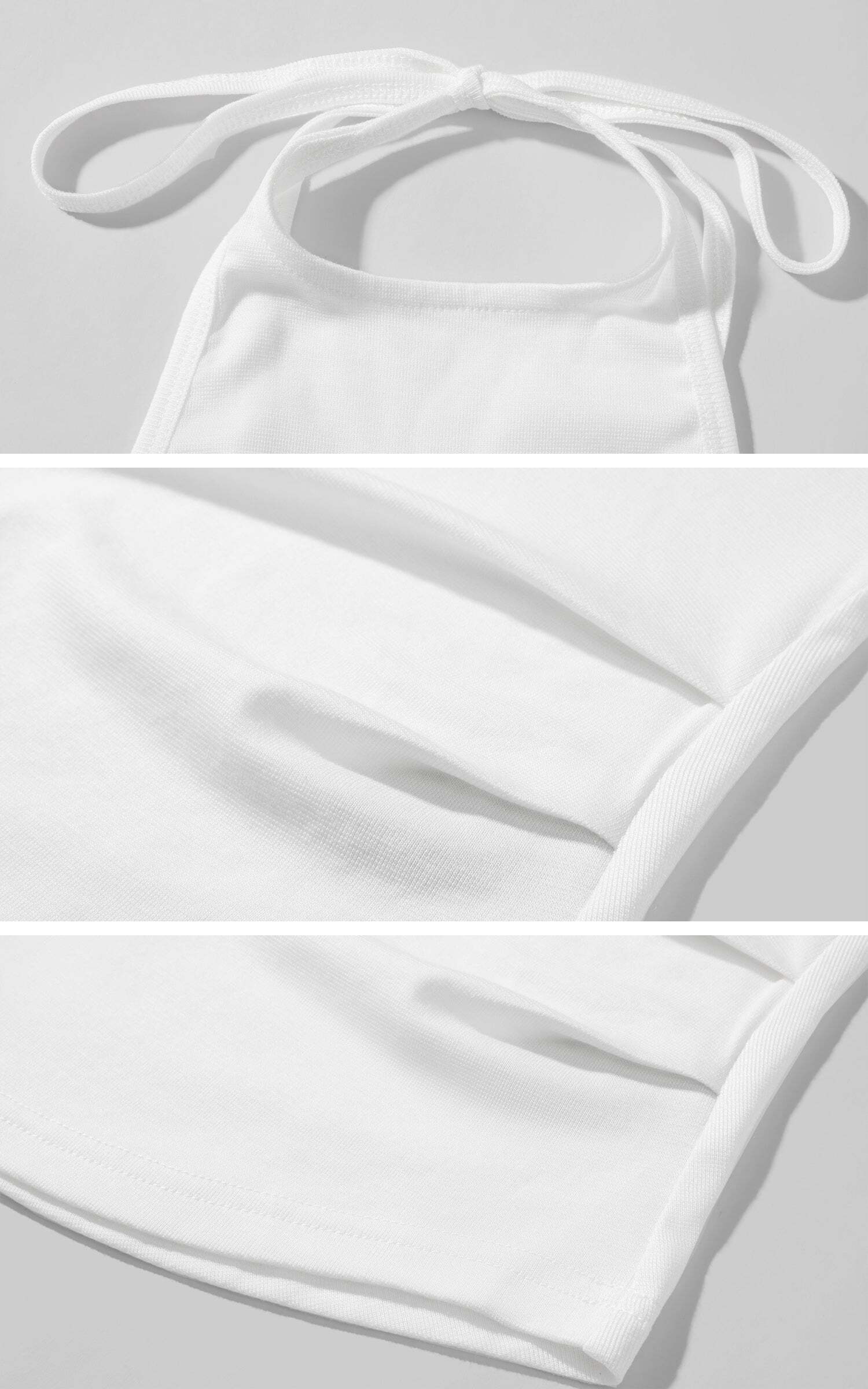 A hybrid of minimalism and subversion. This two-piece set merges a clean halter silhouette with an inner bandeau layer—engineered for contrast, not concealment. Soft stretch cotton wraps the body with intention, draping loose but controlled. Wear it as a uniform for late summer rebellion, a blank canvas to build on or break down. Designed for off-center days and eyes that notice detail.