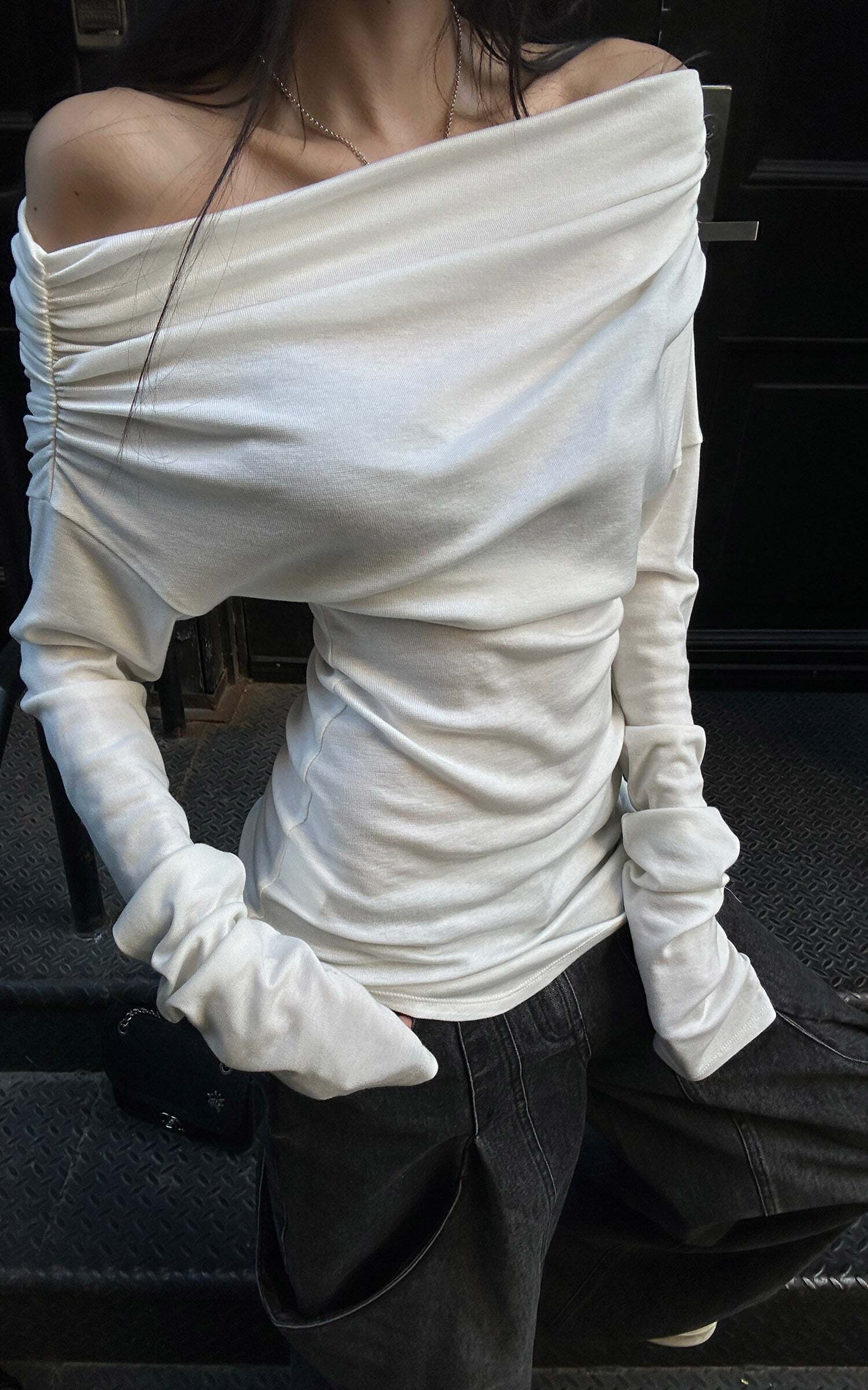 Off-Shoulder Ruched Long Sleeve T-Shirt High-quality product featuring vacation outfits, last minute halloween costume, outfit inspo fall and more. Modern design that fits the latest trends. Premium materials ensure durability and comfort. Order now for special offers! Product designed with attention to every detail. Suitable for all occasions and personal styles.