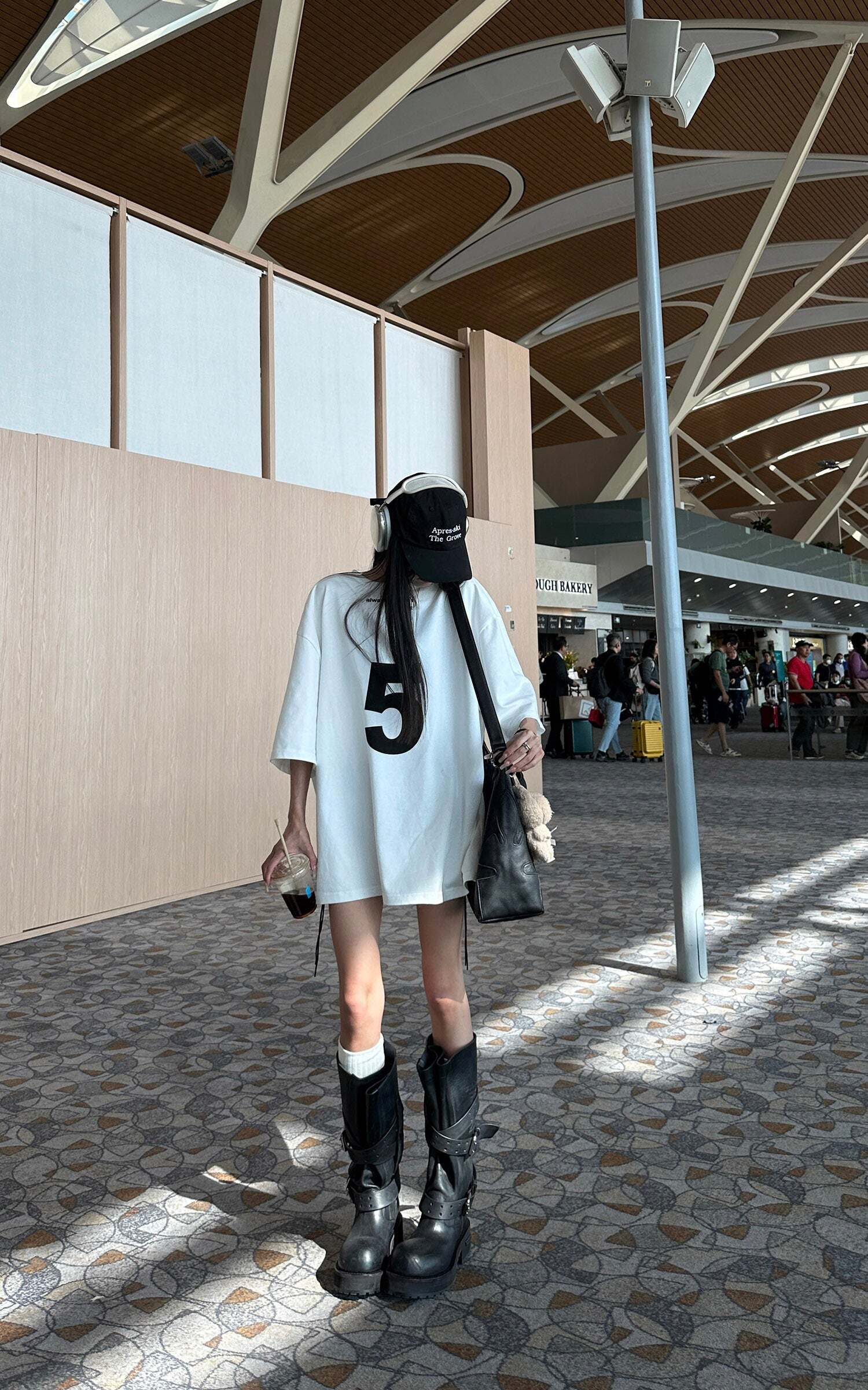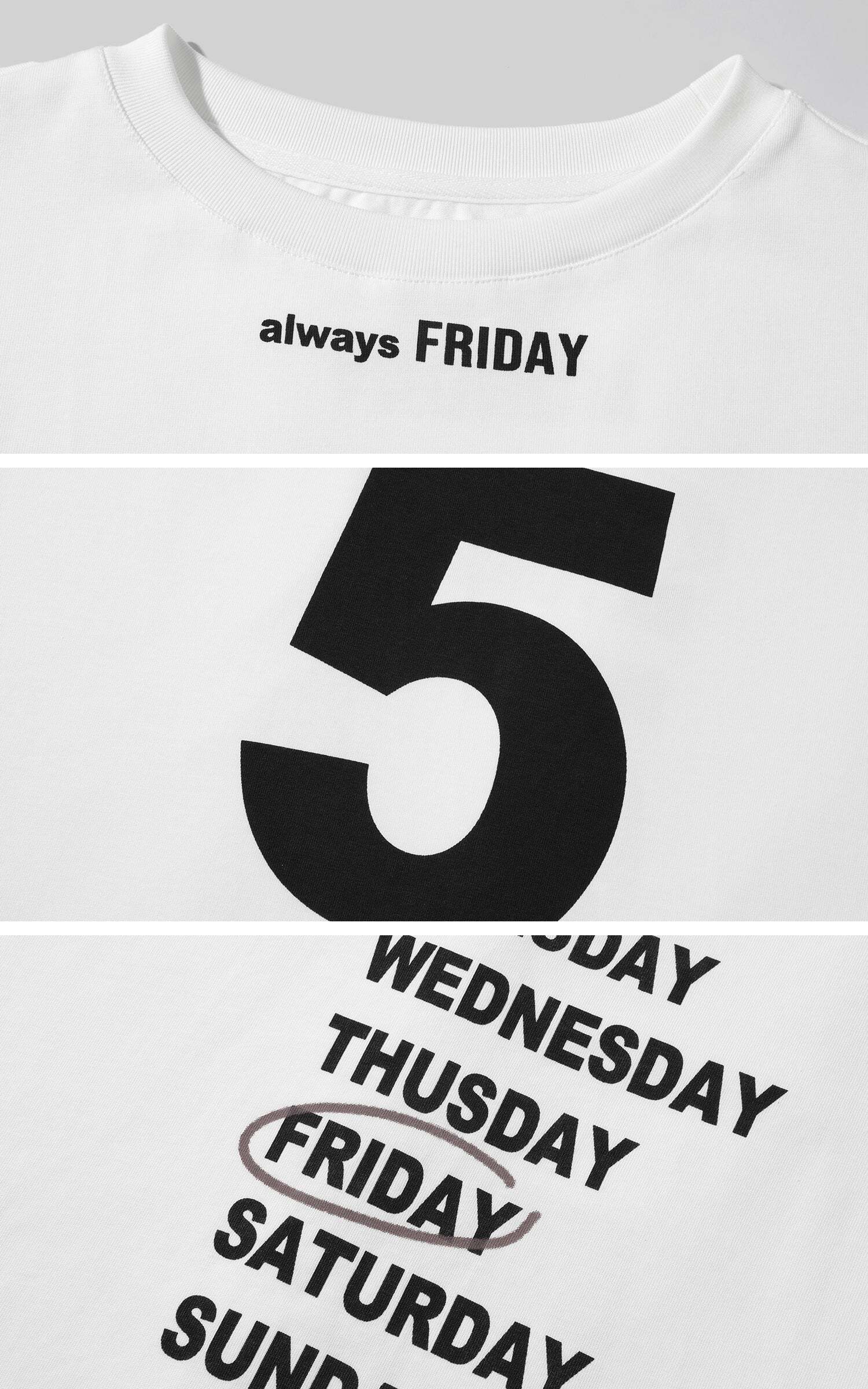 Everyday uniform, disrupted. This oversized tee features bold typographic elements—fronted with a singular graphic numeral and backed with the full week in boldface, circled decisively at Friday. The drop-shoulder cut and extended hem create an unbothered drape, engineered for comfort in motion. Not about fashion—it’s about frequency, repetition, and choosing your moment.