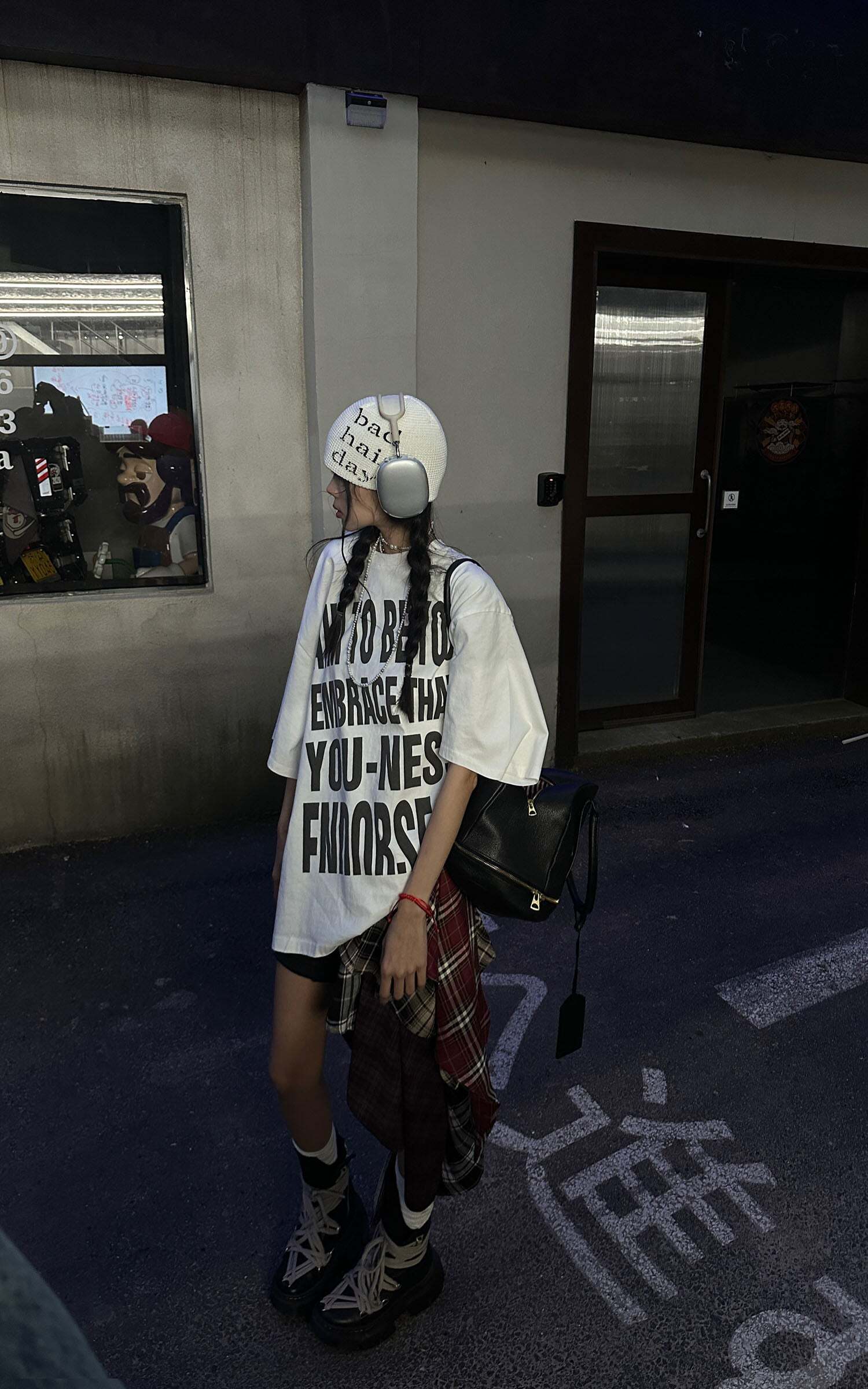 Embrace individuality with bold typography. This oversized cotton tee is a statement piece, perfect for layering or wearing solo. The dropped shoulders and relaxed fit create a laid-back silhouette, making it ideal for everyday streetwear or elevated casual looks.