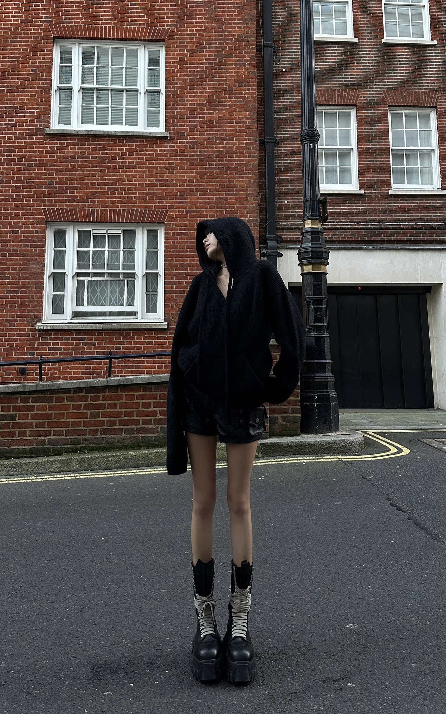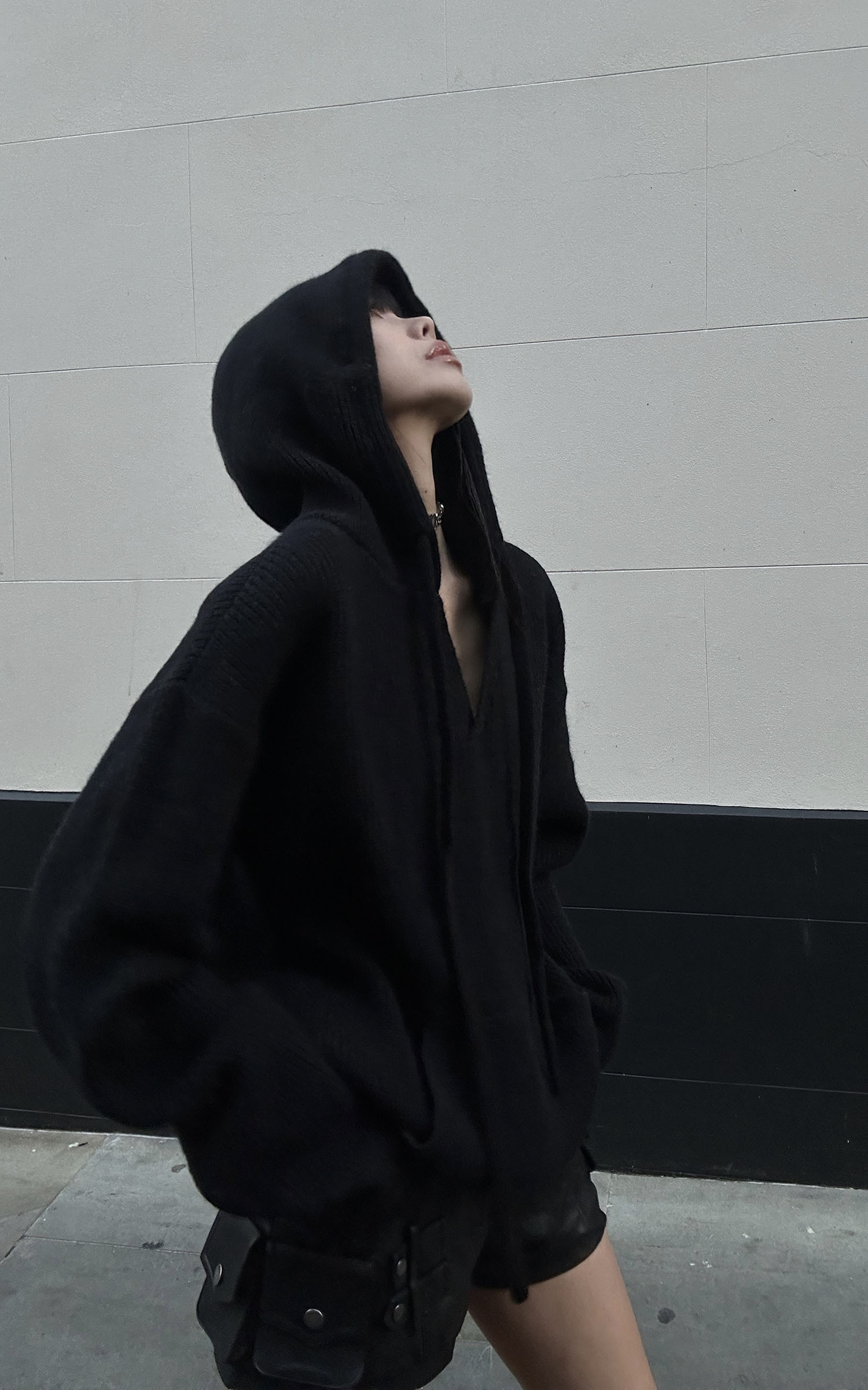 Redefining comfort with an edge, this oversized hooded knit sweater blends minimalism with street-ready attitude. Designed with a relaxed silhouette and extra-long sleeves for a strikingly bold look. Layer it with leather or denim to complete a modern urban aesthetic that’s both effortless and intentional.