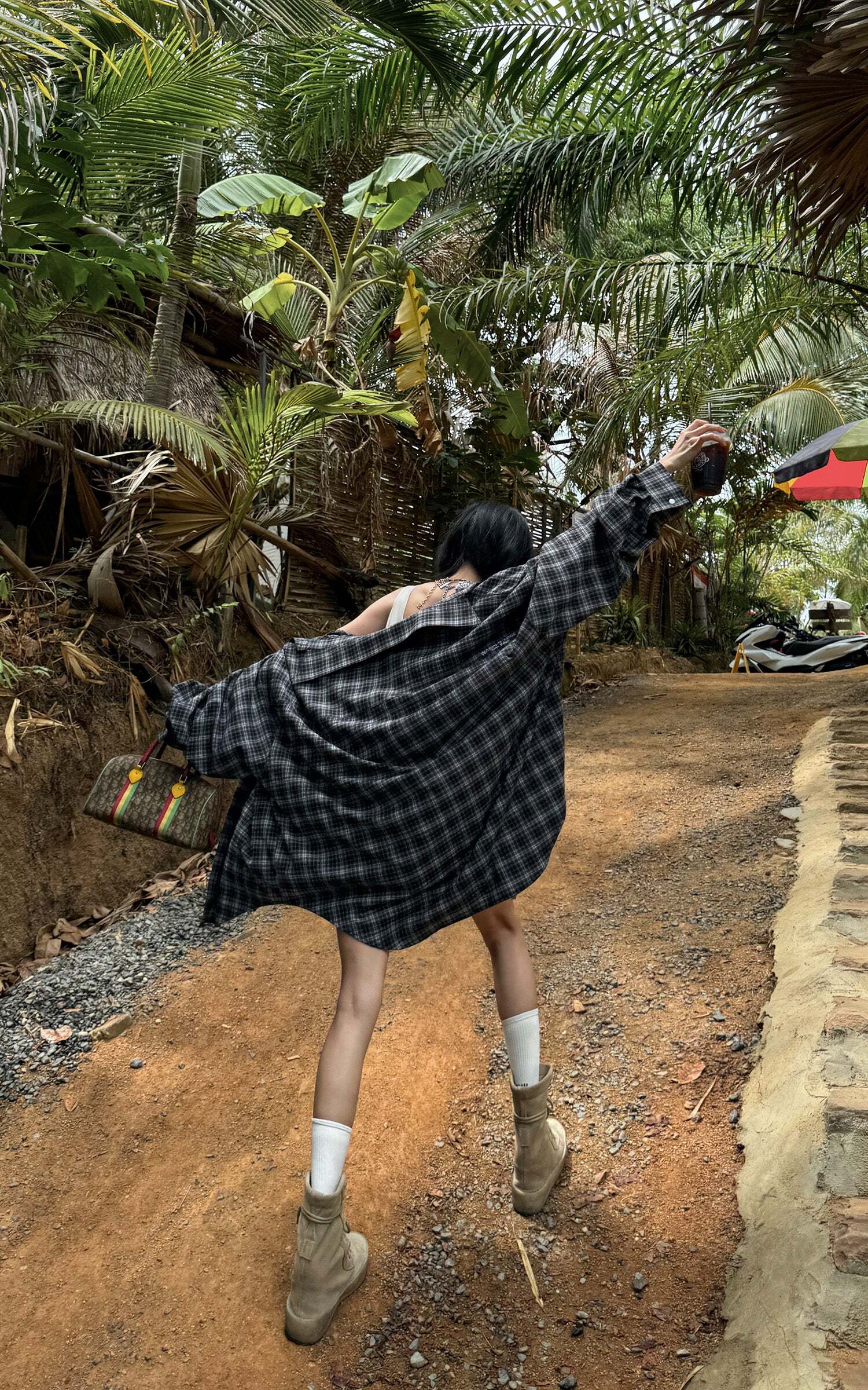 Elevate Your Puffer Jacket Outfit with an Oversized Plaid Shirt Jacket