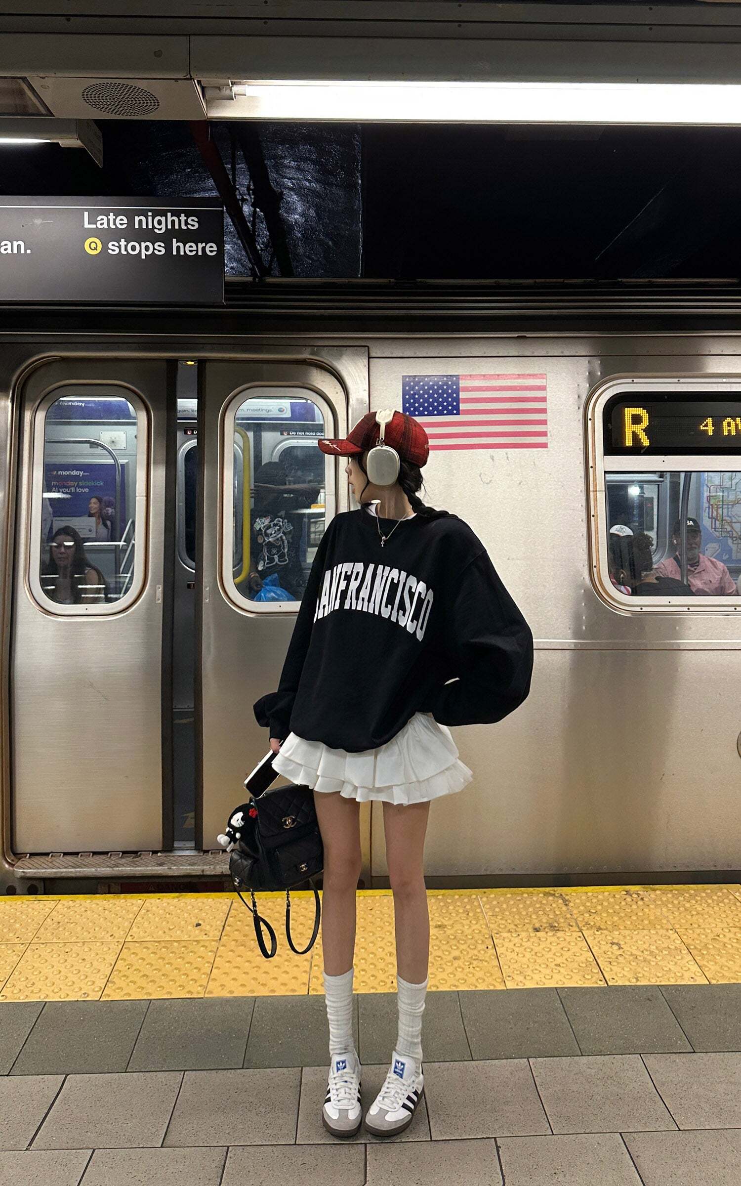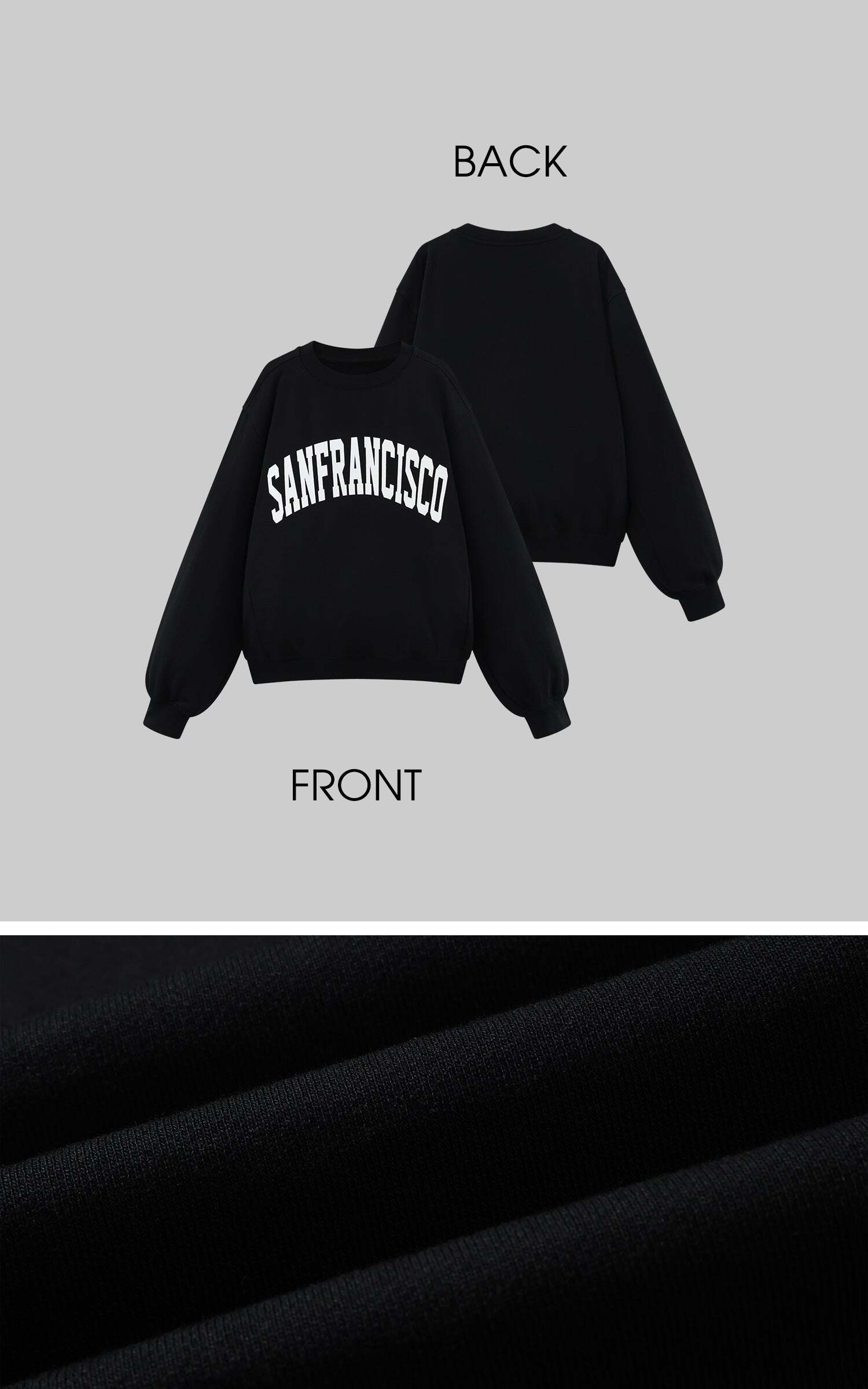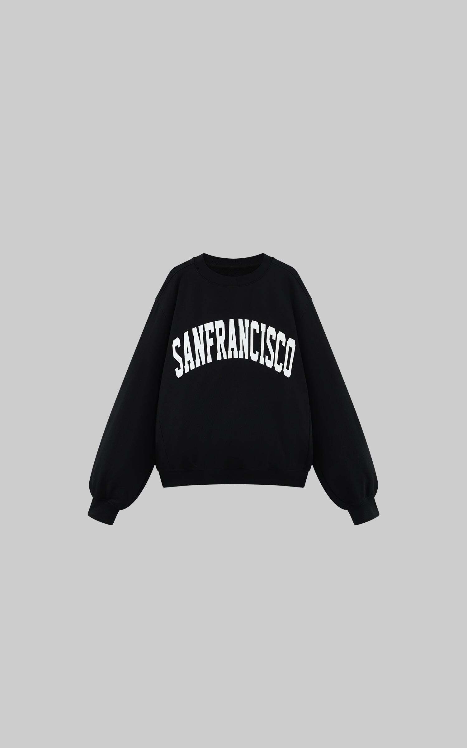 An oversized sweatshirt with a bold SAN FRANCISCO print across the chest, crafted from soft cotton blend for a relaxed street feel. The dropped shoulders and loose silhouette deliver effortless layering, while ribbed cuffs and hem add structure. Perfect for pairing with pleated skirts or baggy pants, creating a look that’s both laid-back and iconic.