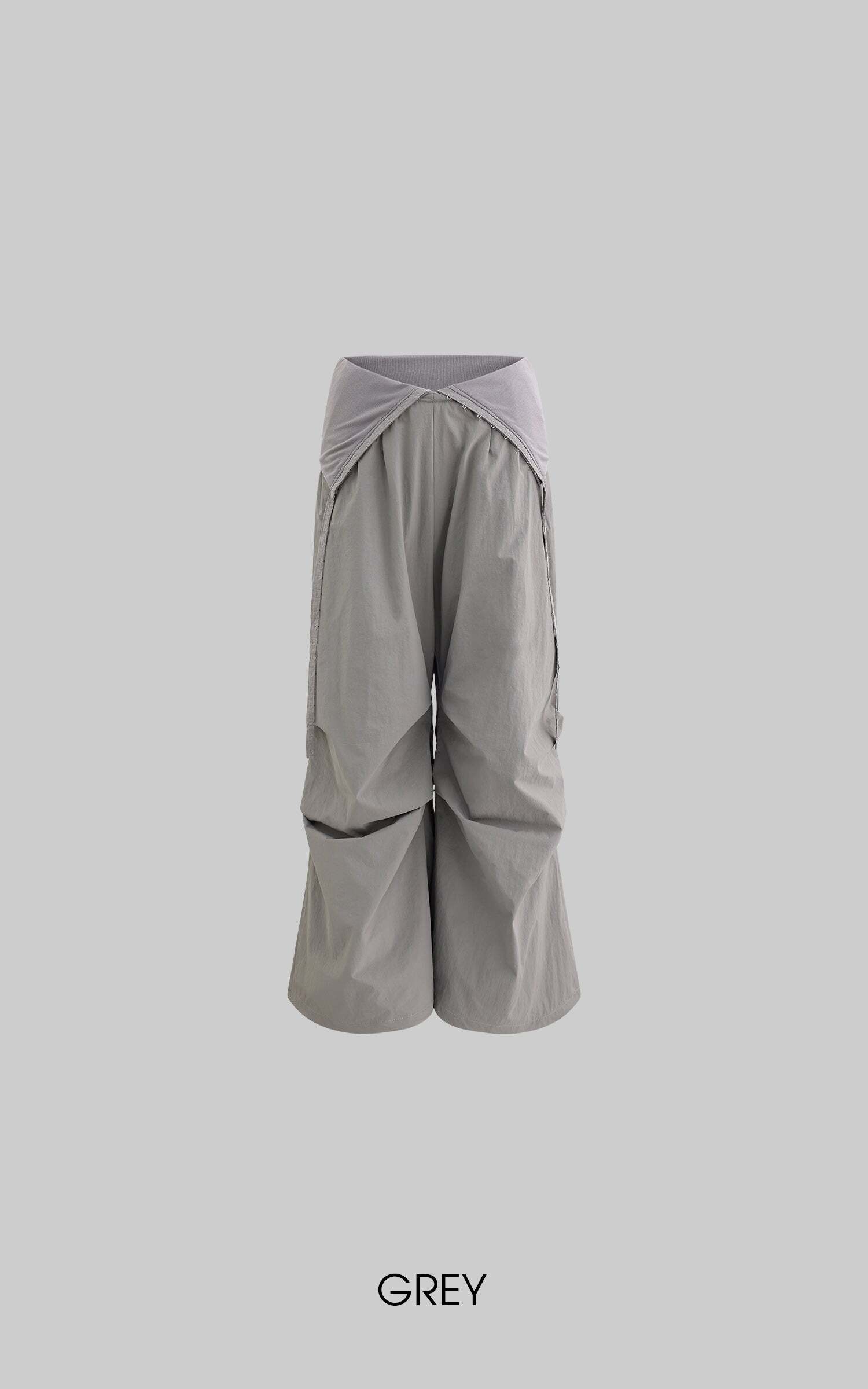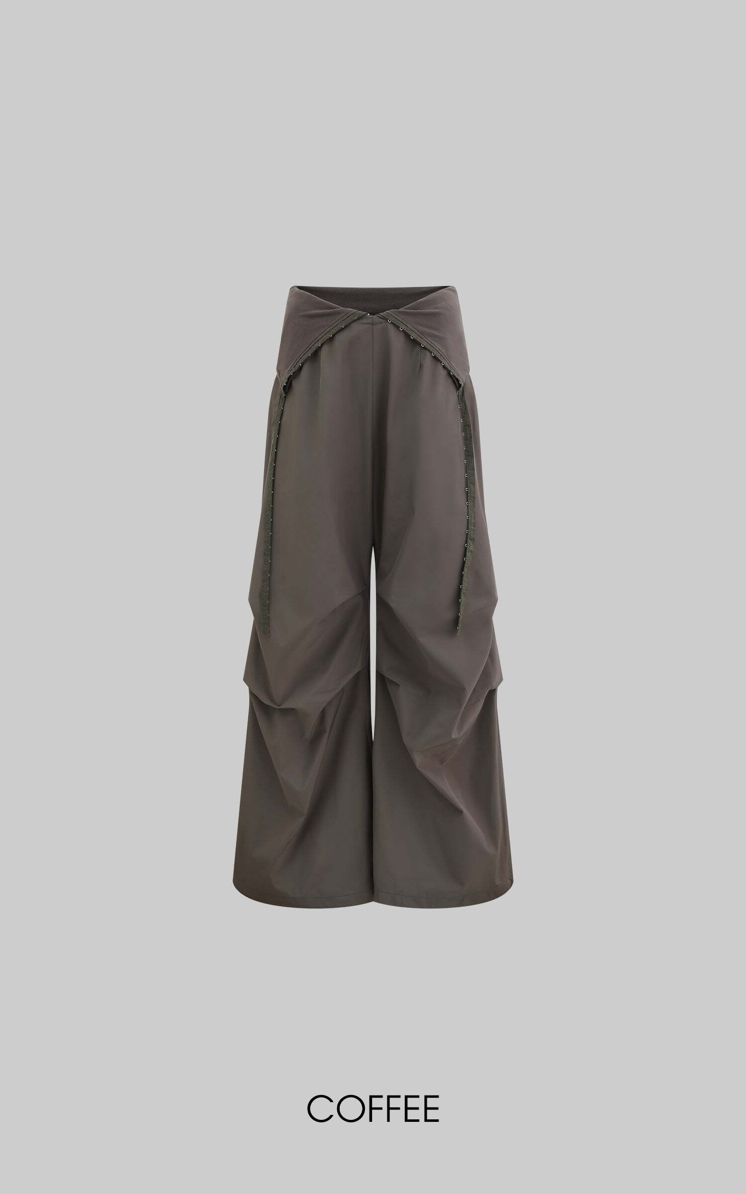 A balance of deconstructed fluidity and military-inspired rigidity, these wide-leg pants redefine movement. Crafted from a lightweight yet structured fabric, they offer an effortless drape that sways with each step, shaping an ethereal silhouette. A high-waisted design with asymmetrical paneling creates a layered visual effect, while the adjustable drawcords allow for a customized fit, adapting to individual style. Hidden zippered pockets merge practicality with refined detailing, seamlessly blending into the structured cuts. Whether styled for everyday wear or an avant-garde statement, these pants lend a narrative depth to any ensemble.