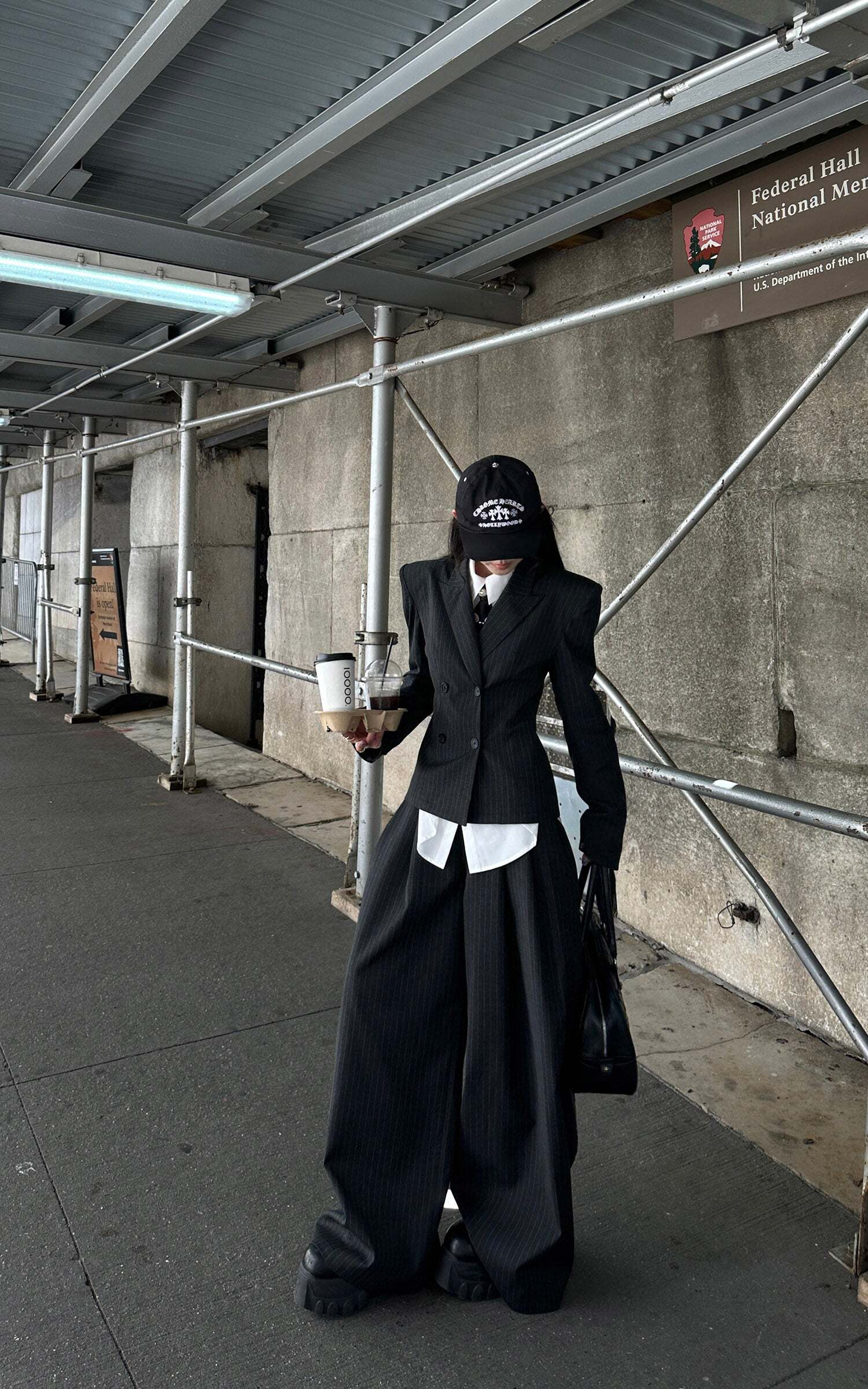 Pinstripe Suit Set with Blazer Shirt and Wide Trousers High-quality product featuring casual outfits, outfit inspo, fashion outfits and more. Modern design that fits the latest trends. Premium materials ensure durability and comfort. Order now for special offers! Product designed with attention to every detail. Suitable for all occasions and personal styles.