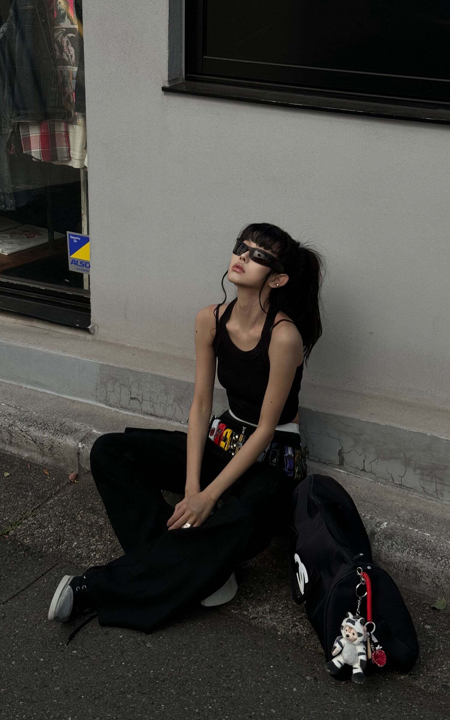 Unleash the essence of modern minimalism with this ribbed racerback tank top. Designed for bold expressions and versatile layering, this piece redefines edgy elegance. The fitted silhouette embraces a streamlined aesthetic, while the subtle side stripes add a touch of contrast. Whether paired with oversized denim for a casual street vibe or layered under a structured blazer, this tank is your go-to for effortlessly cool looks.