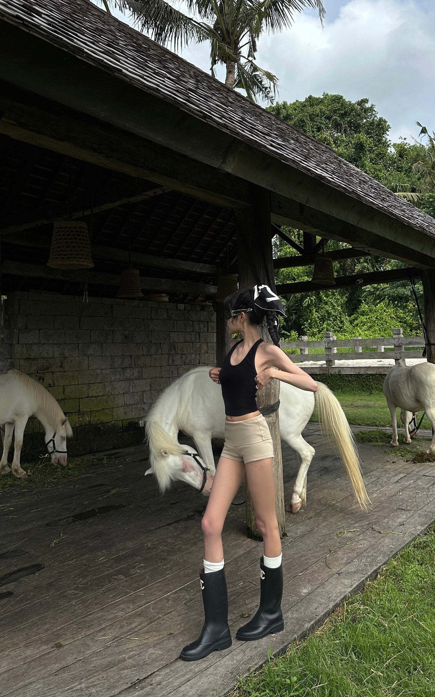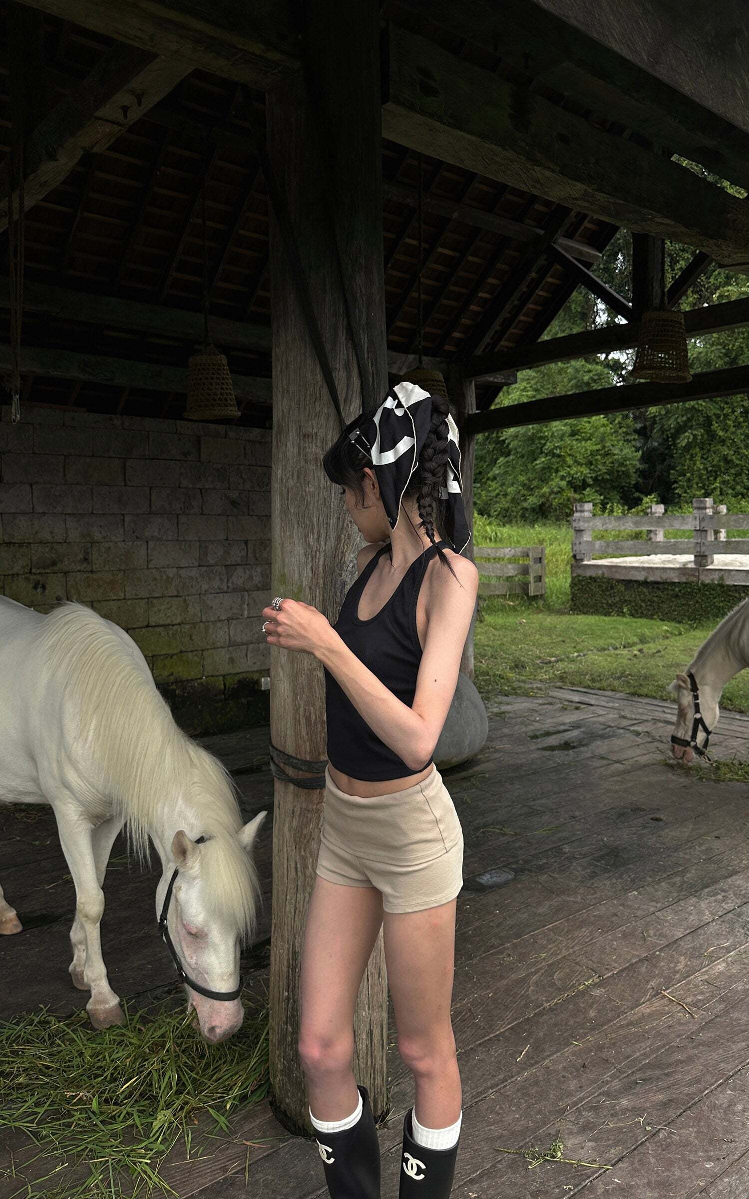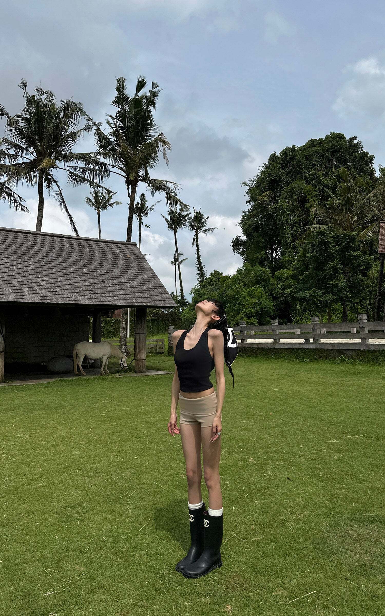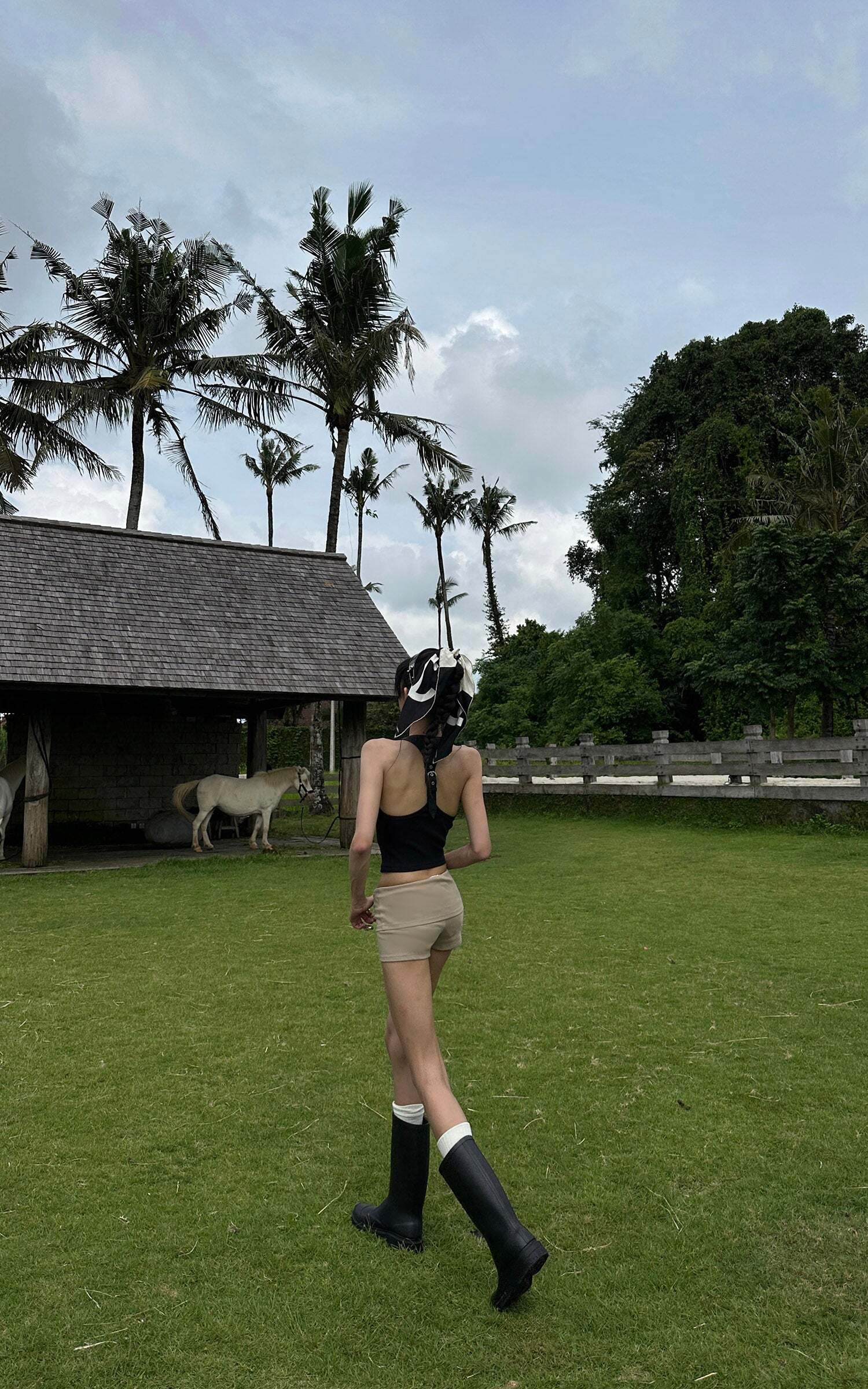A fitted ribbed tank top cut with precision and built for edge. The cropped silhouette clings to form, while the back features a harness-inspired webbing with snap and buckle hardware—merging utilitarian codes with everyday minimalism. Finished with a clean neckline and exposed shoulder blades. Tough, lean, and easy to move in—built for hot days, colder intent.