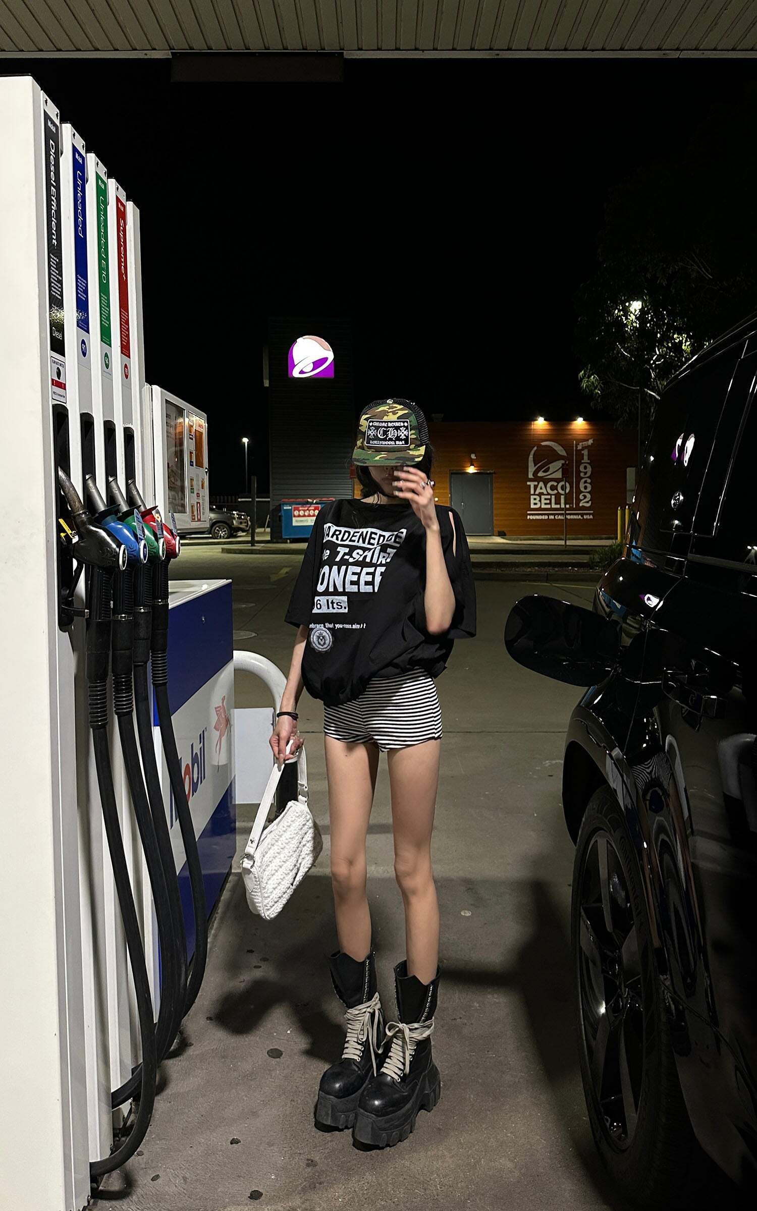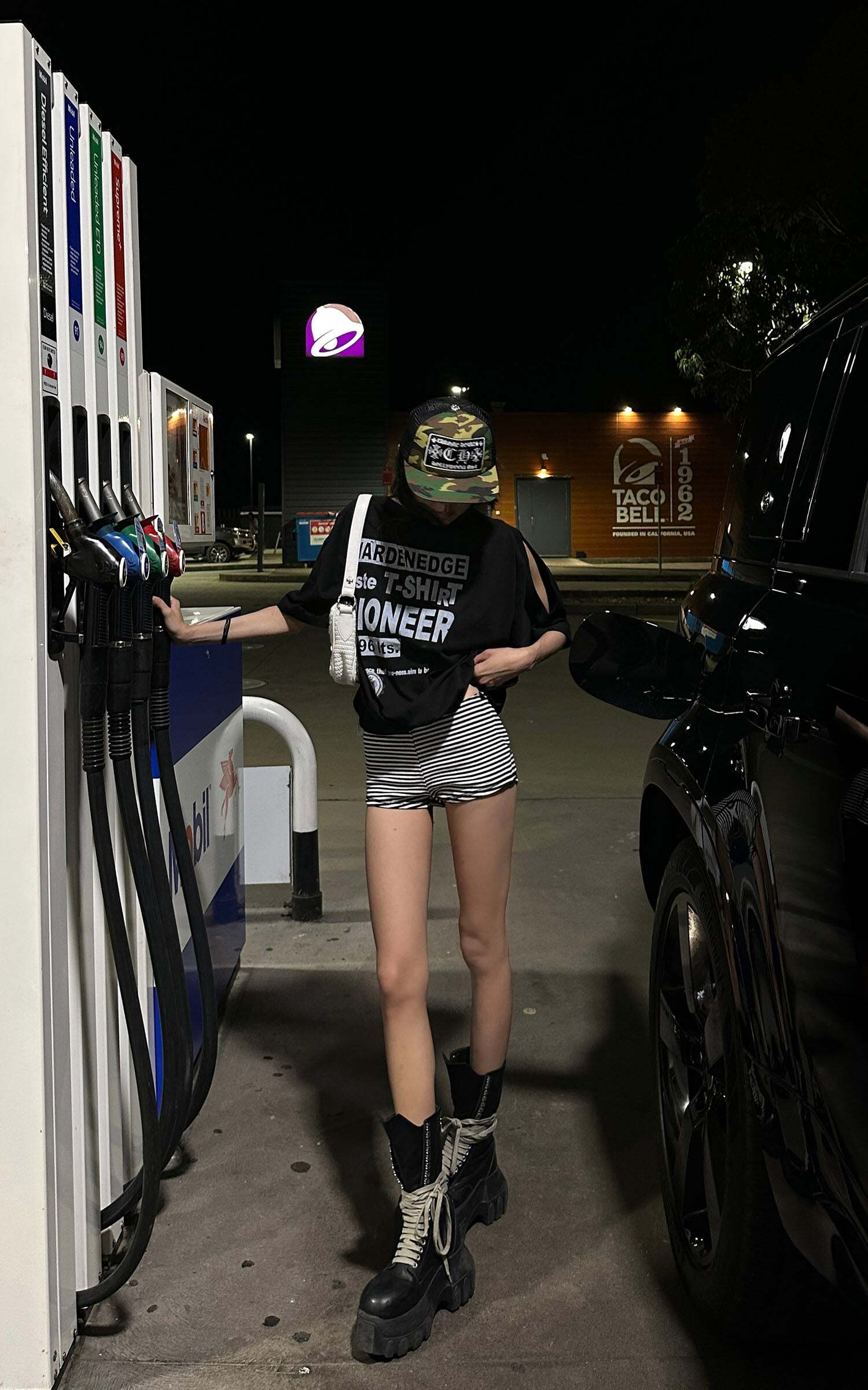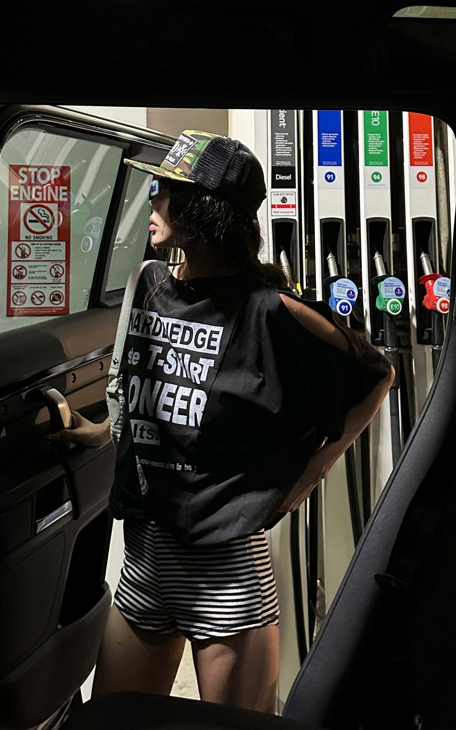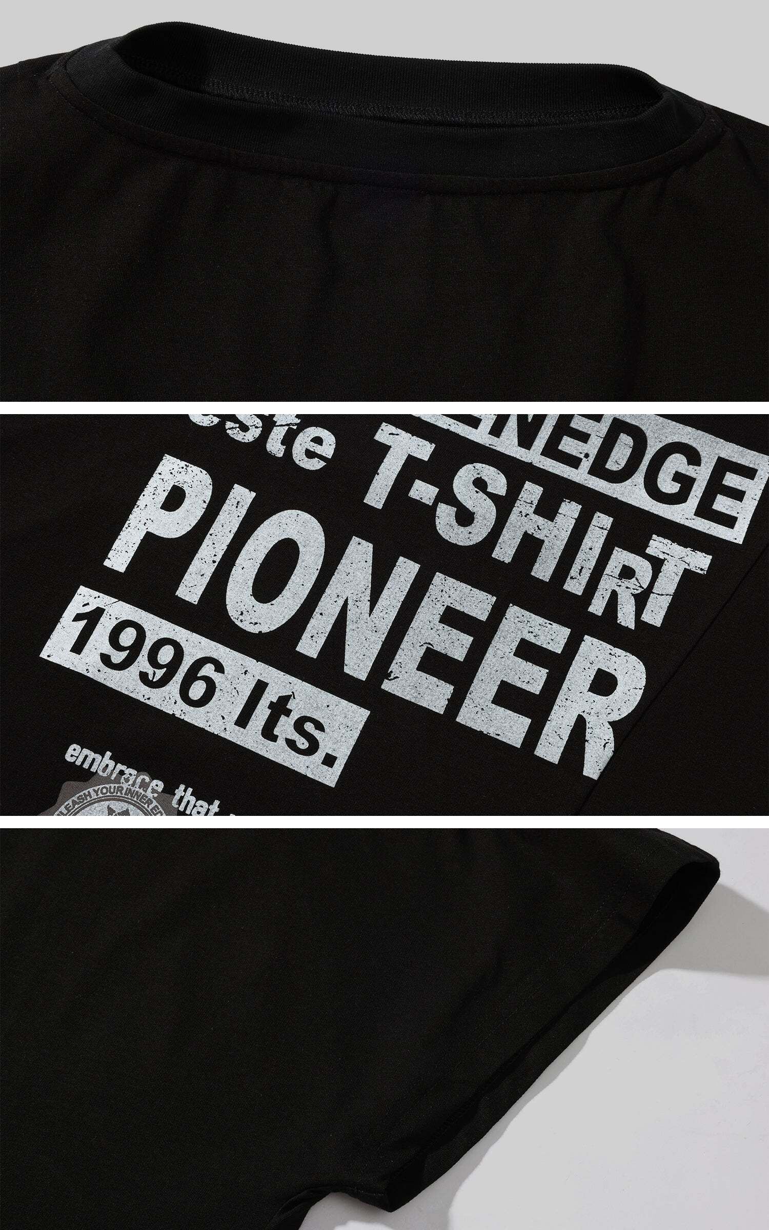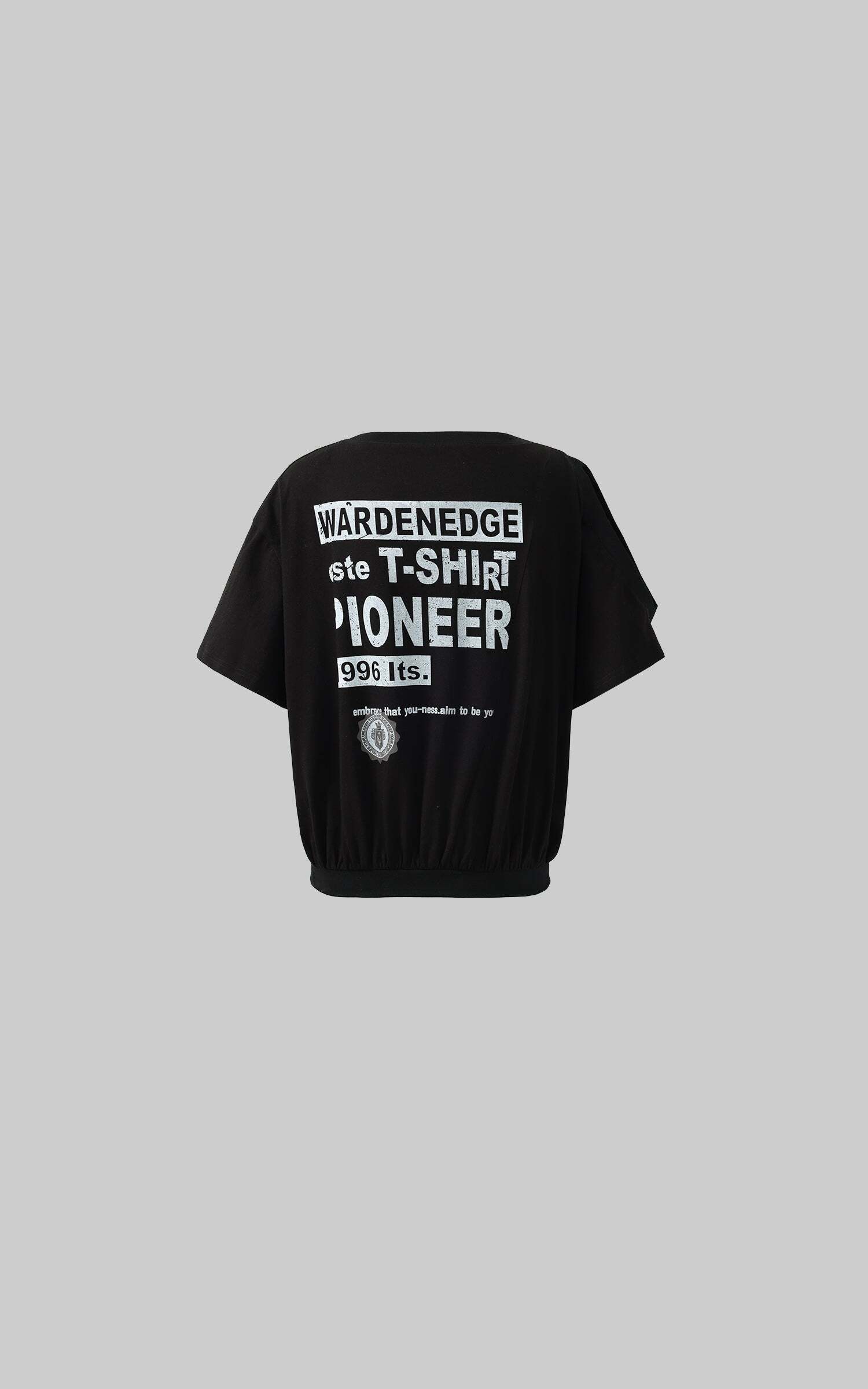 Cut with a boxy oversized fit and slashed shoulder detail, this black tee channels raw attitude with unapologetic ease. Crafted from breathable cotton jersey, the elasticated hem adds structure while the bold graphic back print throws down a rebellious message. Pair it with striped shorts or combat boots to embrace its off-duty, streetwise energy. A loud essential for those who dress with conviction.