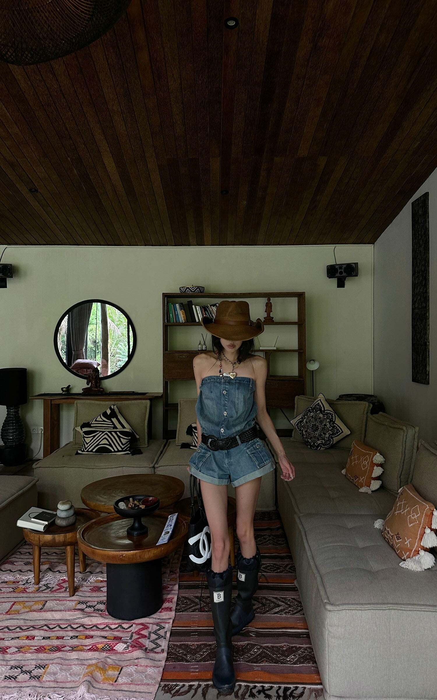 A reimagined silhouette built for contrast—this strapless denim romper merges structure and slouch with utilitarian intent. Featuring a ruched back panel, full button-up front, and oversized flap pockets, it channels a workwear language in a rebellious, shoulder-baring form. Pair it with boots, layer it up, or let it stand alone—it’s engineered for movement and nonconformity.