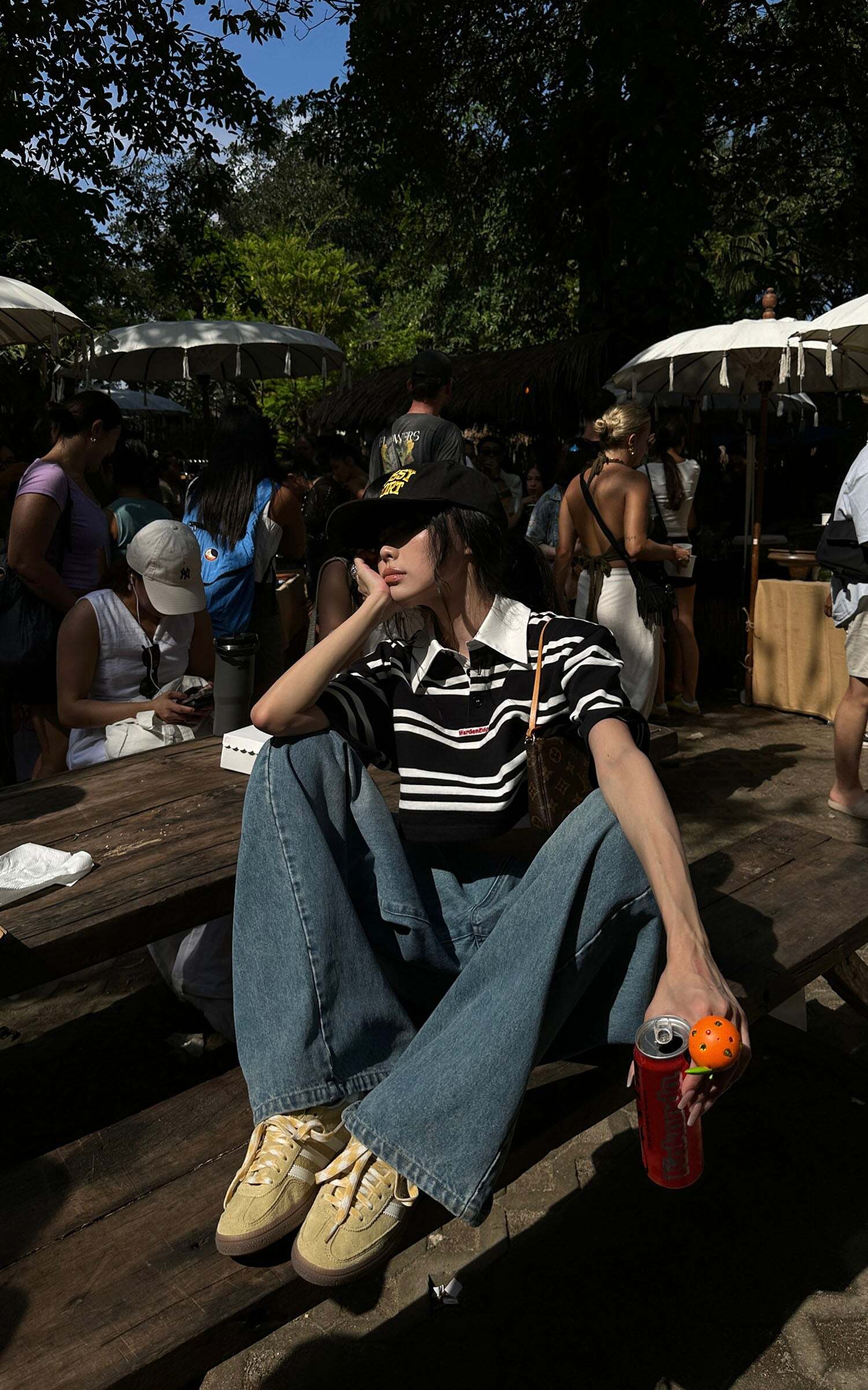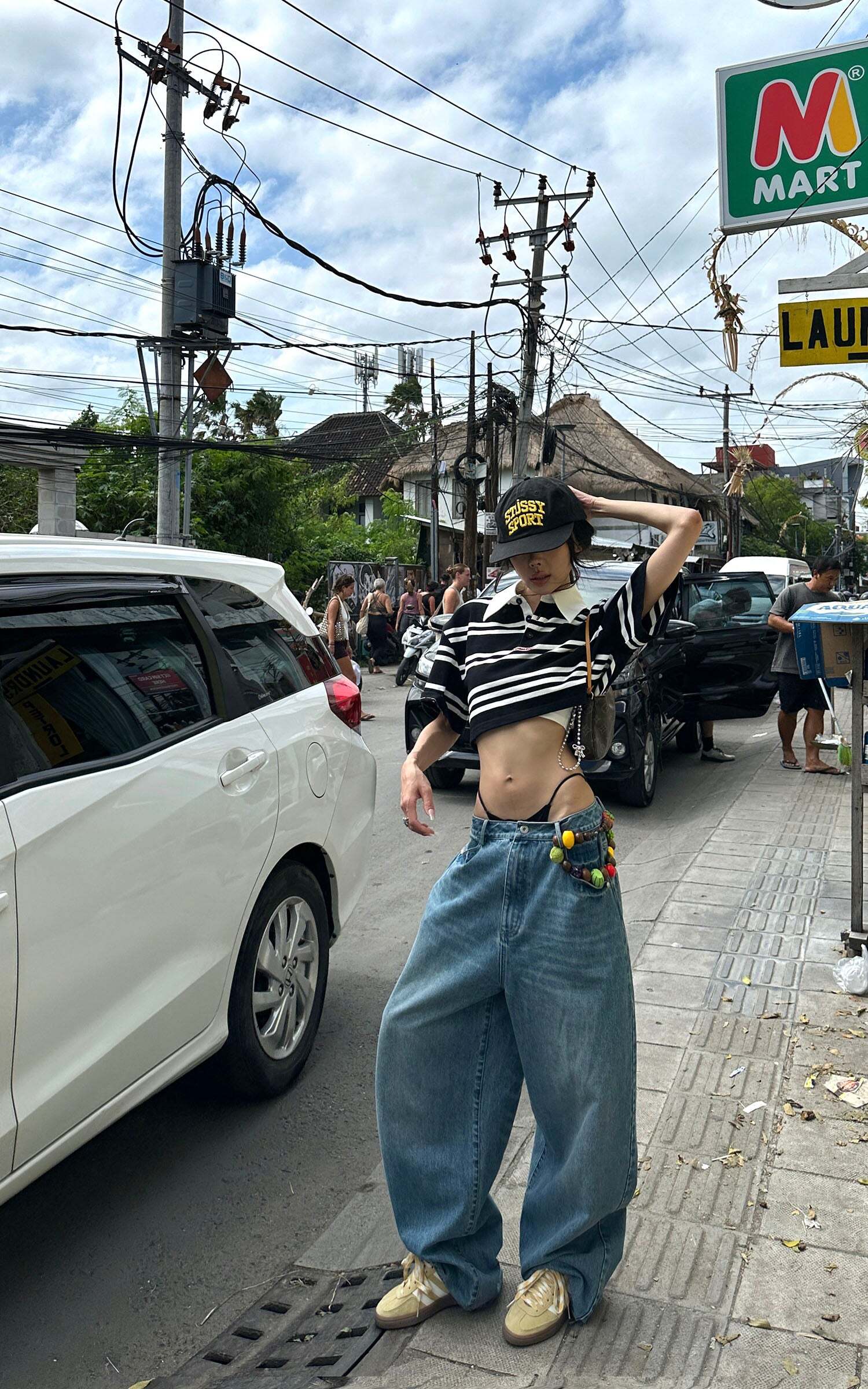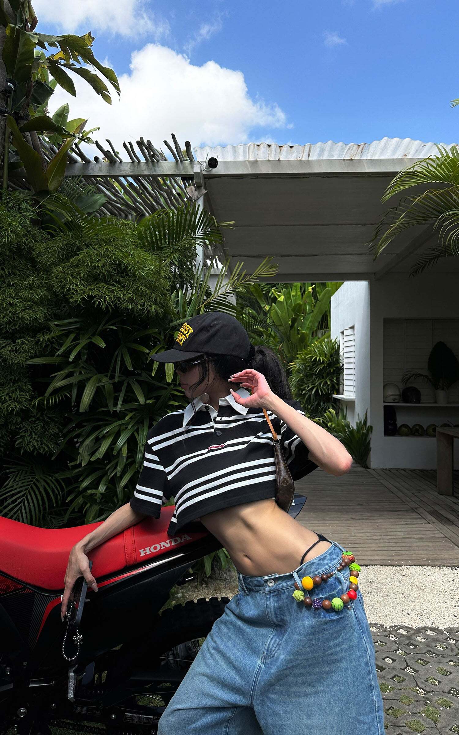A sharp remix of the classic polo. This cropped piece pairs clean horizontal stripes with a crisp contrast collar and tonal buttons. The wide sleeves and structured silhouette balance street energy with preppy cues. Cut from soft cotton knit with a weighty hand, it delivers confident proportions with minimal effort. Built for those who don’t follow—only reinterpret.