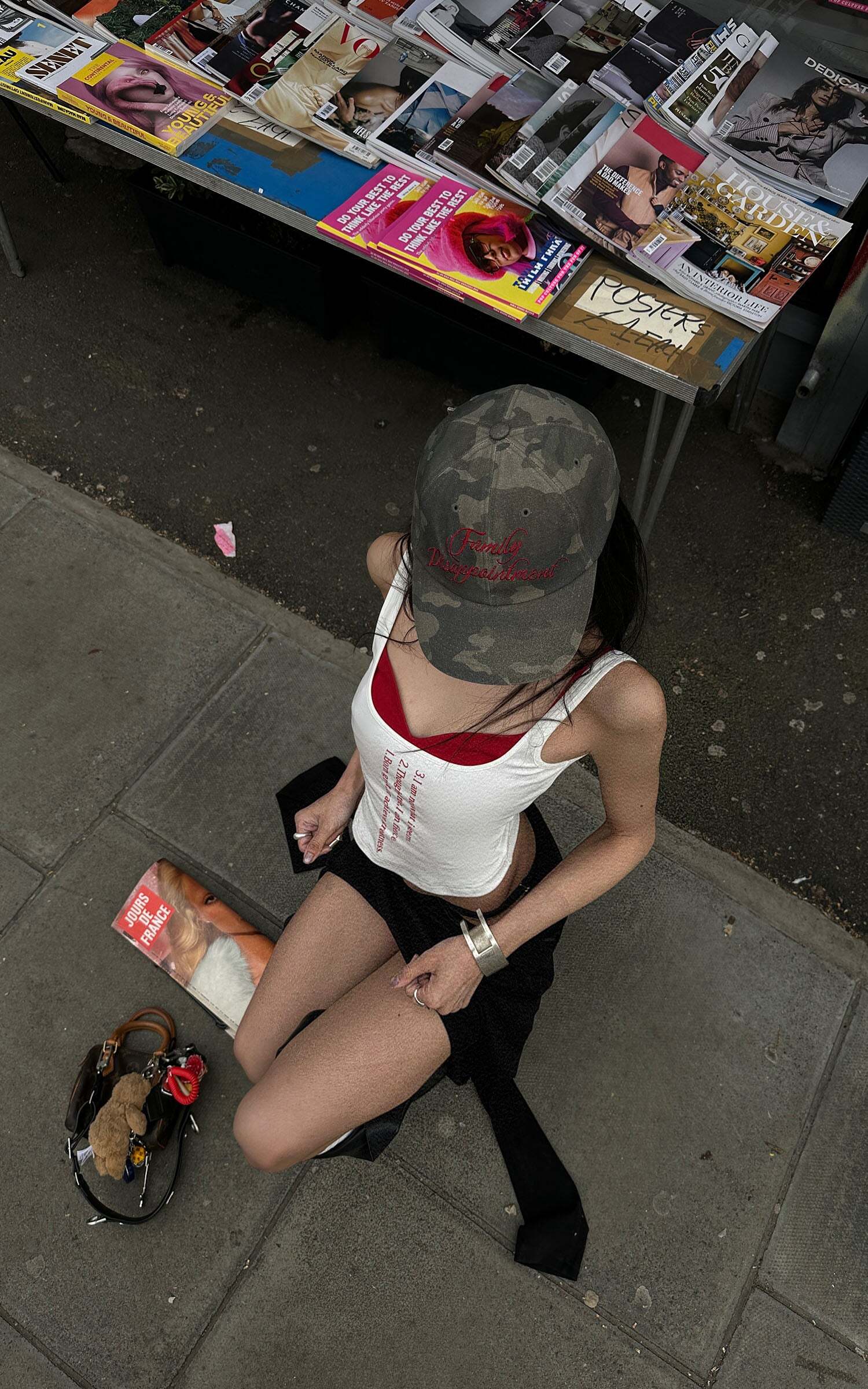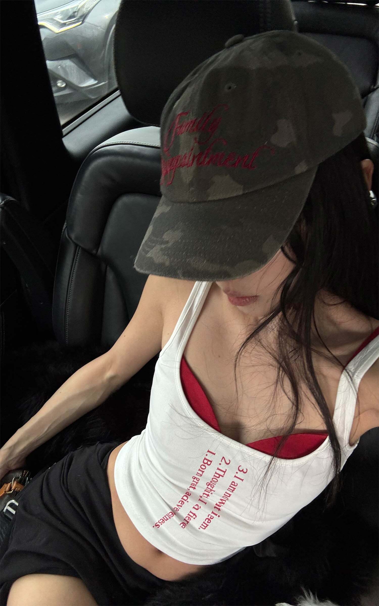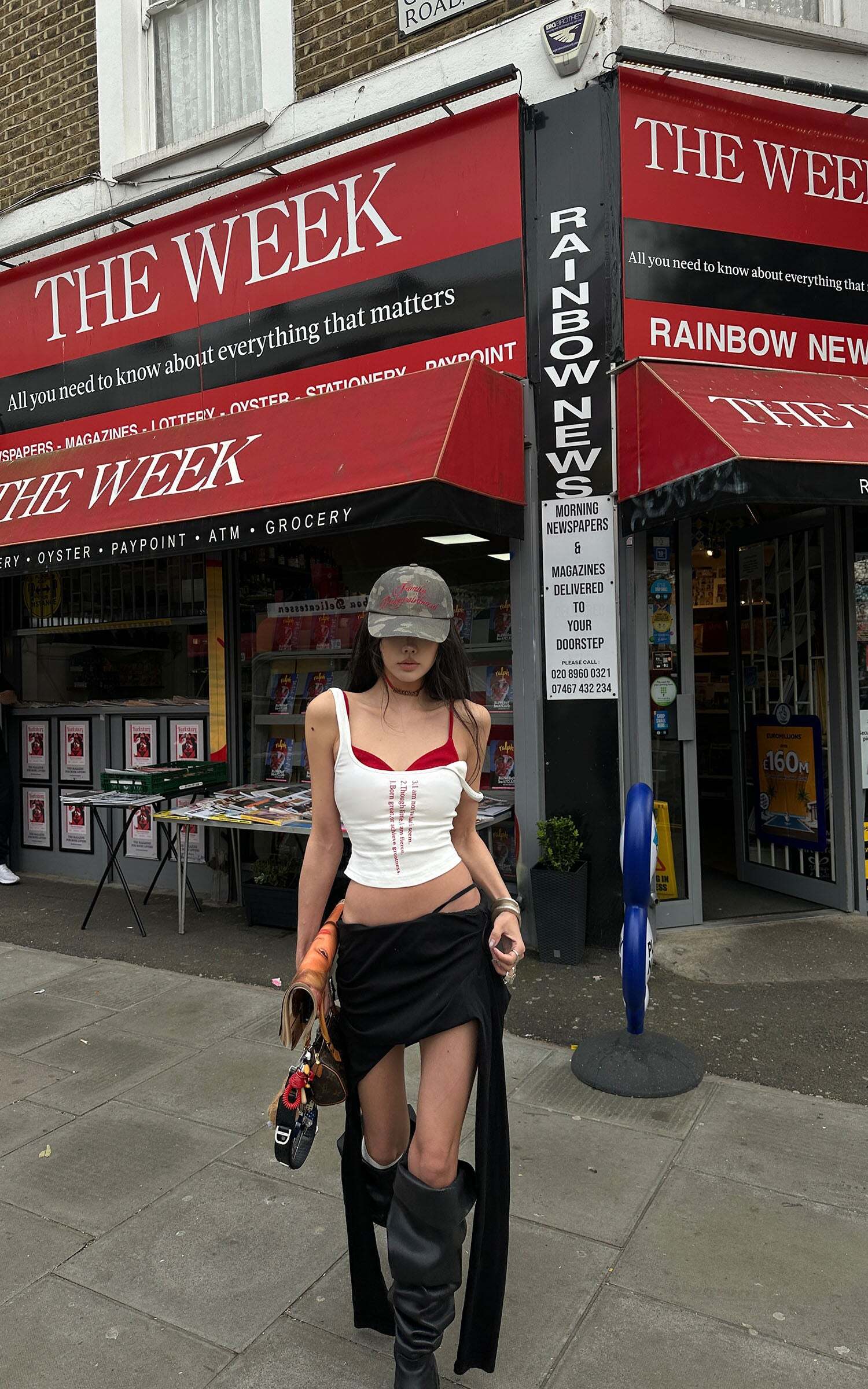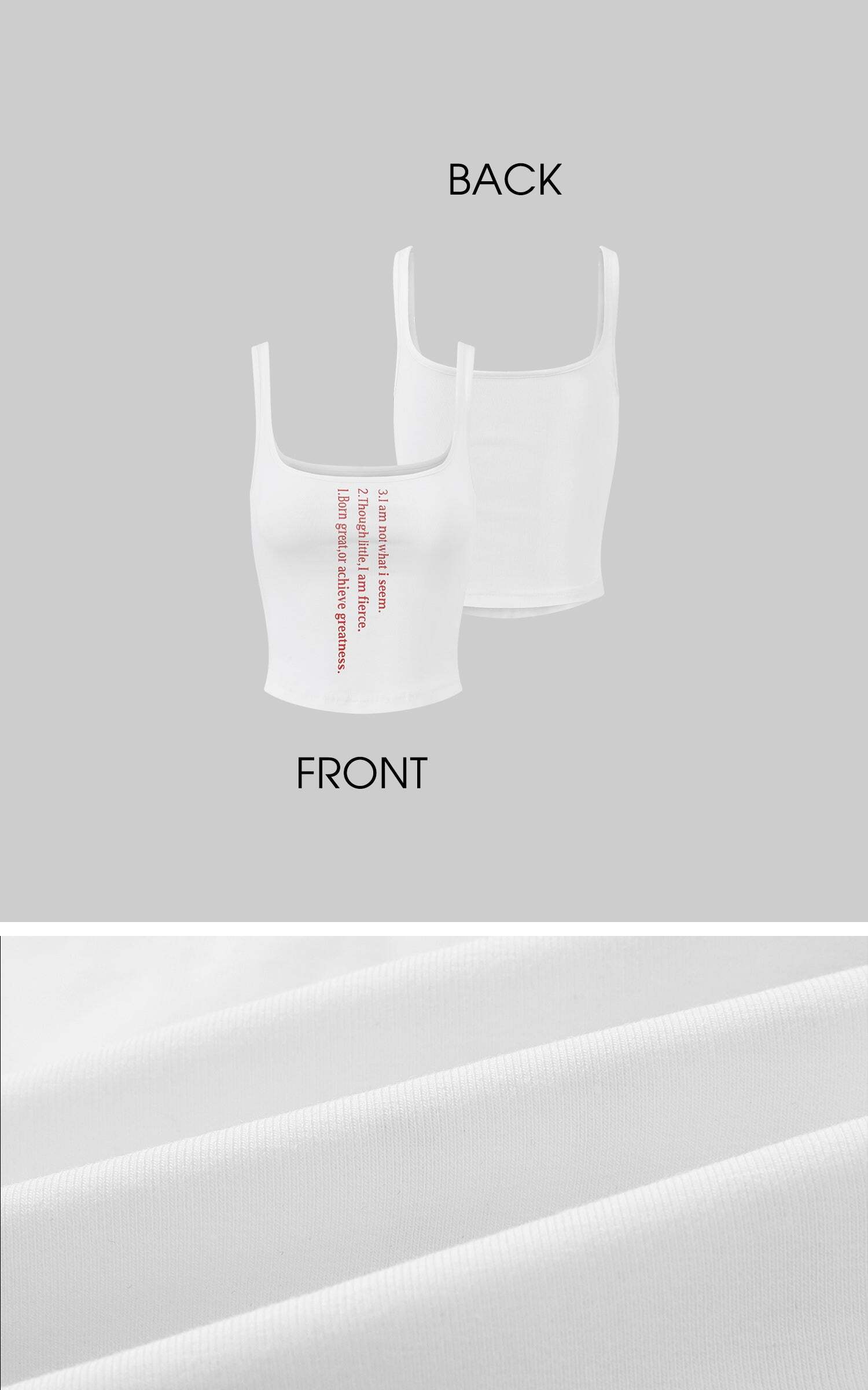 An intentional clash of softness and statement. This two-piece set includes a fitted white tank with vertically printed affirmations and a crimson bralette designed to peek through with unapologetic contrast. Together, they form a silhouette that’s confident and complex—built to disrupt the plain and provoke a second look. Adjustable straps and elastic finishing ensure comfort while the visual dialogue between the pieces captures a layered identity: composed, bold, and never silent. Wear as a declaration, not just an outfit.