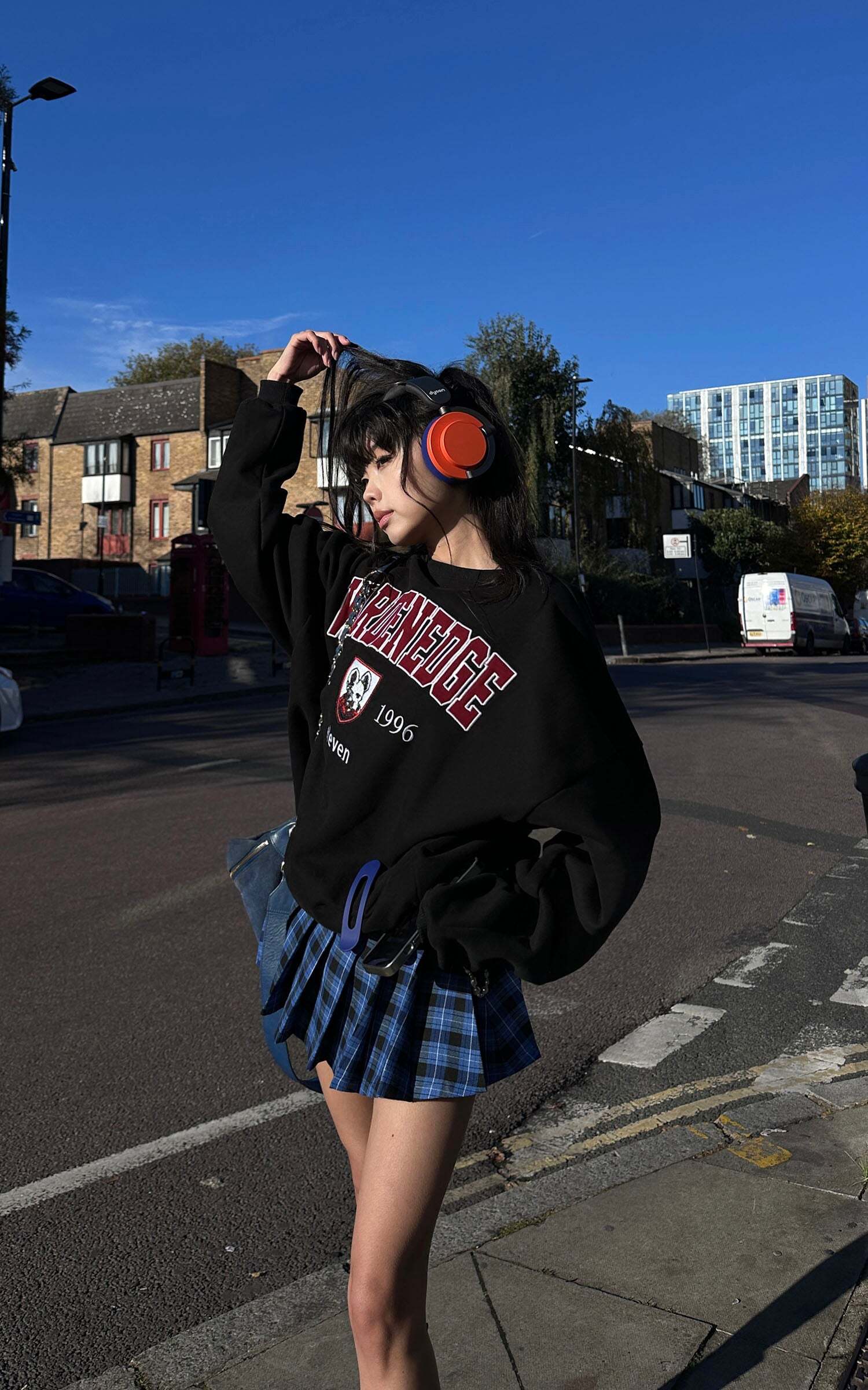 Step into a blend of nostalgic streetwear and premium craftsmanship with this oversized sweatshirt. Featuring a bold, vintage-inspired letter embroidery, this piece adds a retro collegiate vibe to your wardrobe. Made with a soft, heavyweight fabric containing 51.2% cotton, it promises both comfort and style. Pair it effortlessly with your favorite plaid skirt or high-waisted jeans for an urban look that speaks to modern street style with a nod to the classics.