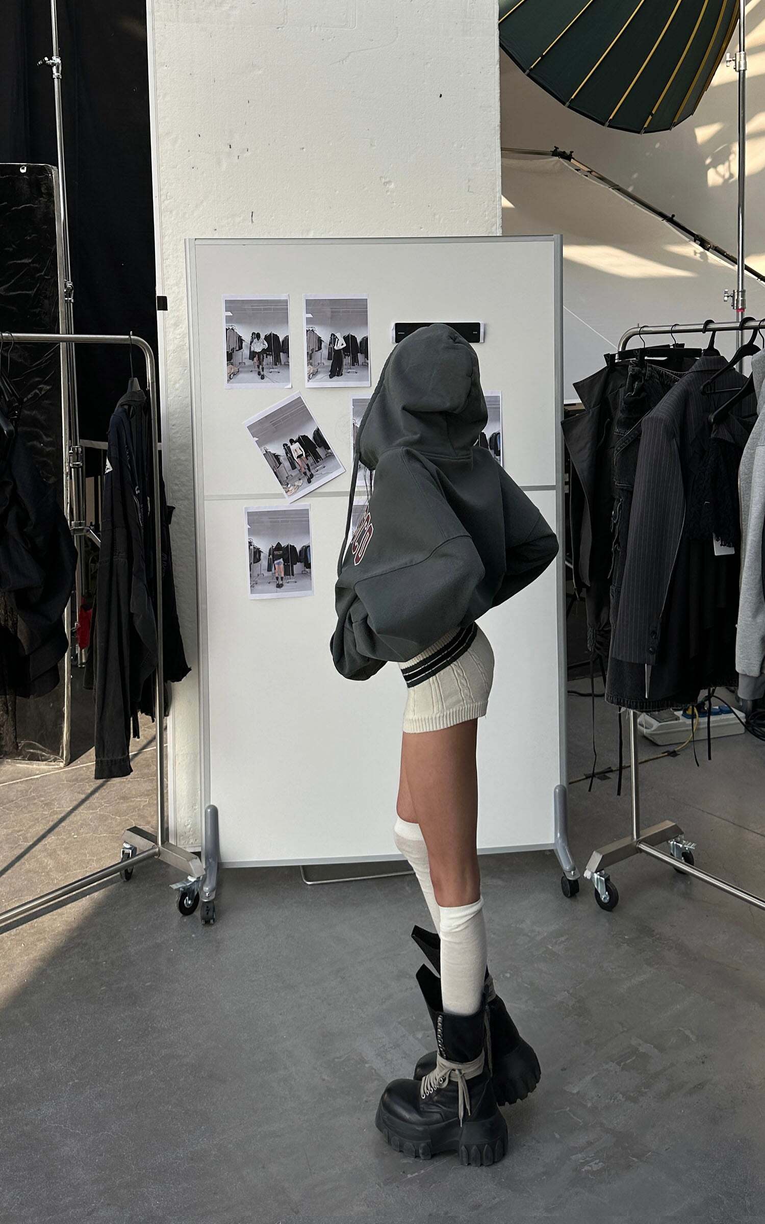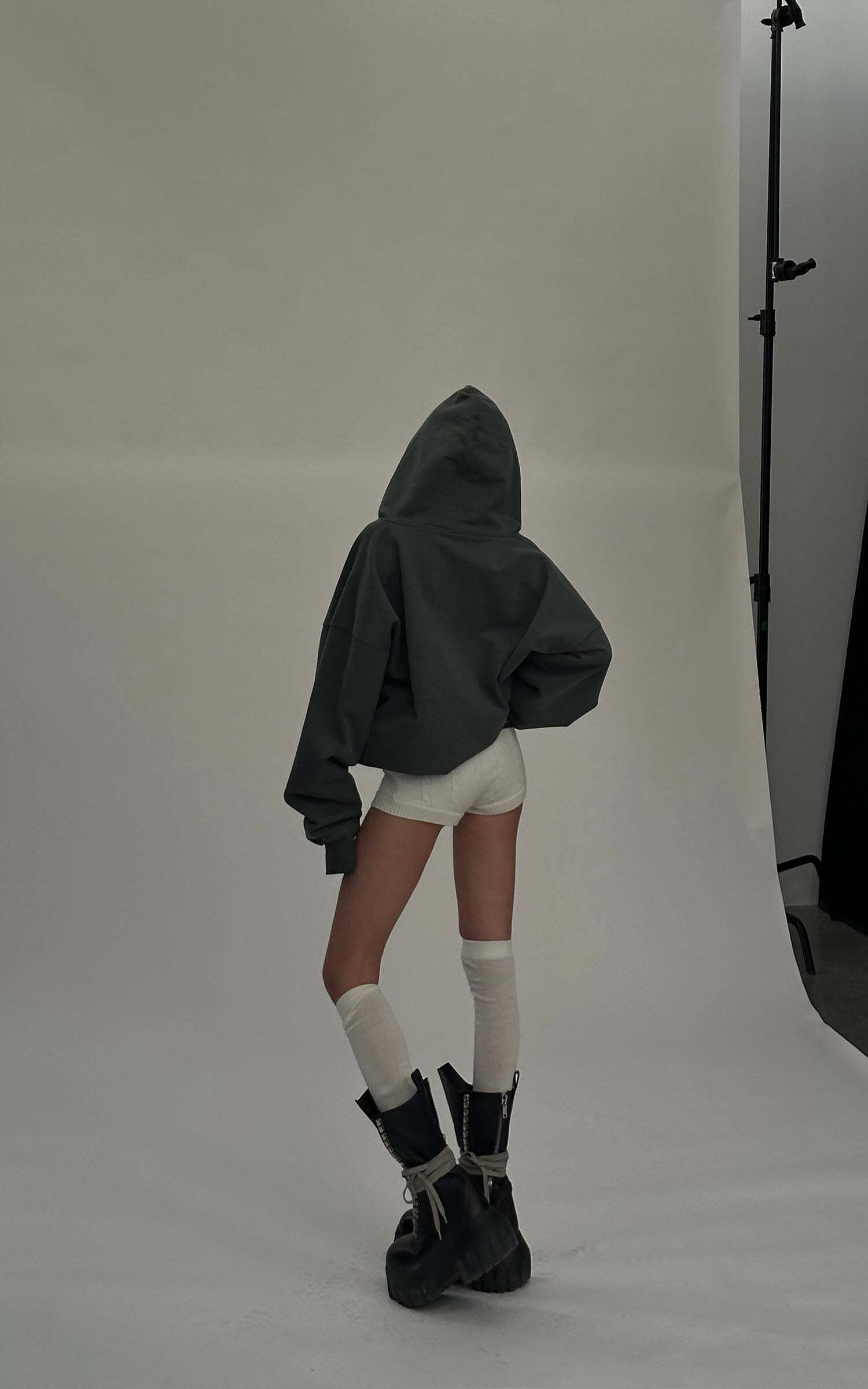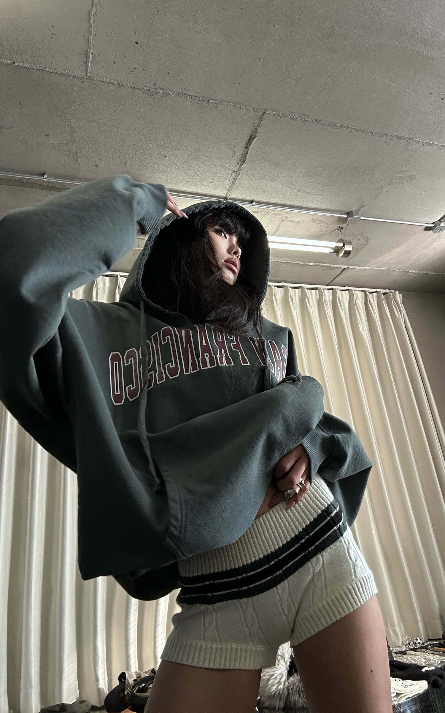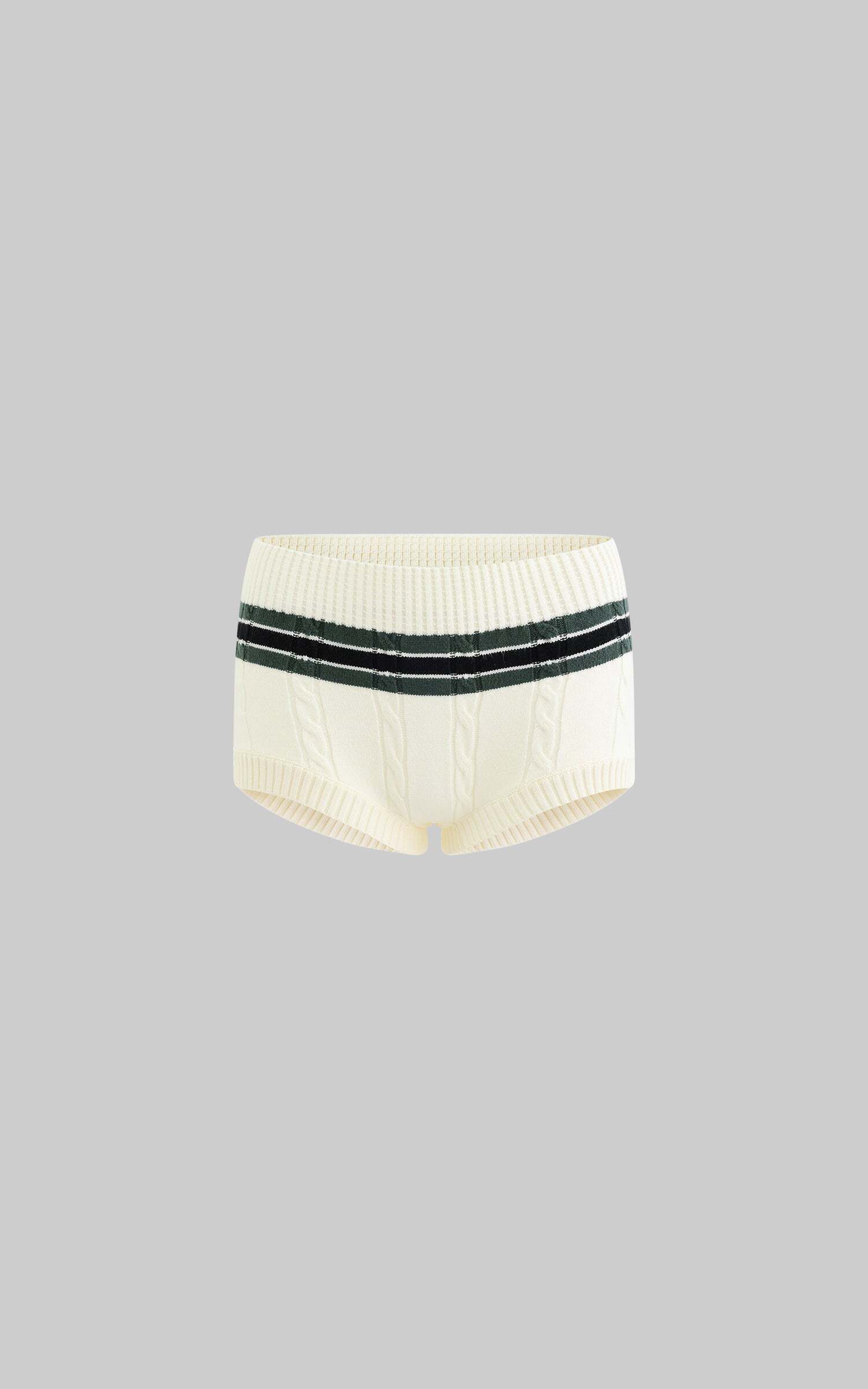 These high-waisted knit shorts balance vintage silhouettes with modern craftsmanship, creating an aesthetic of effortless restraint. The thick cable-knit texture adds depth, while the sculpted fit enhances the body’s contours, evoking a sense of unrestrained elegance.