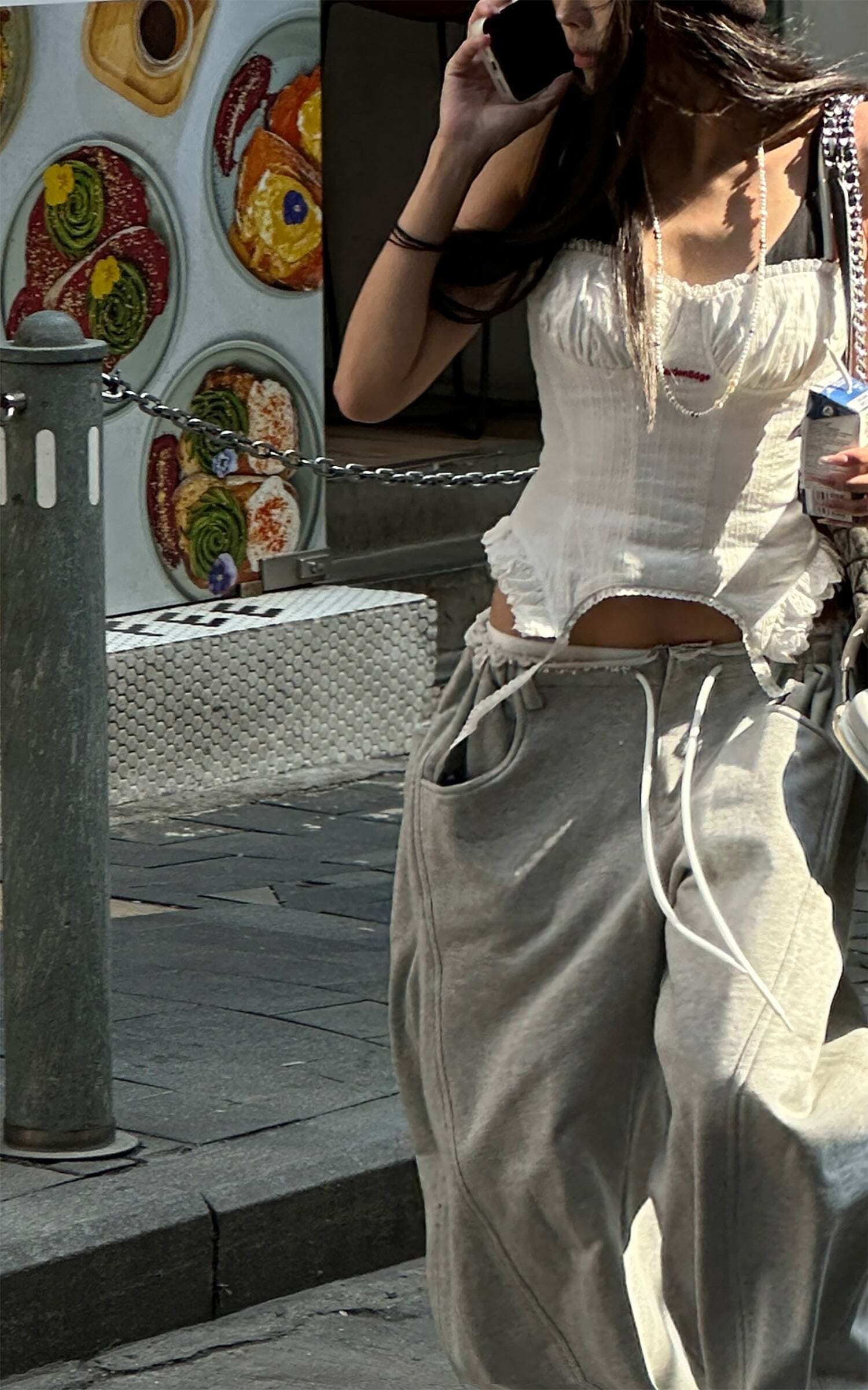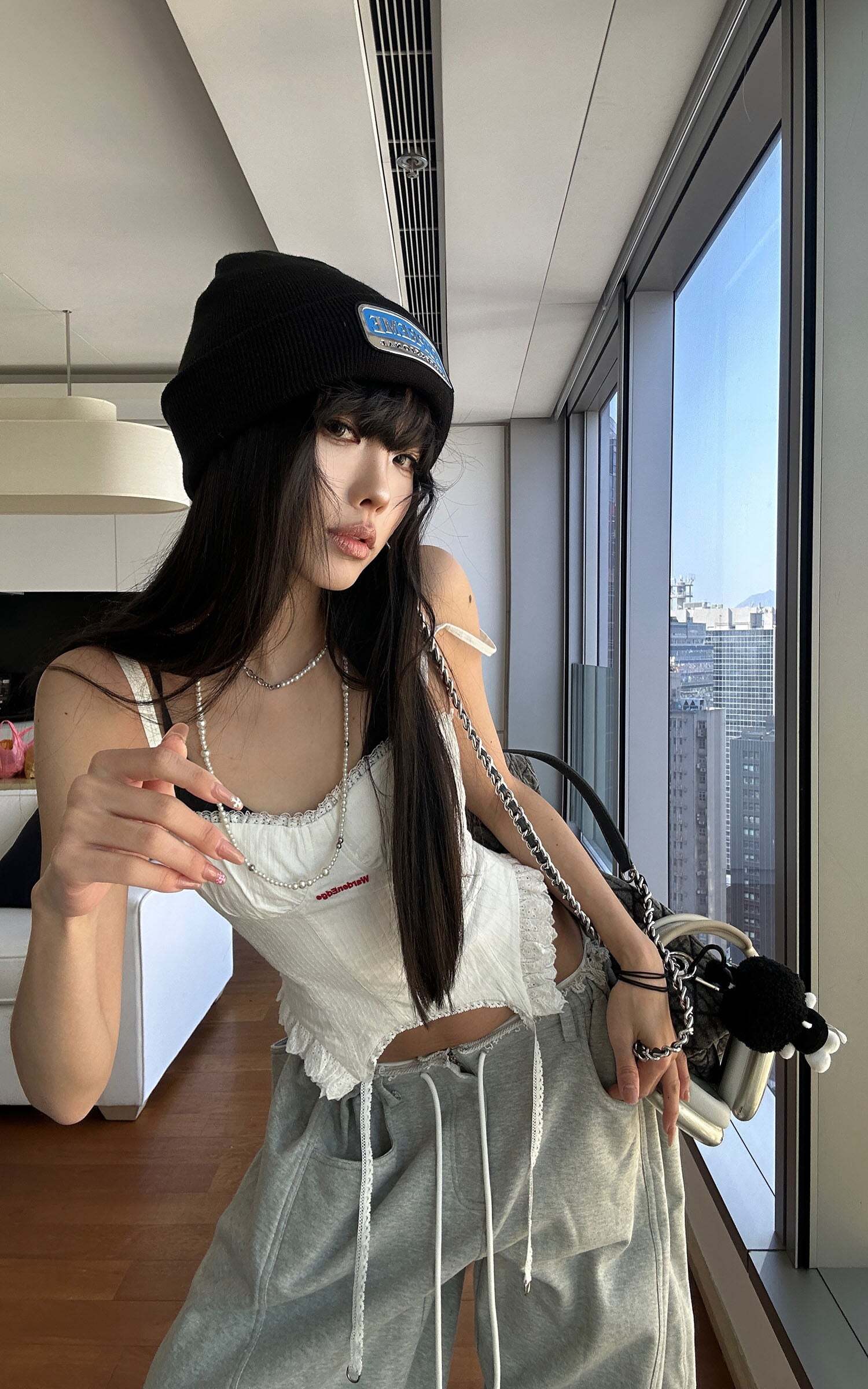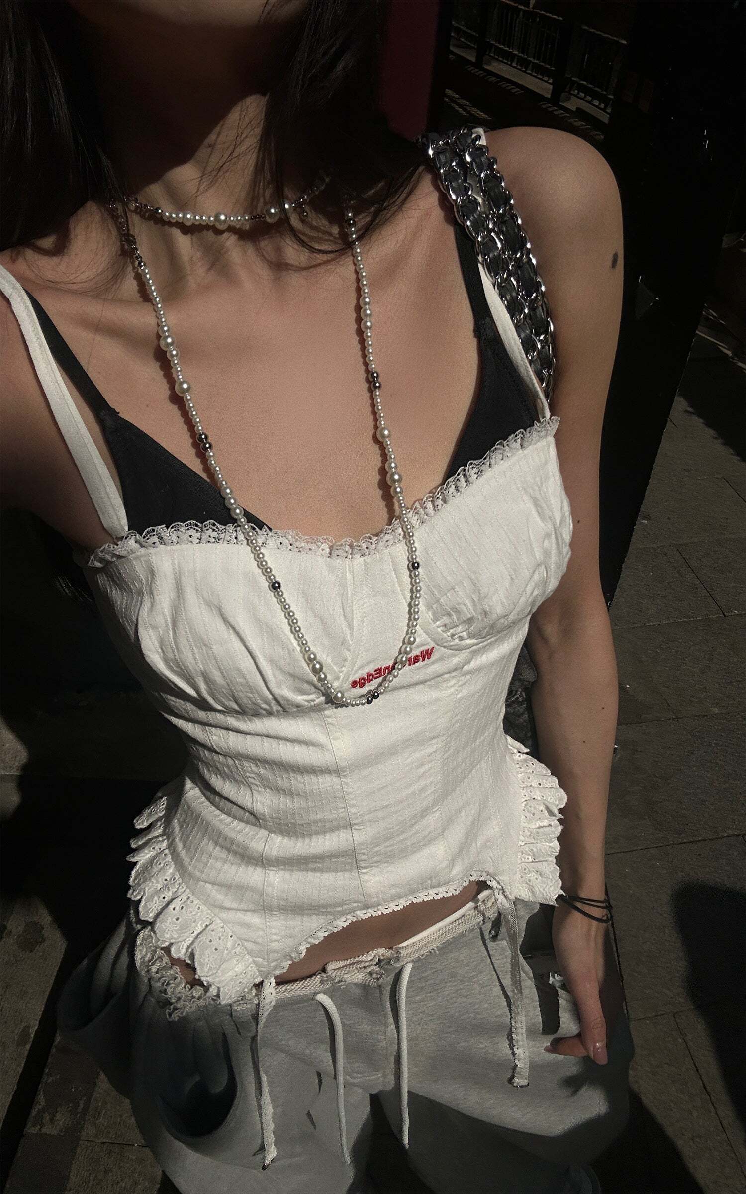 This camisole features a clean-cut design that enhances the female silhouette with its unique waist-cinching effect, offering a balance of elegance and sensuality. Delicate lace trims and textured fabric create a captivating visual effect, blending casualness with refinement. Perfect for pairing with any bottoms, whether wide-leg pants or skirts, it brings an unmatched street style vibe.