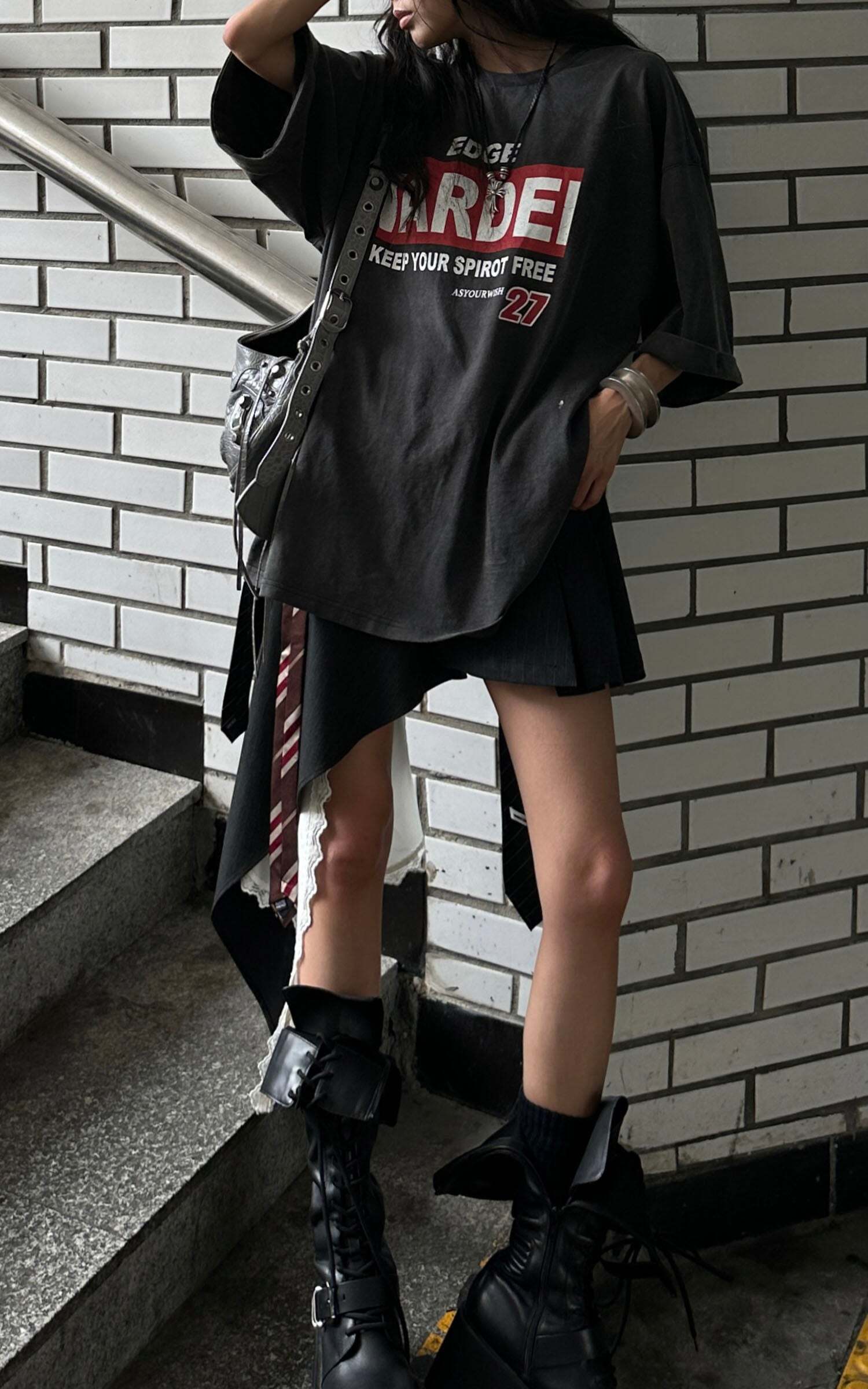 Washed Oversized Tee with Red Letter Print: Your Ultimate Dream Clothes Collection
