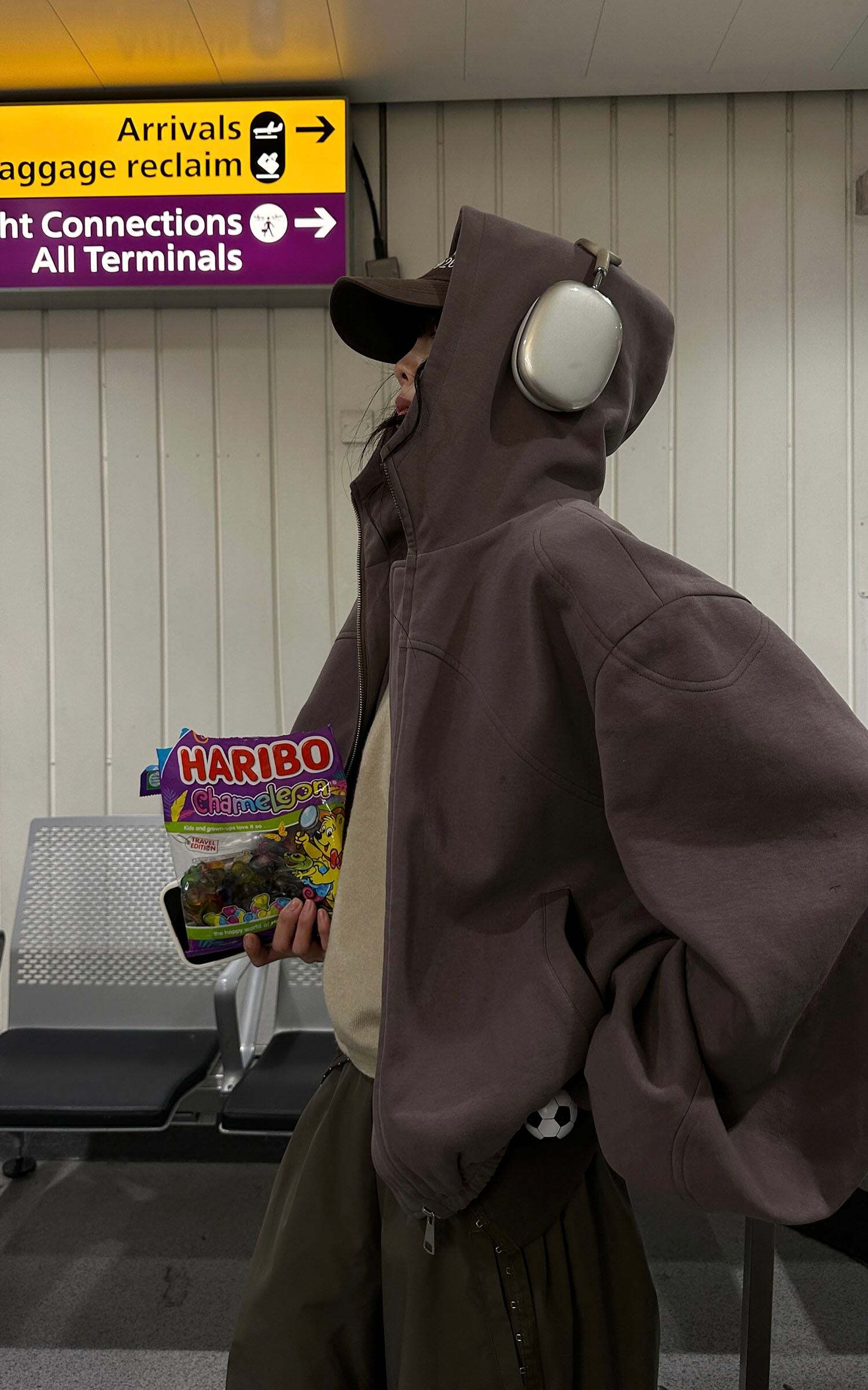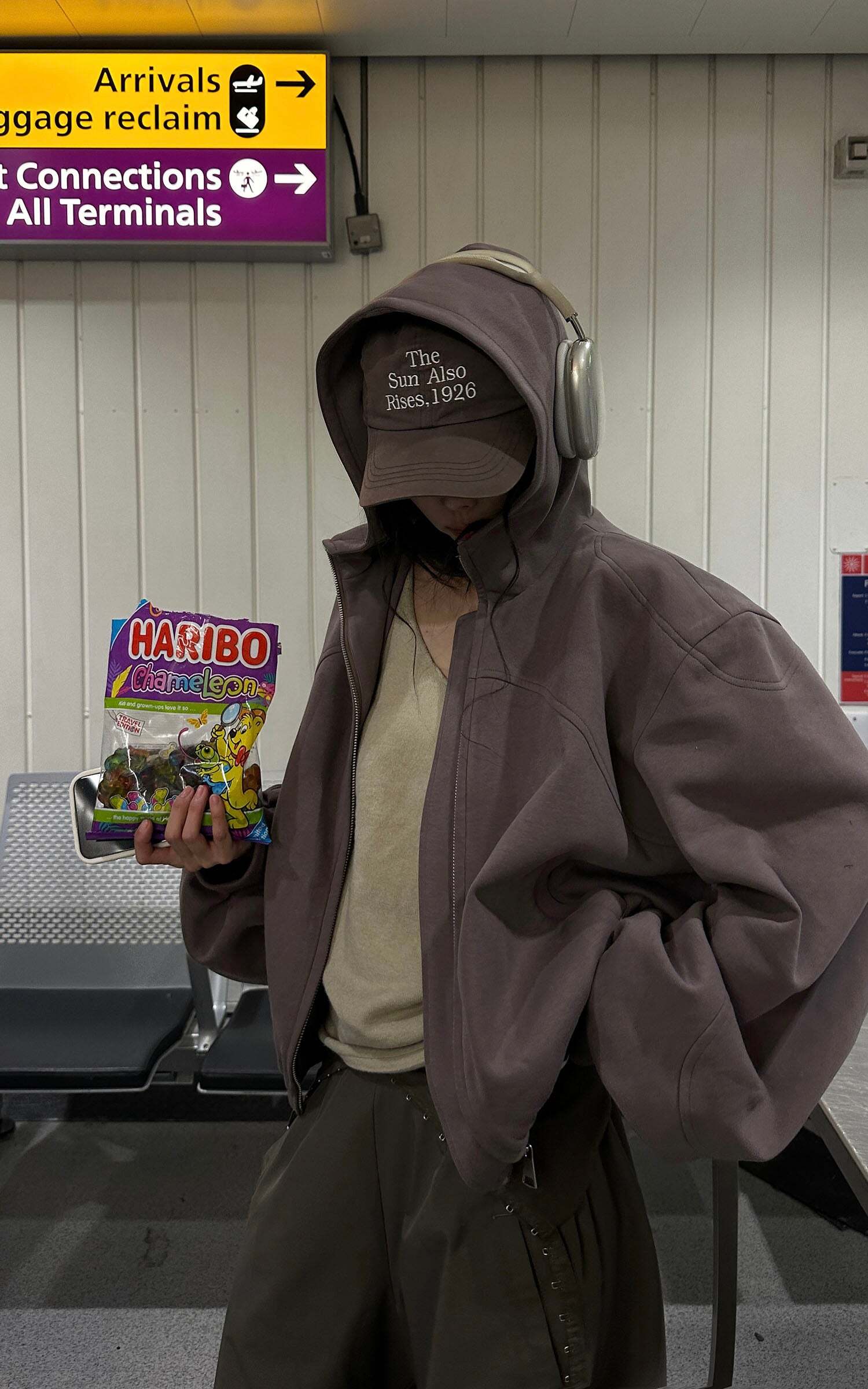 A fusion of lightweight athletic form and structured tailoring creates a refined yet effortless aesthetic. The adjustable zipper adds versatility, while the oversized hood enhances a sense of freedom. Crafted from a resilient yet soft fabric, this piece strikes a delicate balance between structure and relaxation. Subtle back detailing discreetly echoes the brand’s ethos, making it an ideal choice for everyday city wear or spontaneous travel styling.