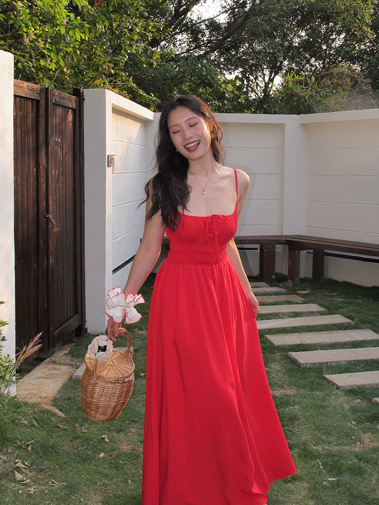 Elevate your summer wardrobe with our stunning White Spaghetti Strap A-Line Dress featuring a flowing long skirt, perfect for any vacation or summer event. This trendy French design accentuates your figure while providing a comfortable fit, making it an ideal choice for both daytime outings and evening gatherings. Embrace effortless elegance and style add this must-have dress to your cart today!