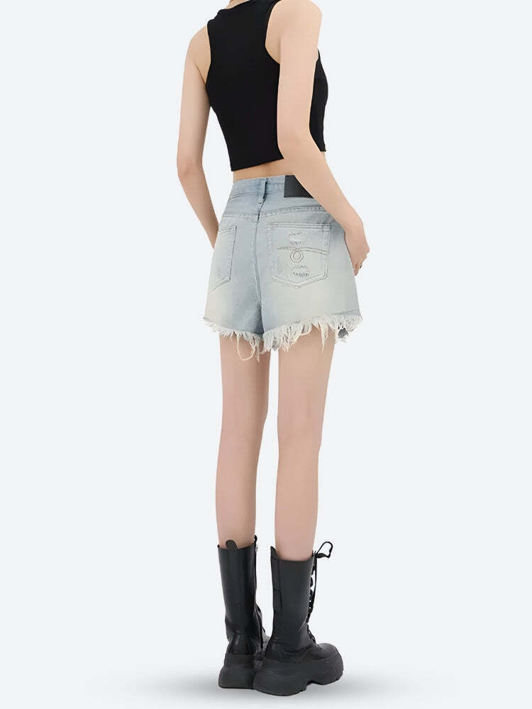 Wide Leg Ripped Denim Shorts High-quality product featuring outfit ideas, 90s fashion, vacation outfits and more. Modern design that fits the latest trends. Premium materials ensure durability and comfort. Order now for special offers! Product designed with attention to every detail. Suitable for all occasions and personal styles.