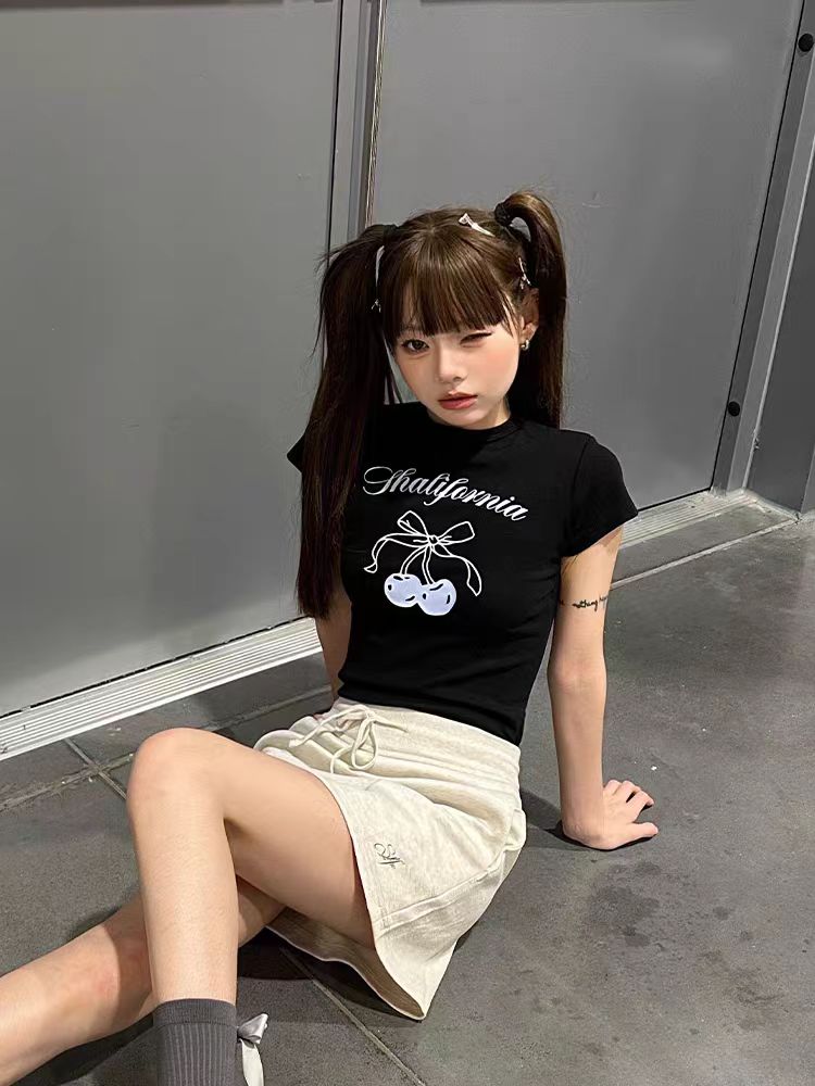 Women Cherry Print Short, Ummer Slim Fit, Neck, Regular Shou – Easy Halloween Costume