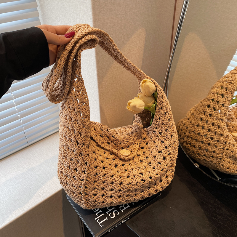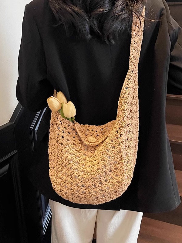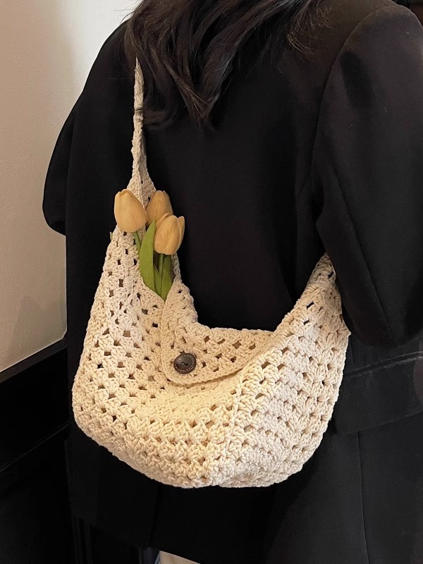 Women Cotton Yarn Woven Beach Tote Bag Summer Hollow Crossbody – Summer Fits