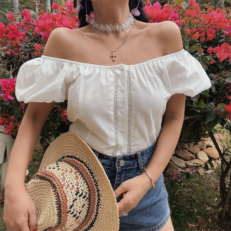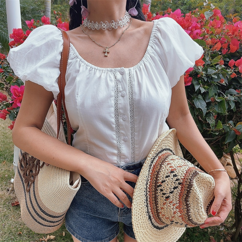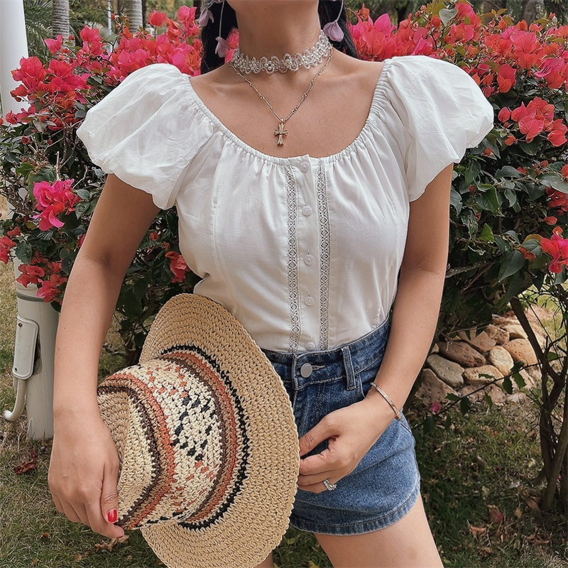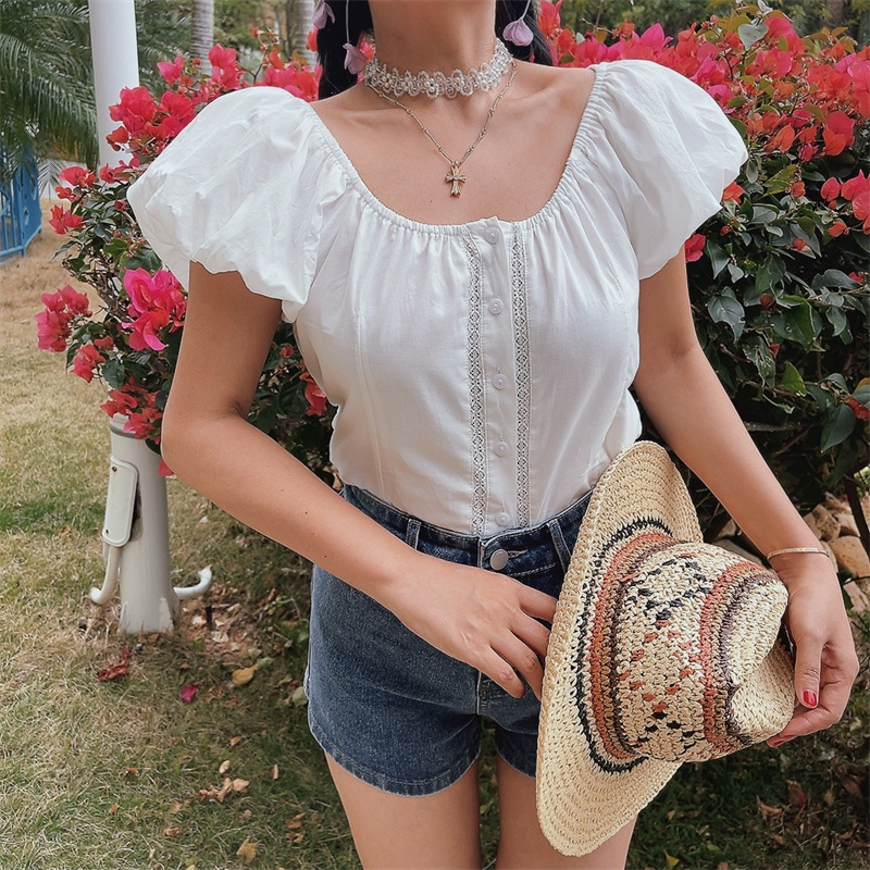 Women Lantern Sleeve Embroidered Lace Short Sleeve Shirt Spring Summer Top High-quality product featuring spring outfits, summer fits, fall outfits women and more. Modern design that fits the latest trends. Premium materials ensure durability and comfort. Order now for special offers! Product designed with attention to every detail. Suitable for all occasions and personal styles.