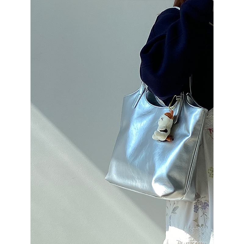 Women Korean Silver Tote Bag Large Capacity Shoulder Hbag – Work Outfits Women